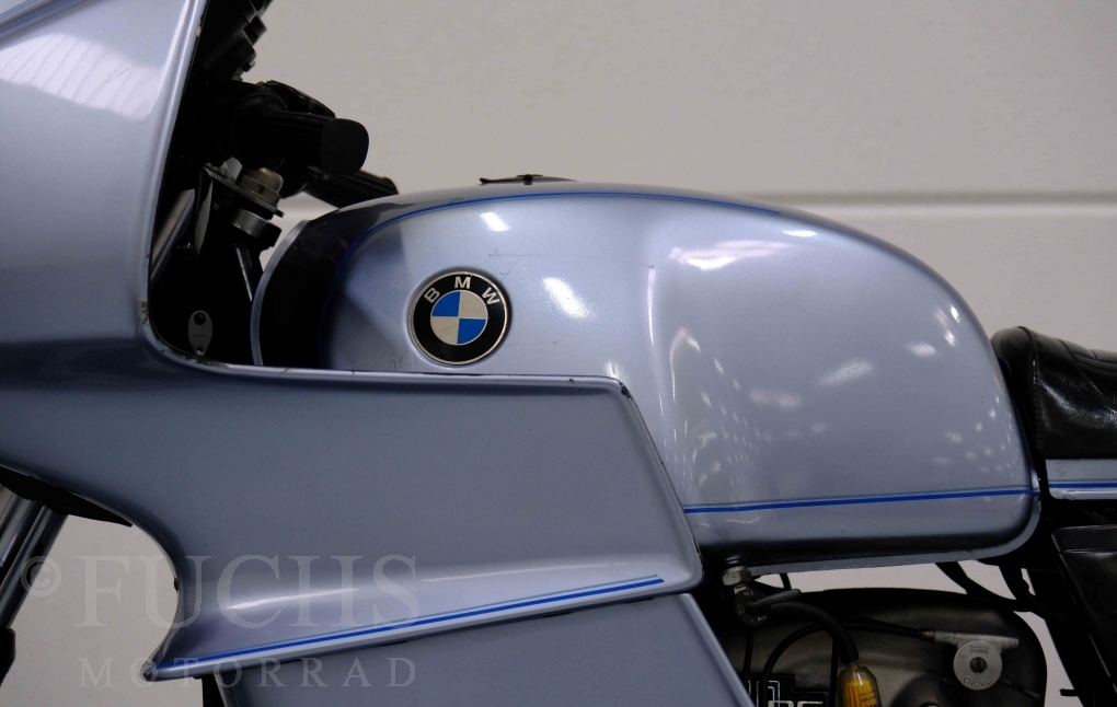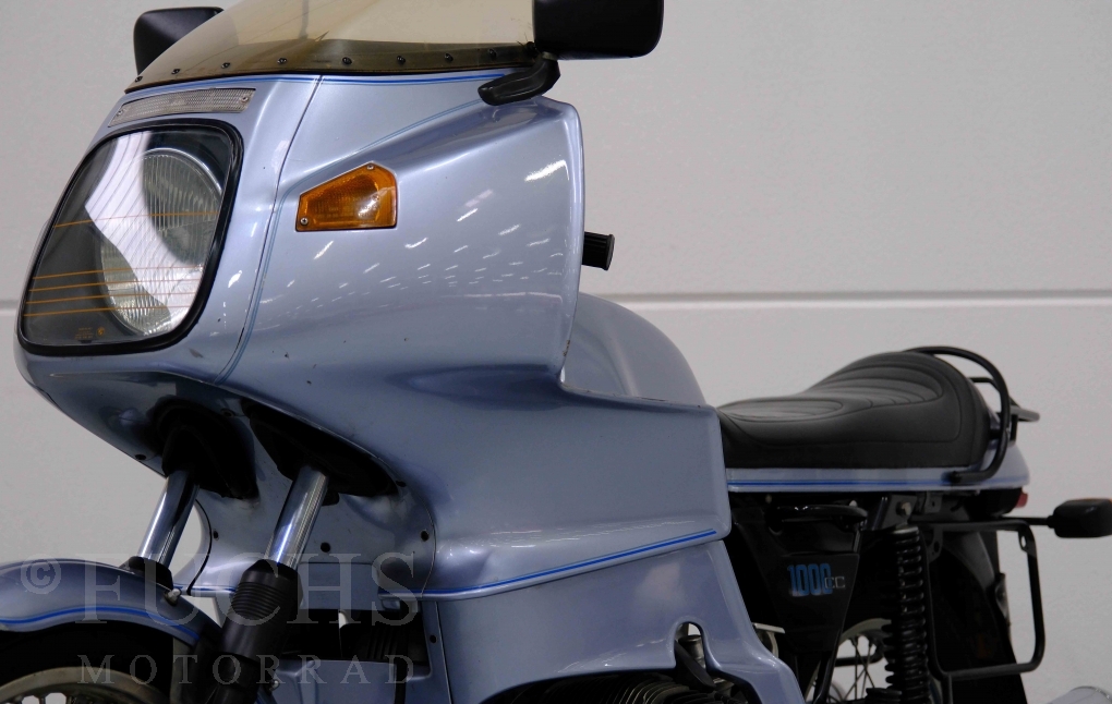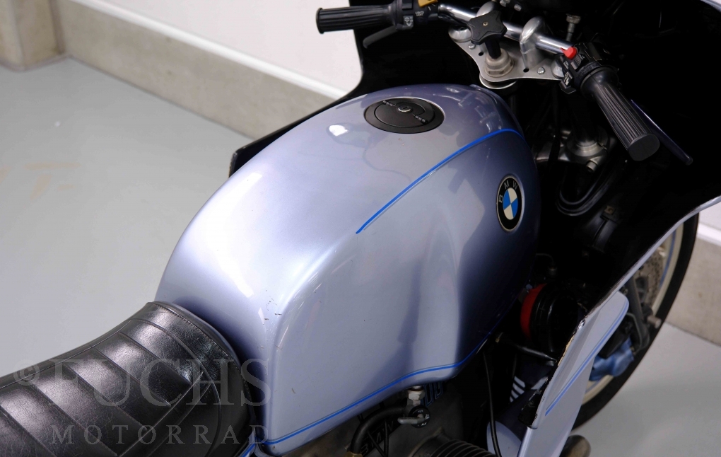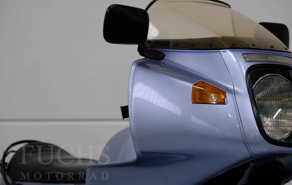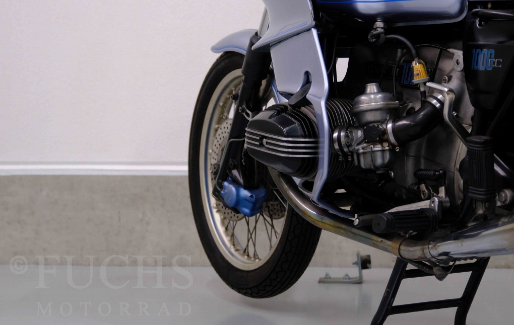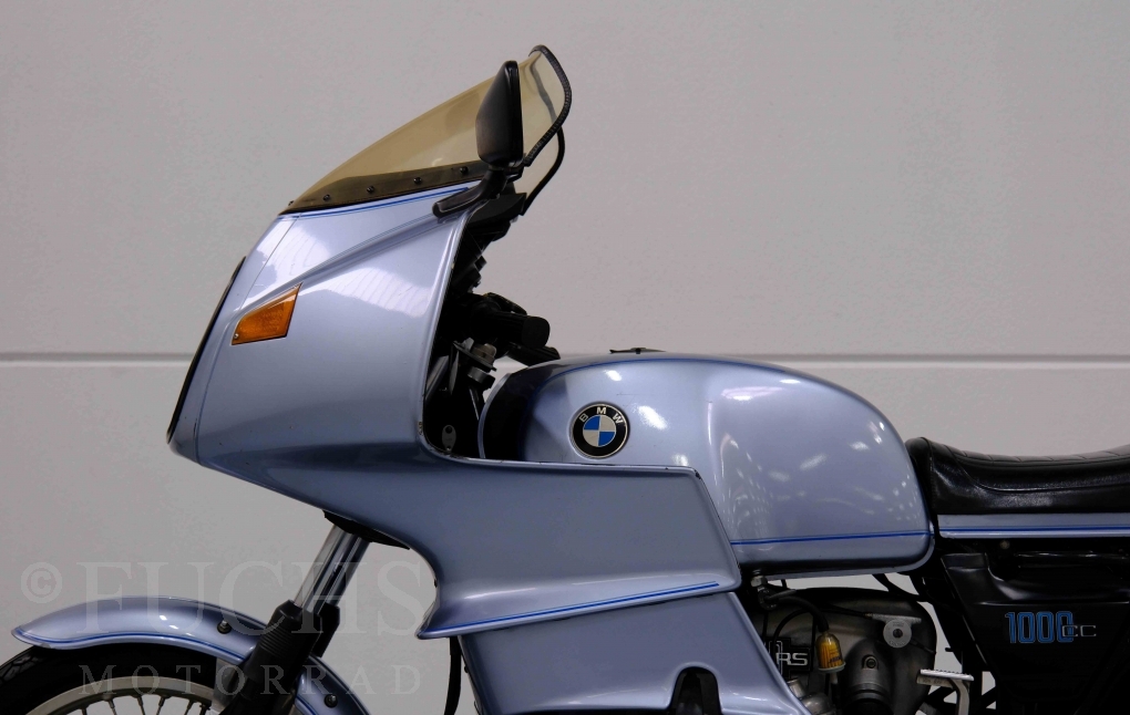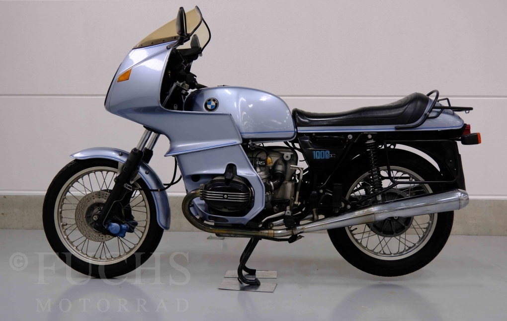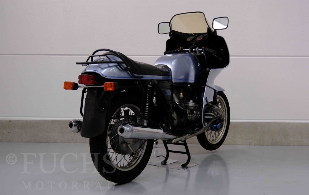 Die R 100 RS hat sich über viele Jahre großer Beliebtheit erfreut. Rund 33.000 Fahrzeuge wurden gebaut. Diese RS stammt aus den ersten Produktionsjahren was optisch leicht durch die Speichenräder zu identifizieren ist. Mit deer Vollverkleidung waren problemlos hohe Reisegeschwindigkeiten möglich. Nach einer Inspektion und der Montage neuer Reifen, ist die RS für ausgedehnte Motorradtouren in Verbindung mit dem Rückstoß in die frühen 80 Jahre bereit.