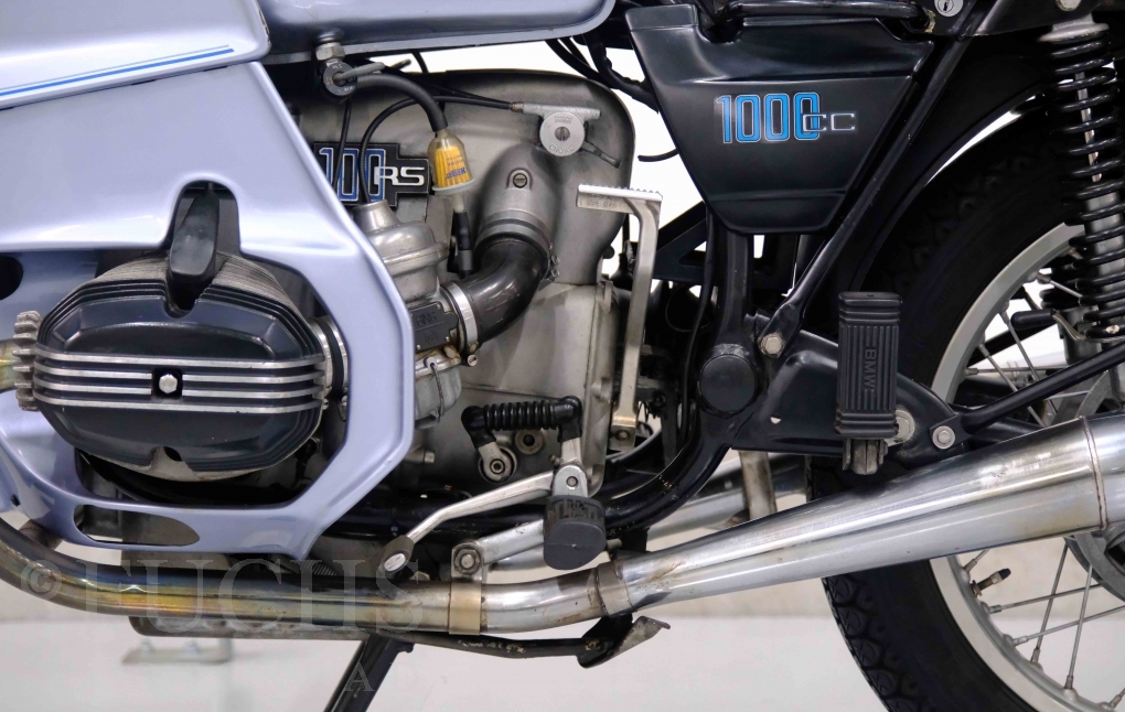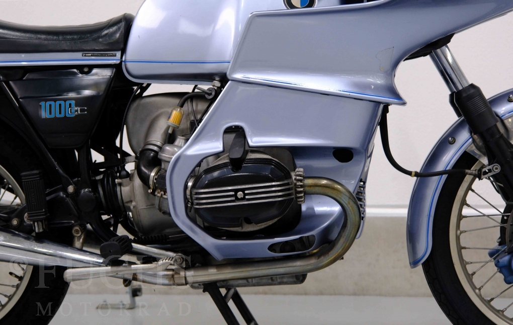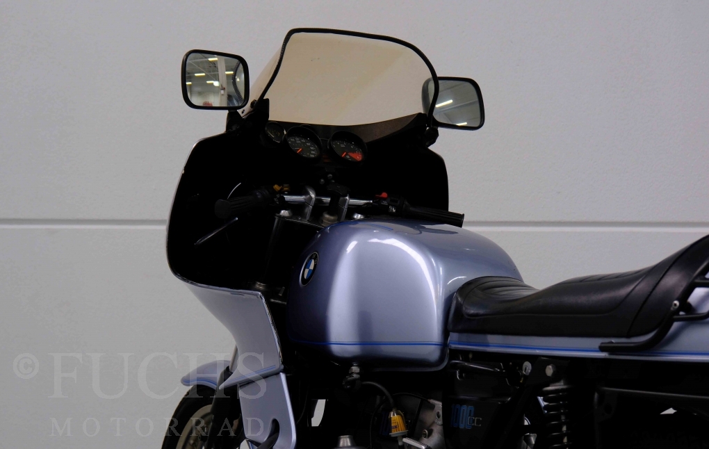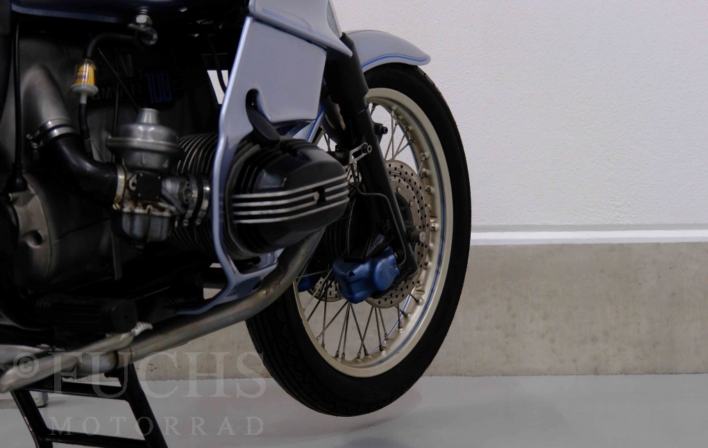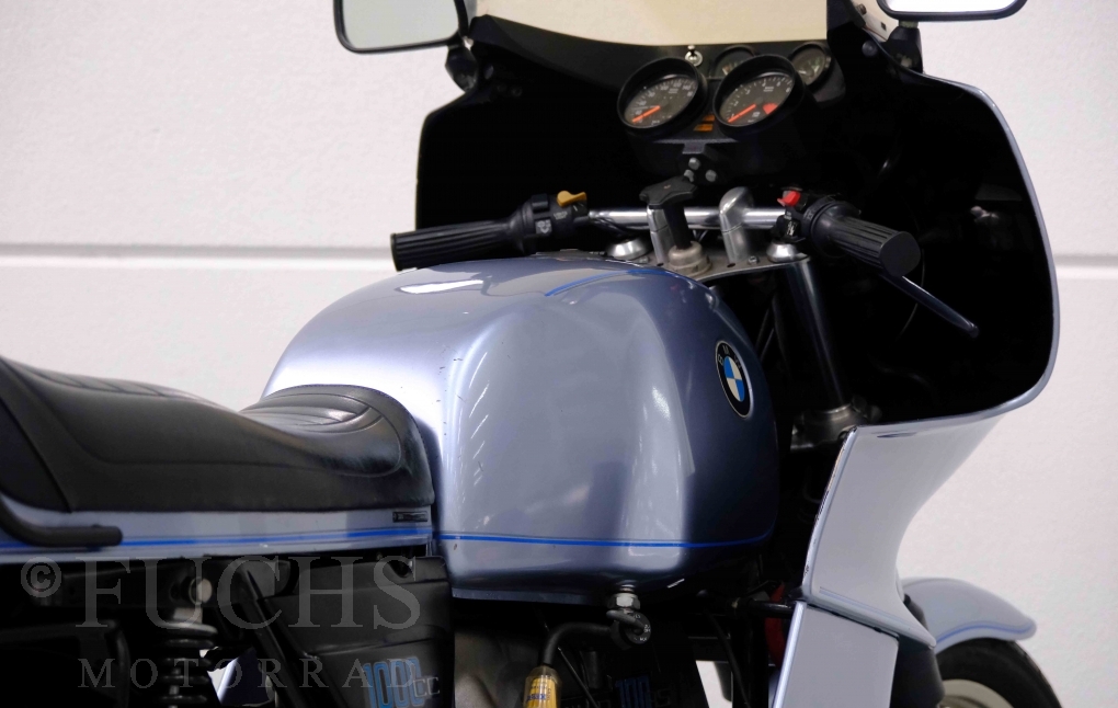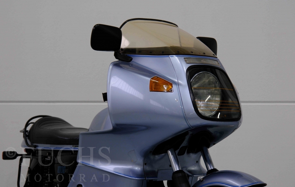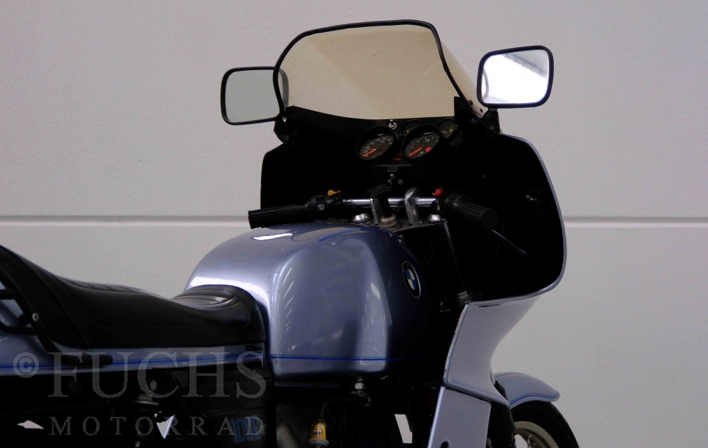 Die R 100 RS hat sich über viele Jahre großer Beliebtheit erfreut. Rund 33.000 Fahrzeuge wurden gebaut. Diese RS stammt aus den ersten Produktionsjahren was optisch leicht durch die Speichenräder zu identifizieren ist. Mit deer Vollverkleidung waren problemlos hohe Reisegeschwindigkeiten möglich. Nach einer Inspektion und der Montage neuer Reifen, ist die RS für ausgedehnte Motorradtouren in Verbindung mit dem Rückstoß in die frühen 80 Jahre bereit.