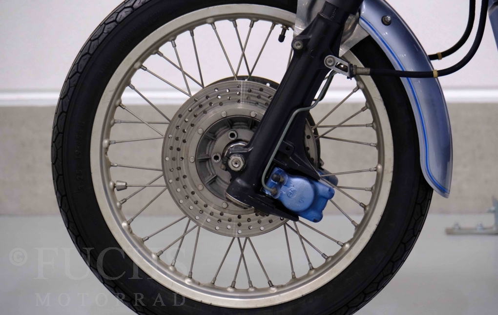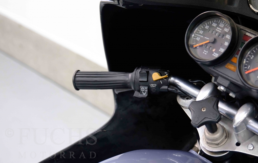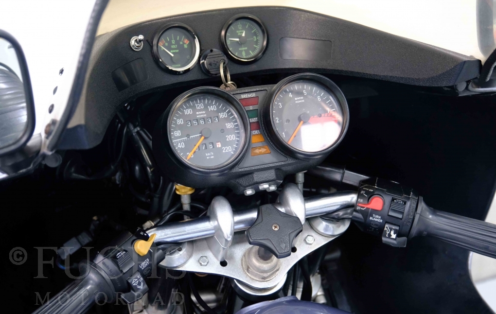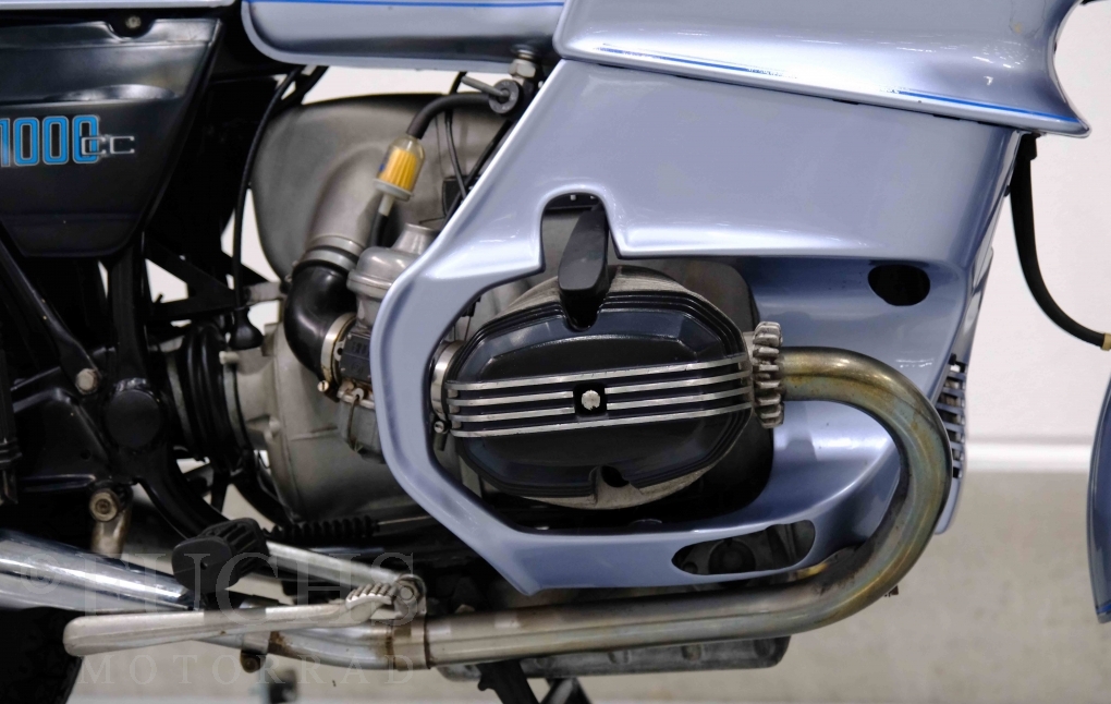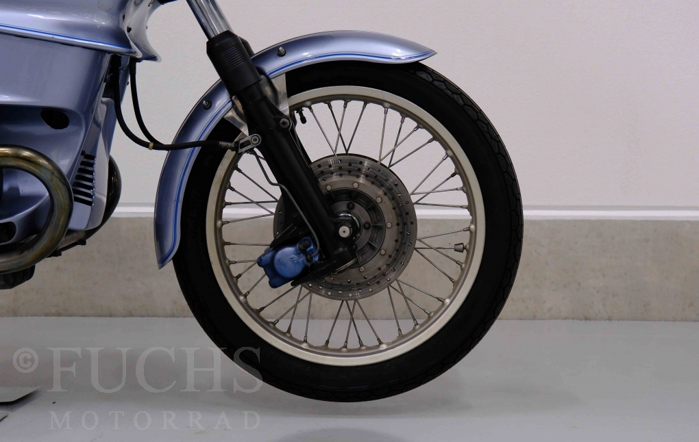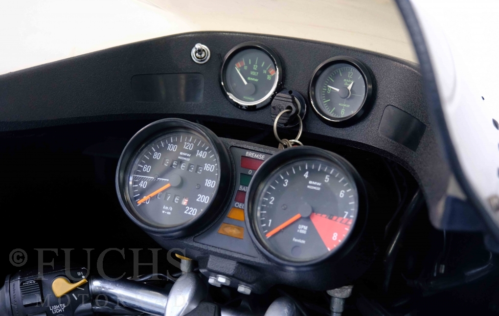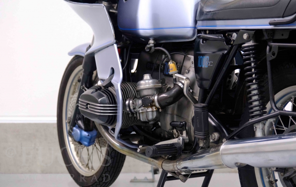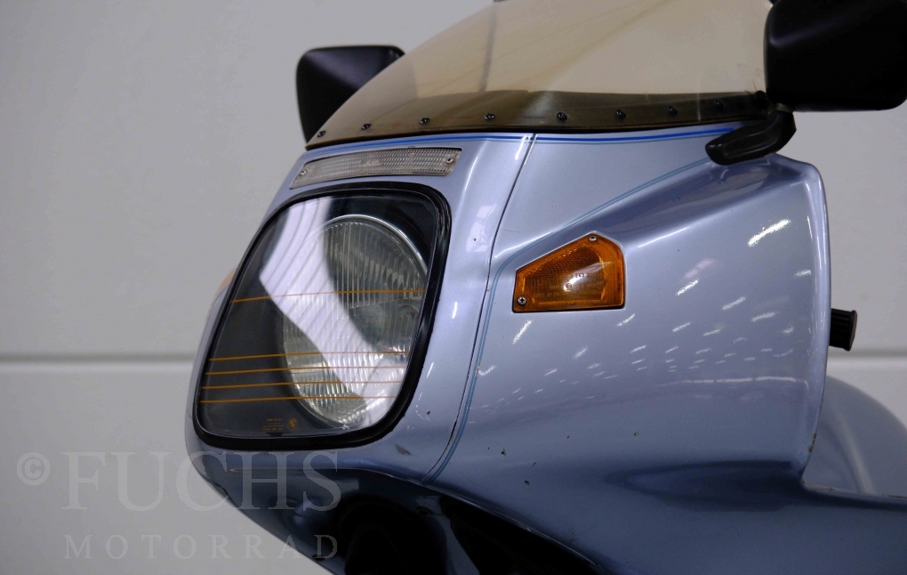 Die R 100 RS hat sich über viele Jahre großer Beliebtheit erfreut. Rund 33.000 Fahrzeuge wurden gebaut. Diese RS stammt aus den ersten Produktionsjahren was optisch leicht durch die Speichenräder zu identifizieren ist. Mit deer Vollverkleidung waren problemlos hohe Reisegeschwindigkeiten möglich. Nach einer Inspektion und der Montage neuer Reifen, ist die RS für ausgedehnte Motorradtouren in Verbindung mit dem Rückstoß in die frühen 80 Jahre bereit.
