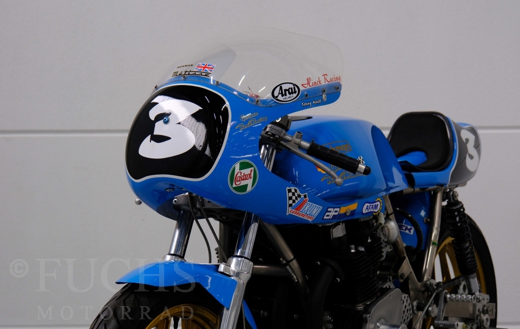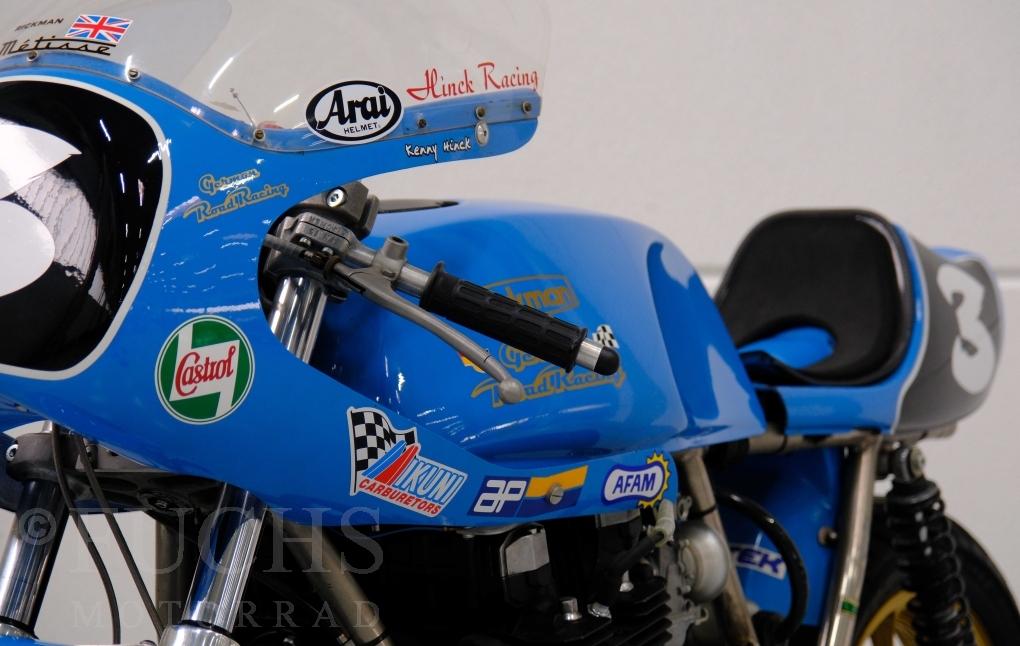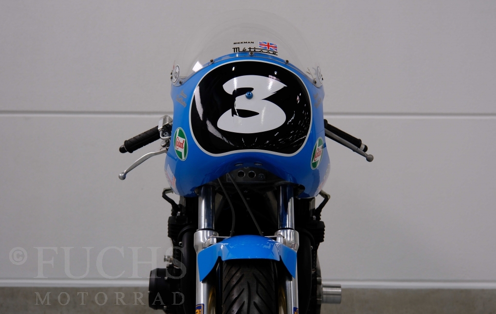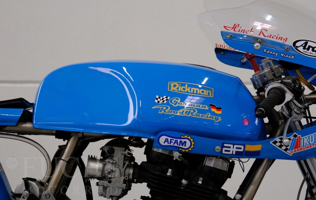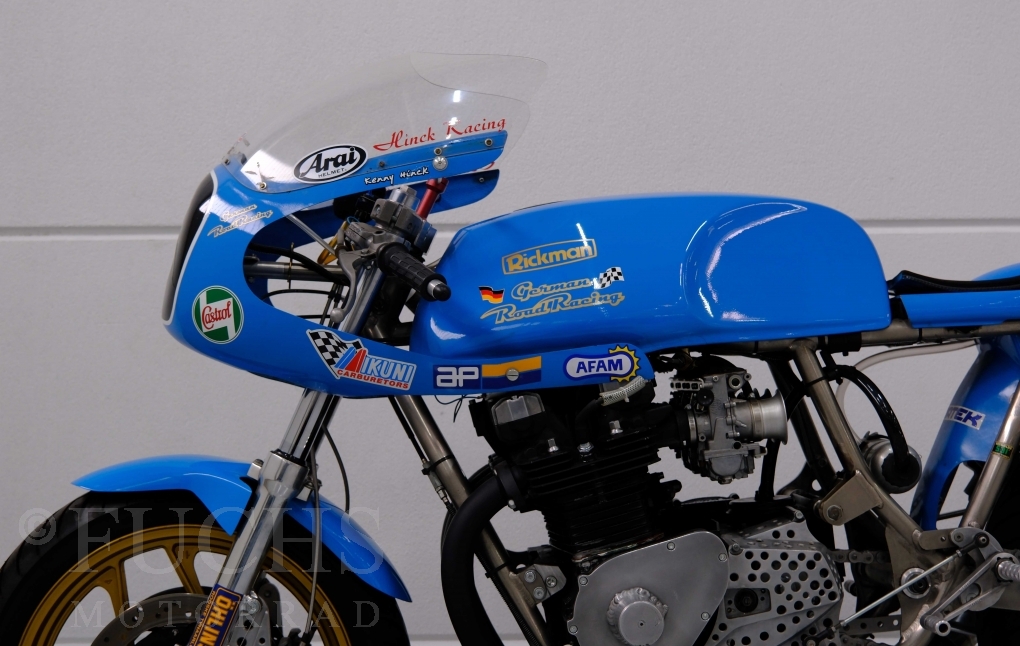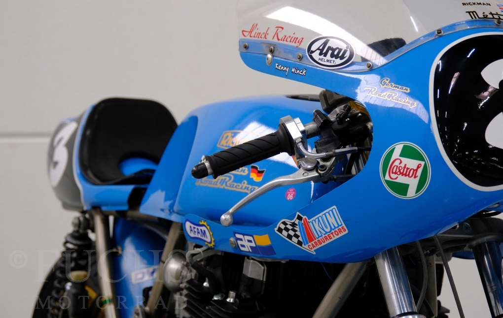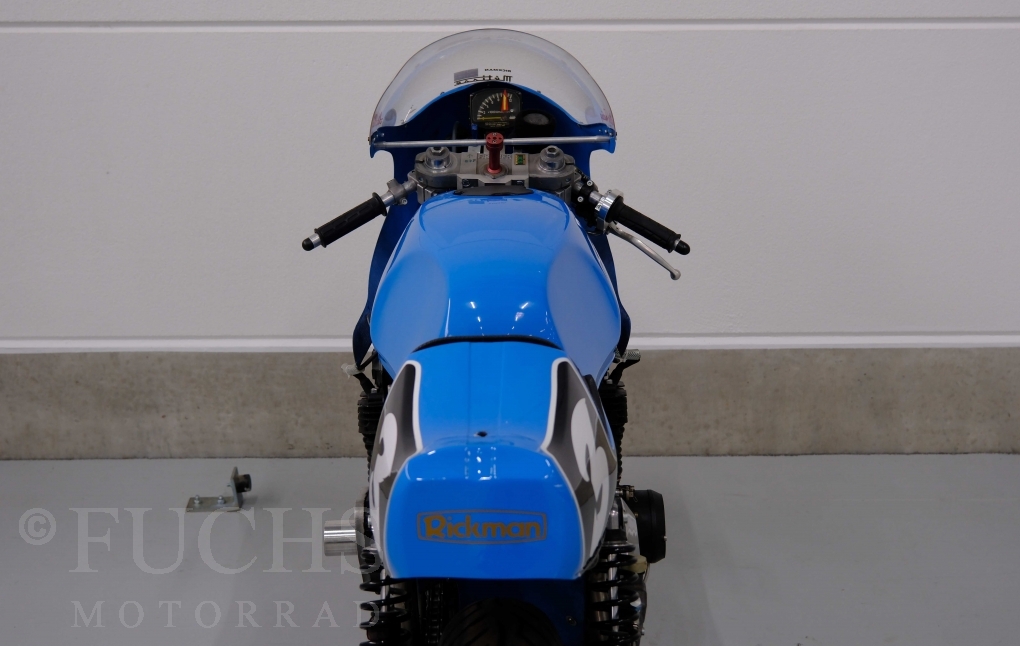 Den ursprünglichen Fahrzeugpapieren können wir entnehmen, dass die Rickman 1975 erstmalig in Deutschland zugelassen wurde. Vor einigen Jahren erfolgte der neue zur Rickman Kawa. Ein aktueller Service und die Rickman ist ready to race.