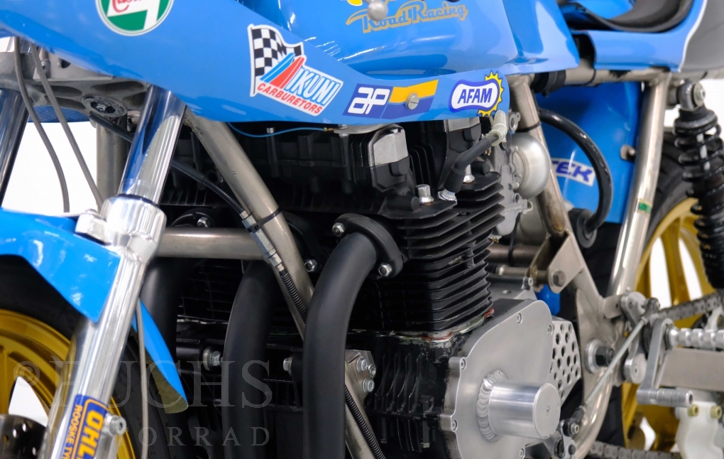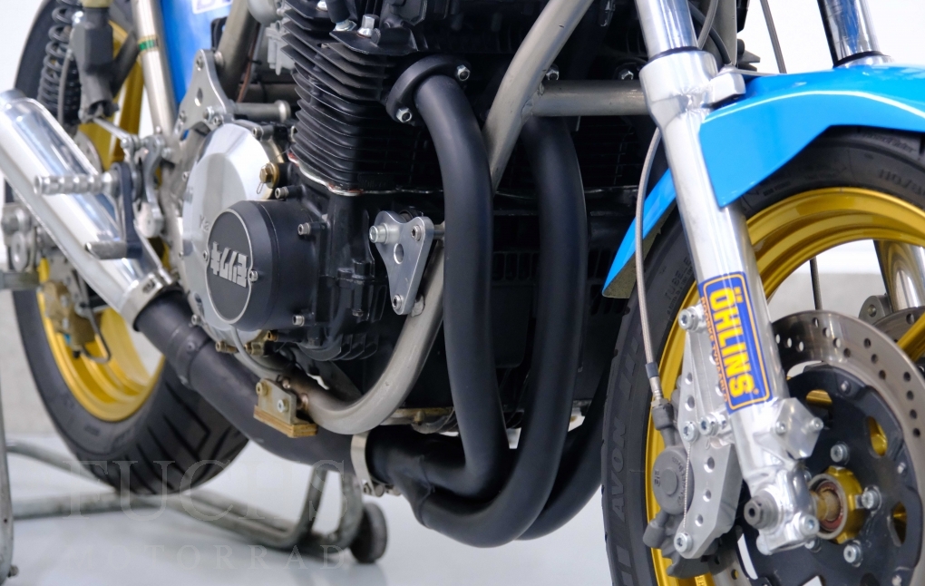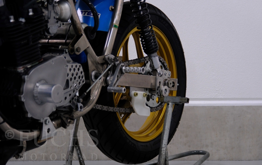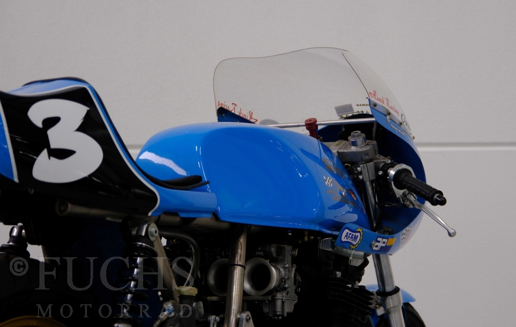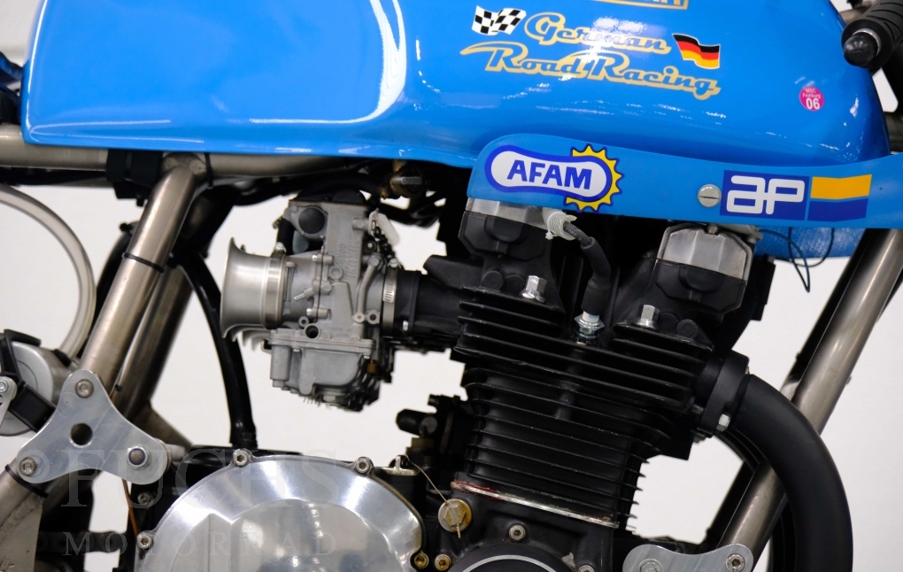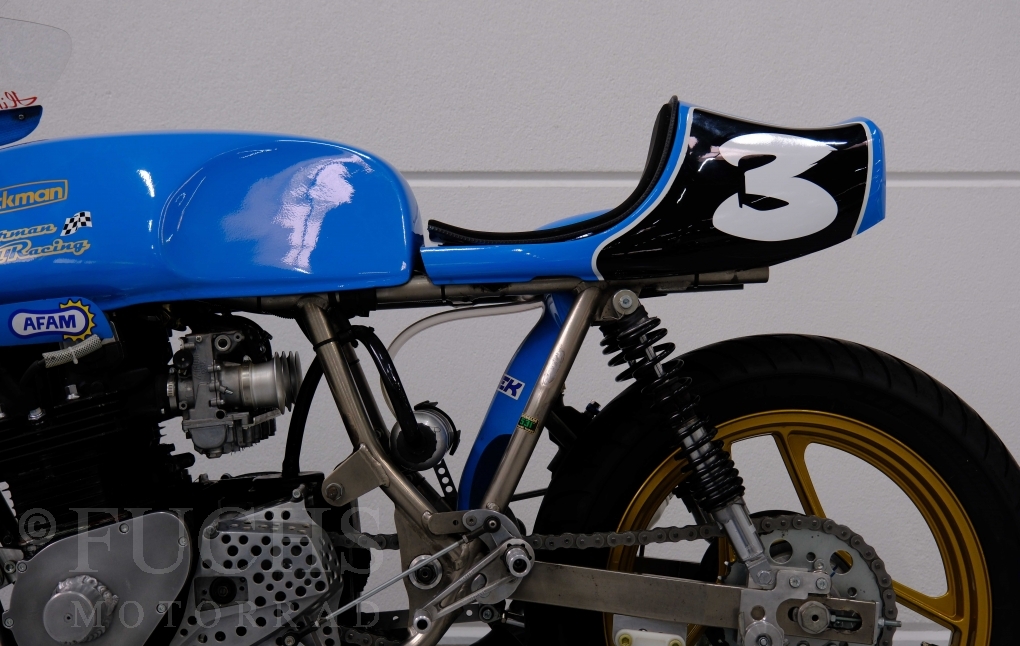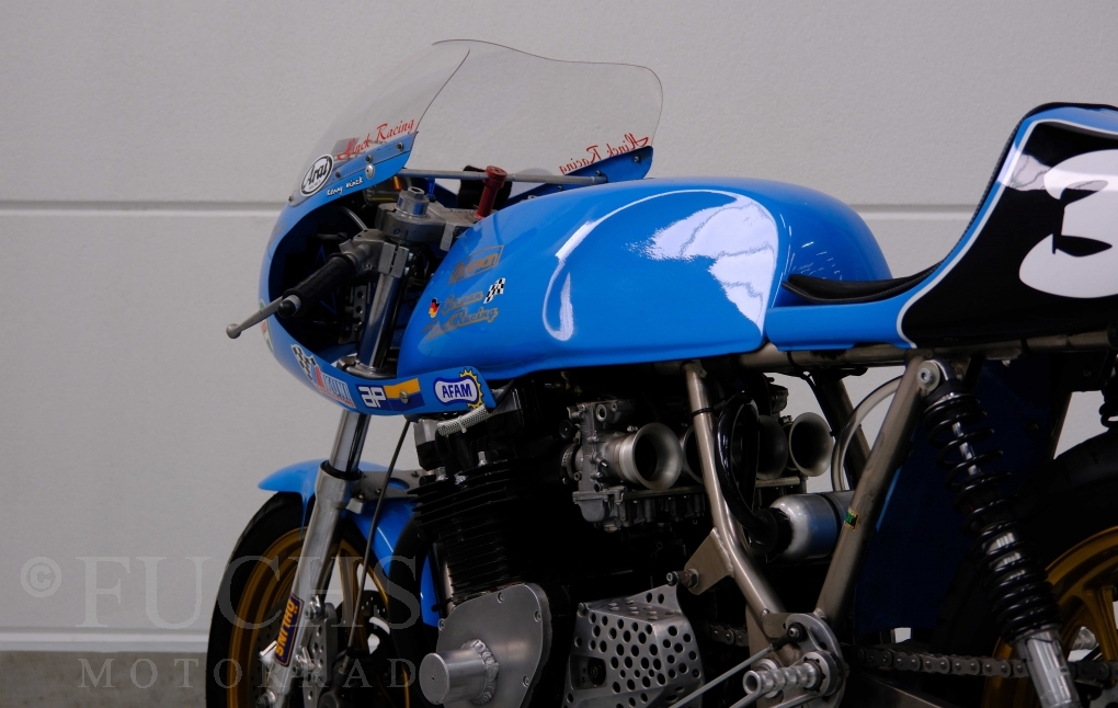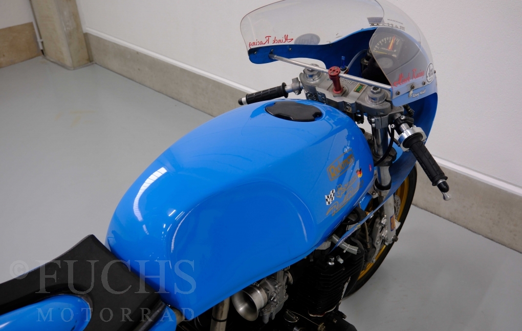 Den ursprünglichen Fahrzeugpapieren können wir entnehmen, dass die Rickman 1975 erstmalig in Deutschland zugelassen wurde. Vor einigen Jahren erfolgte der neue zur Rickman Kawa. Ein aktueller Service und die Rickman ist ready to race.