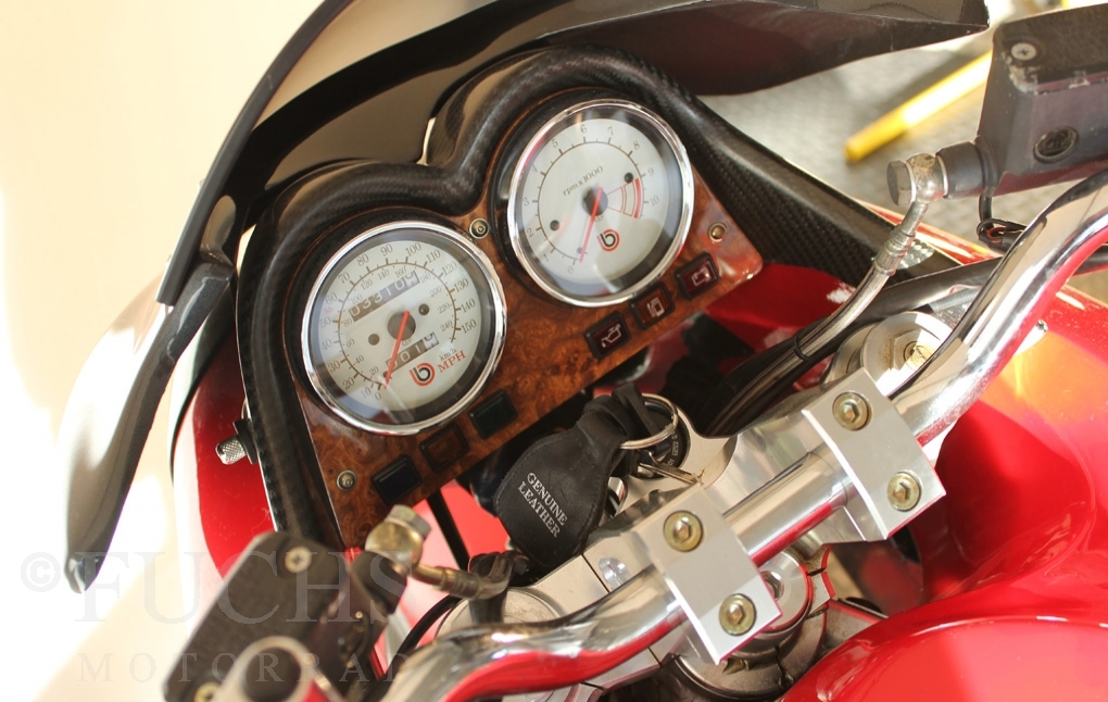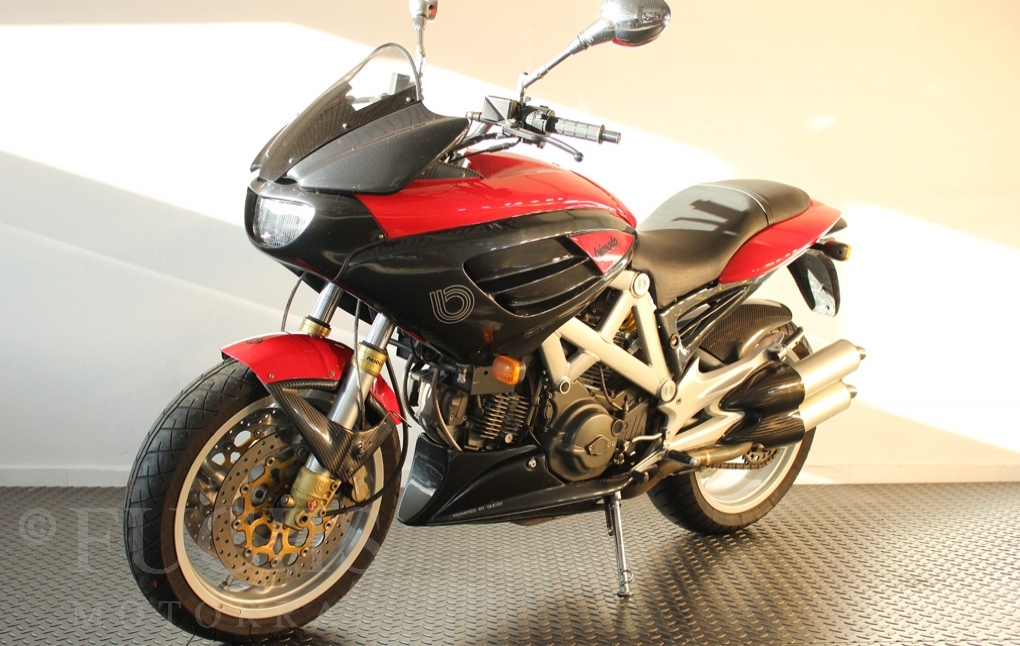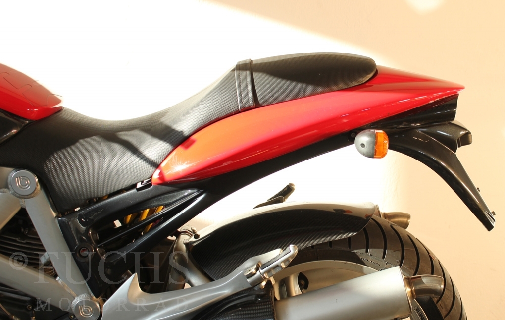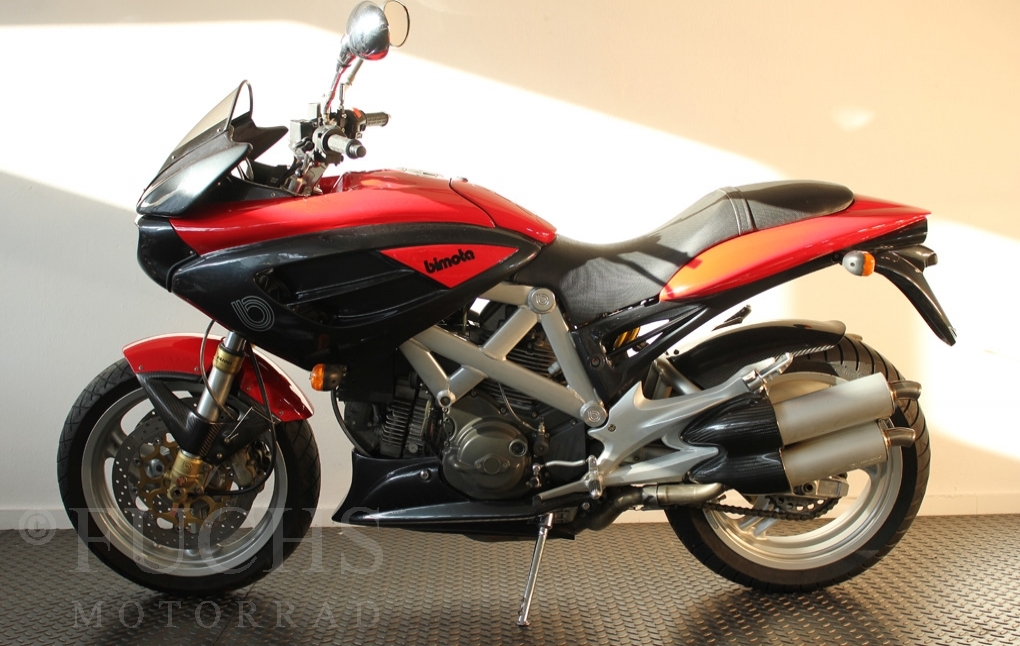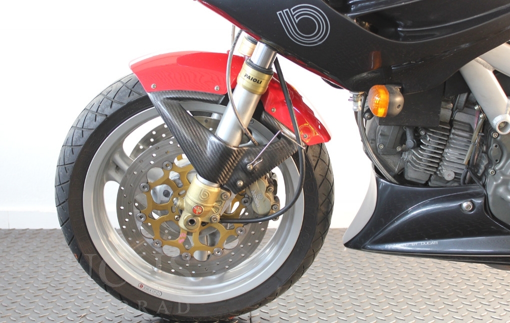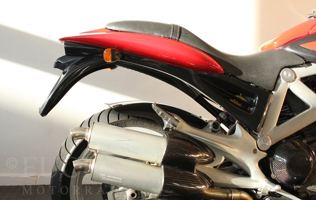 Die Mantra wurde in der Zeit von 1995-1998 produziert. Es entstanden von unserem Modell 454 Exemplare. Der Gitterrohrrahmen aus Leichtmetall beherbergt einen leistungsgesteigerten Ducati-Motor. Ein polarisierdens Design das auch dazu führte, dass die Mantra in namhaften Museen ausgestellt wird.