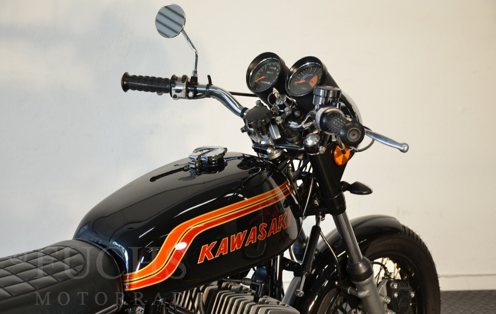 Vollständig zerlegt und anschließend neu aufgebaut. Dabei ist die H2 veredelt worden. Dazu gehören die Felgen, Lacksatz, Bremsanlage und die Auspuffanlage. Der Motor wurde revidiert.