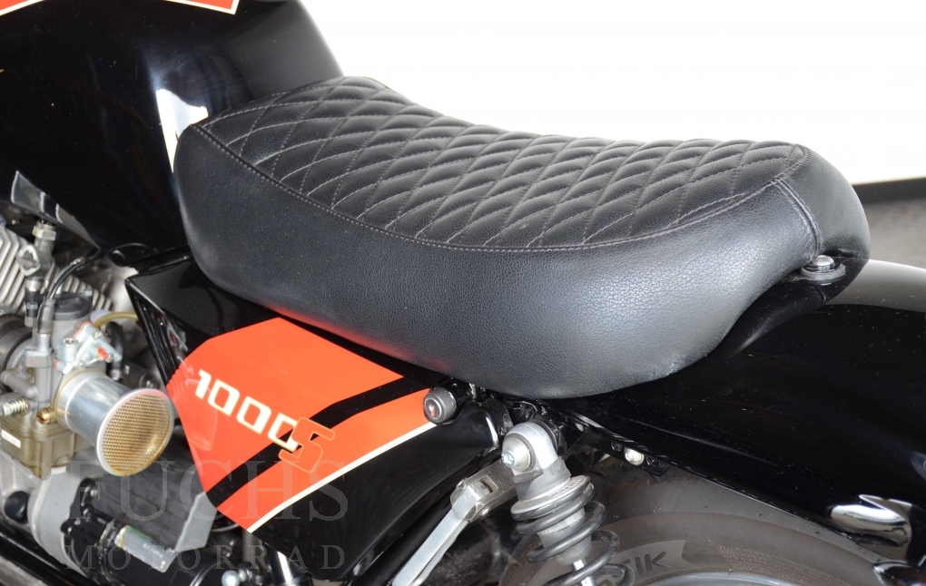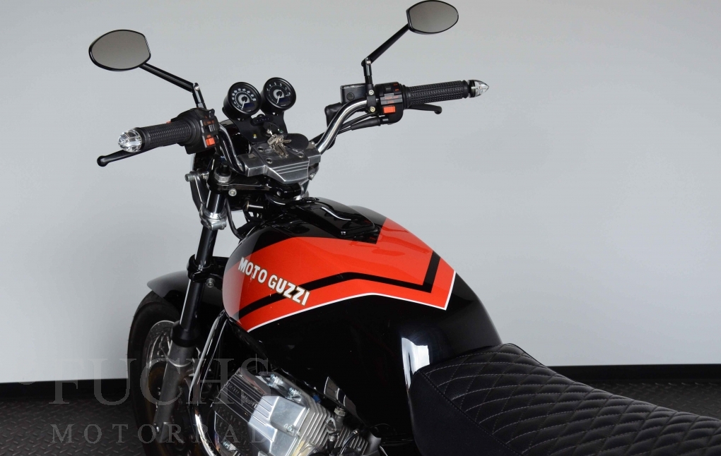 More than 15.000 € has the last owner spent in his own special Mille GT round about 2 years ago. We have the invoices. This Guzzi runs perfect and we think that it is a very nice cafe racer.