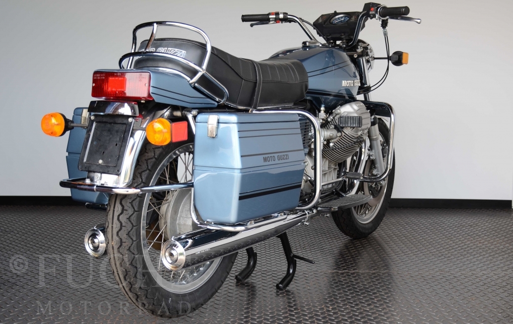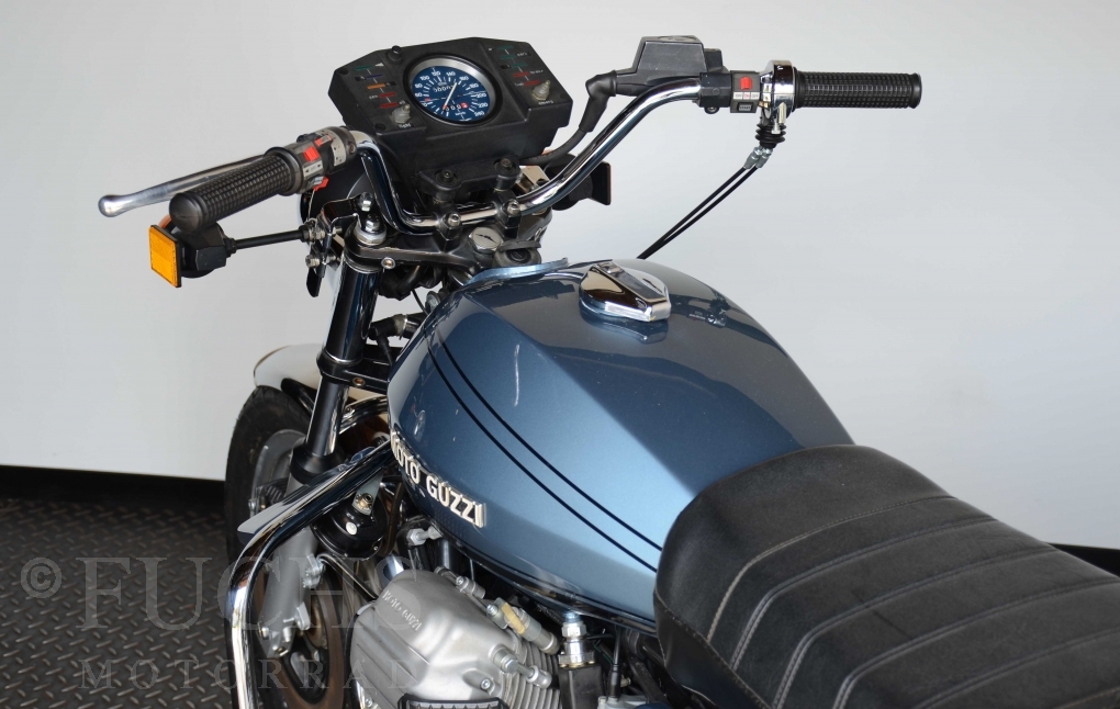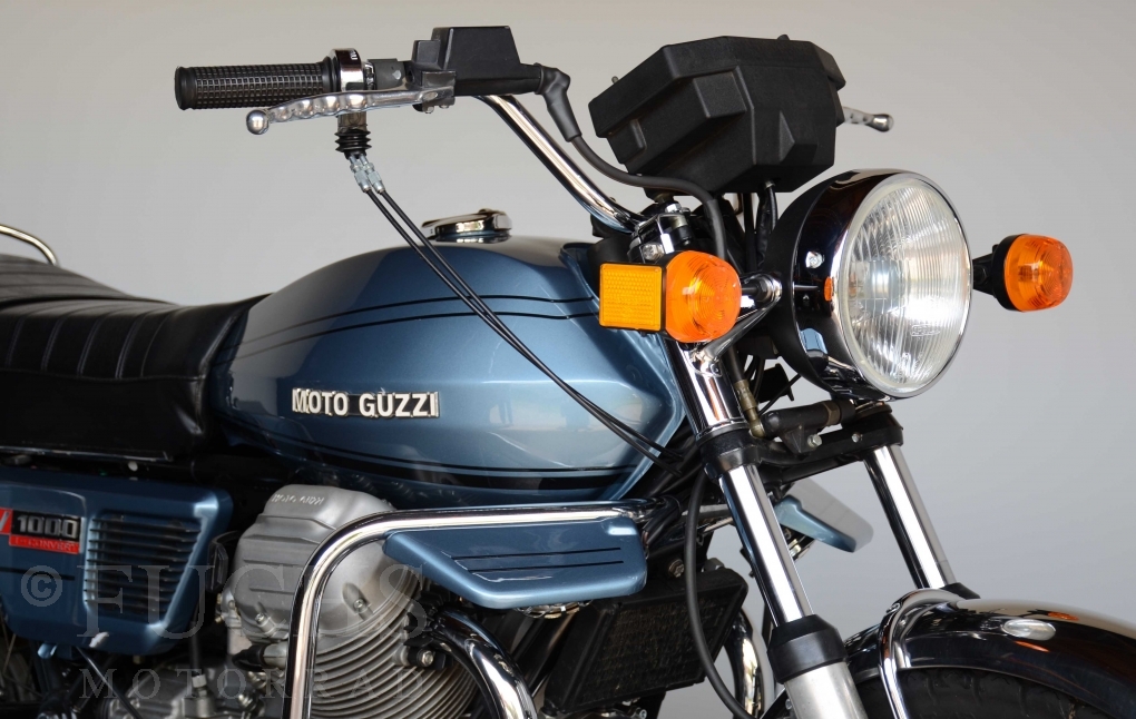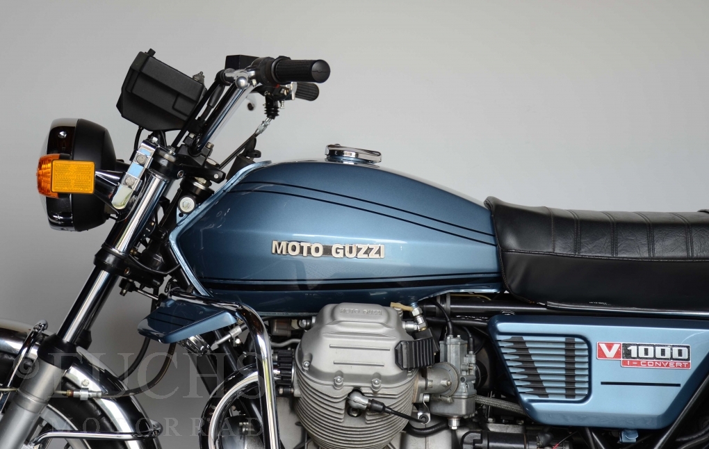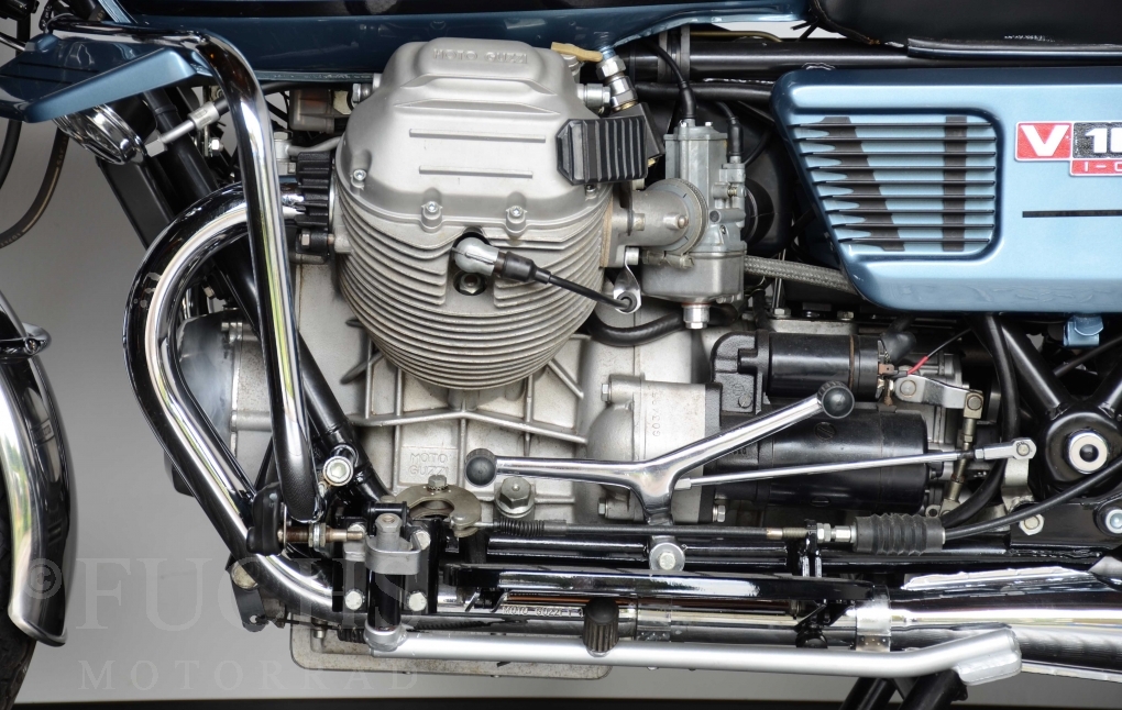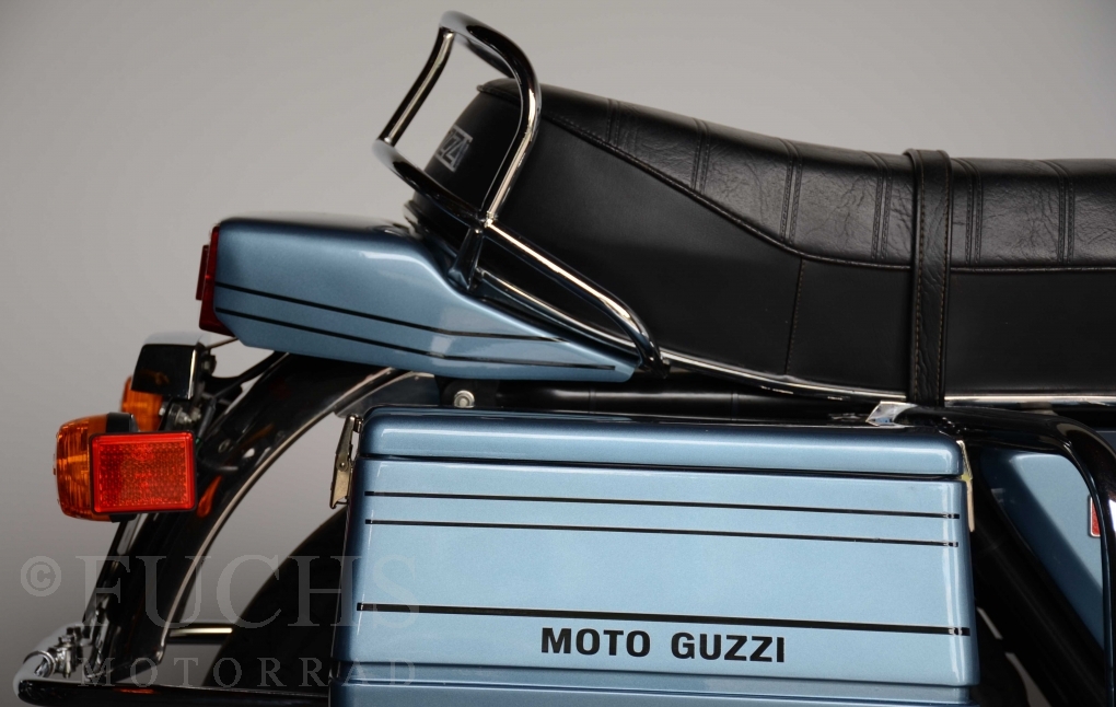 The V 1000 I-Convert was created by Moto Guzzi in the de Tomaso era. Moto Guzzi has advertised the machine with the remark: "a motorcycle of superlatives". It was then the only large tour motorcycle in the world with a semi-automatic Getriebve (Fichtel & Sachs converter) So from todays sight interesting that the construction in conjunction with the side stand was very expensive, because the side stand triggers a parking brake in the unfolded state. The paint kit is original. The tank was not painted.