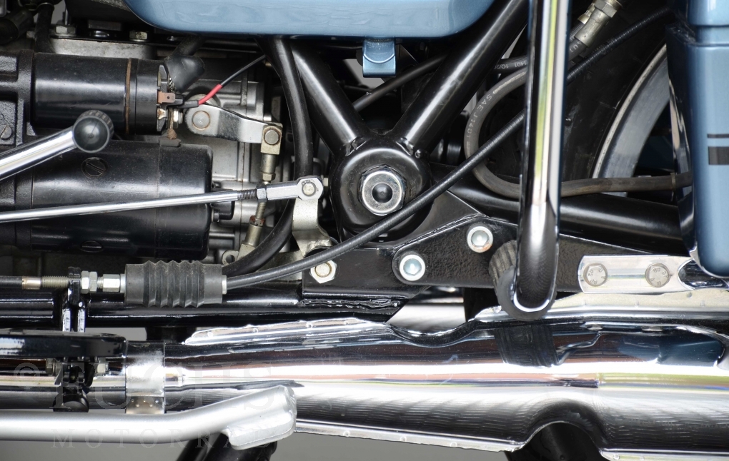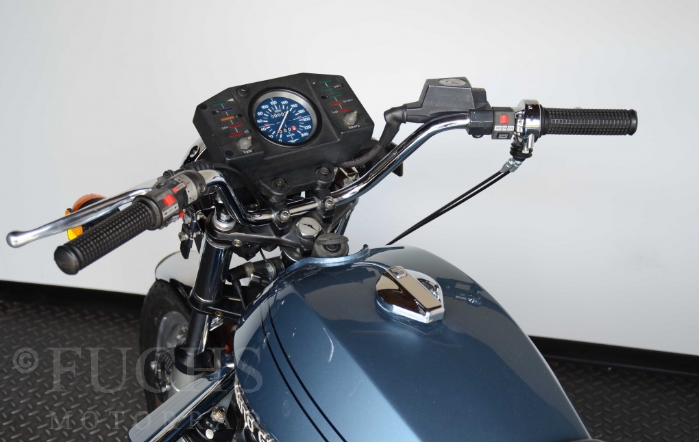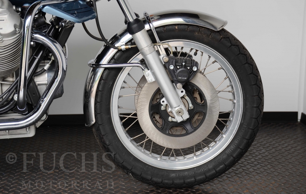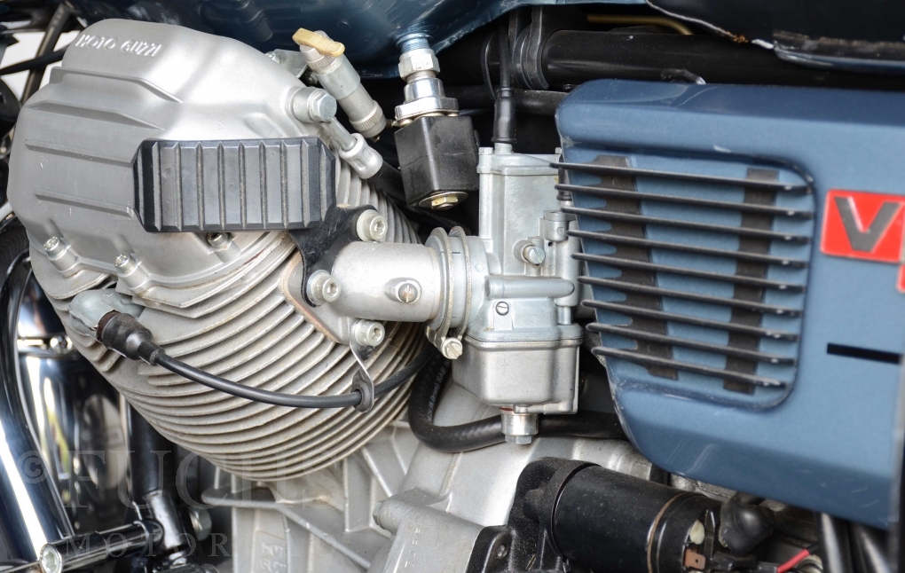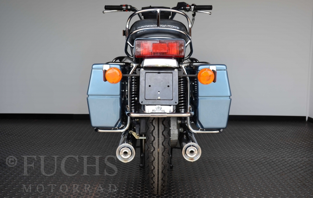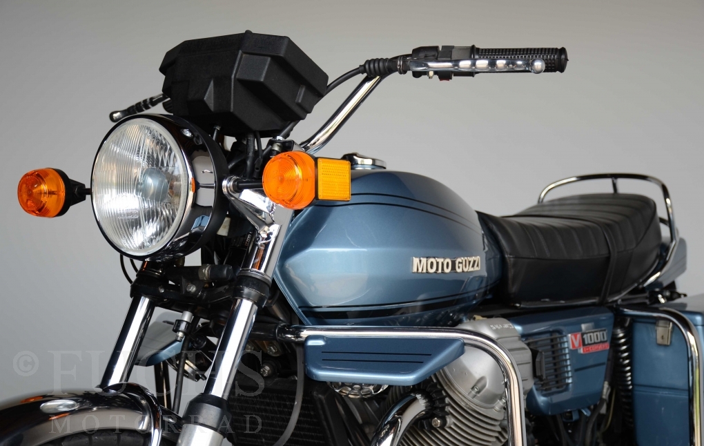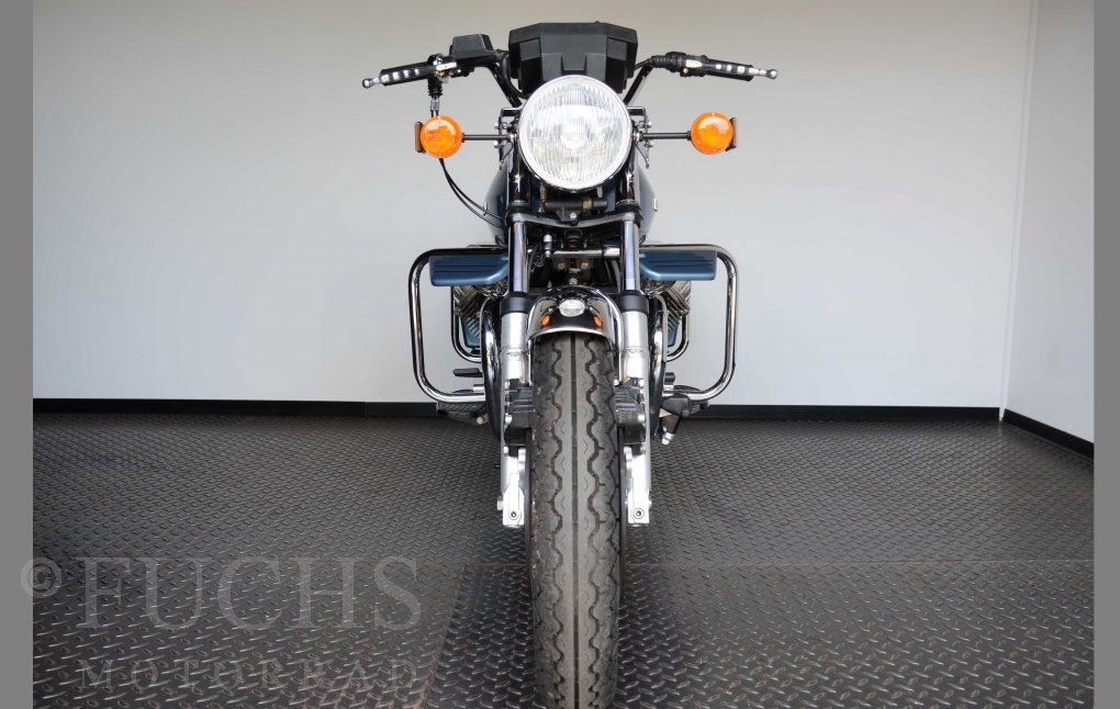 The V 1000 I-Convert was created by Moto Guzzi in the de Tomaso era. Moto Guzzi has advertised the machine with the remark: "a motorcycle of superlatives". It was then the only large tour motorcycle in the world with a semi-automatic Getriebve (Fichtel & Sachs converter) So from todays sight interesting that the construction in conjunction with the side stand was very expensive, because the side stand triggers a parking brake in the unfolded state. The paint kit is original. The tank was not painted.