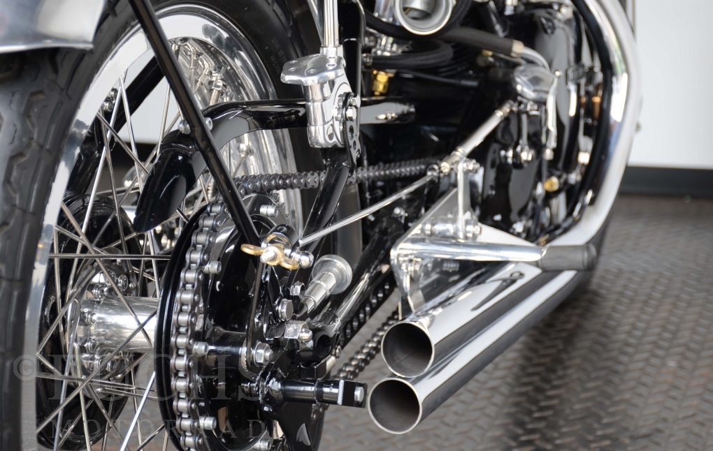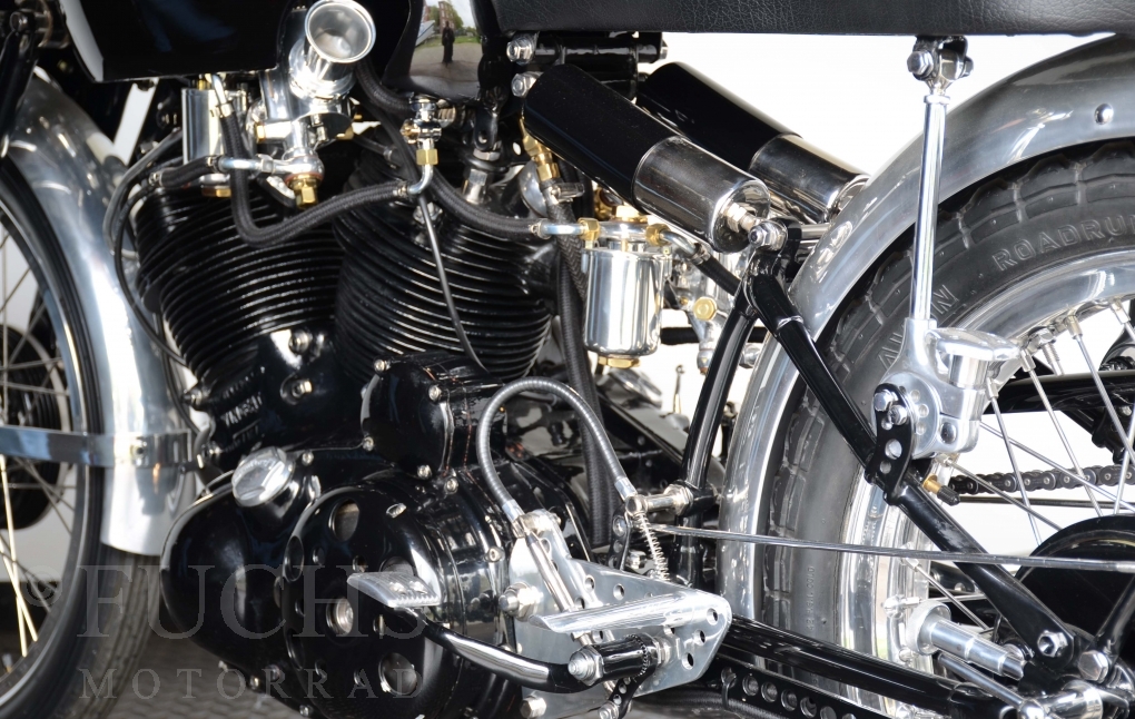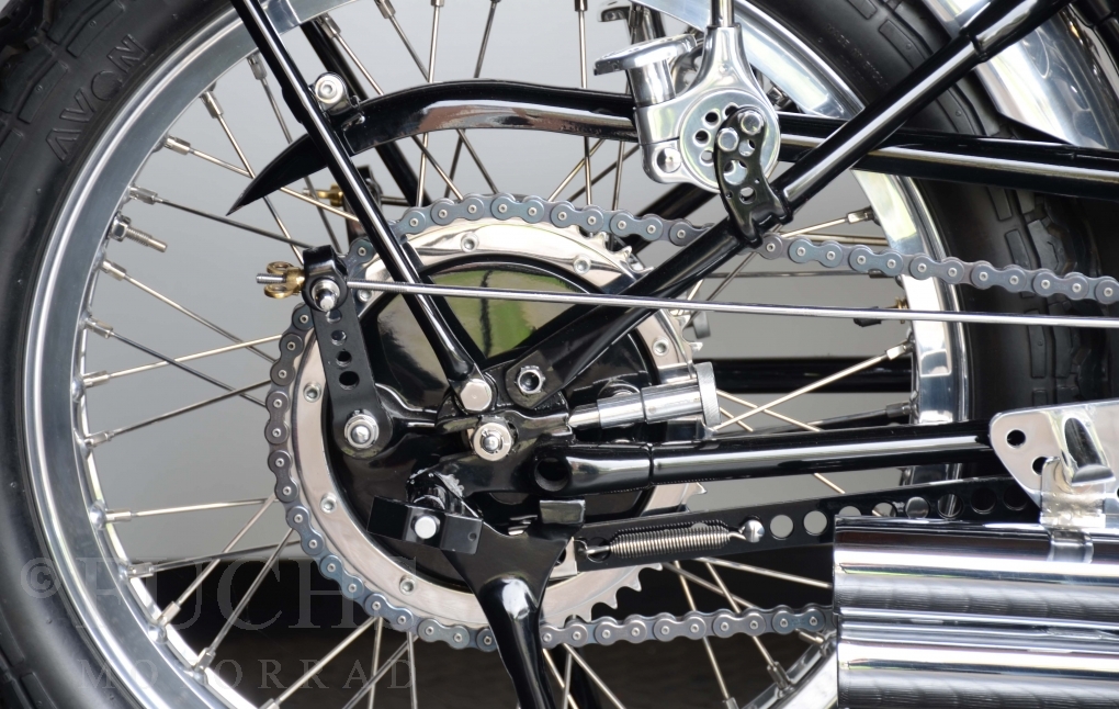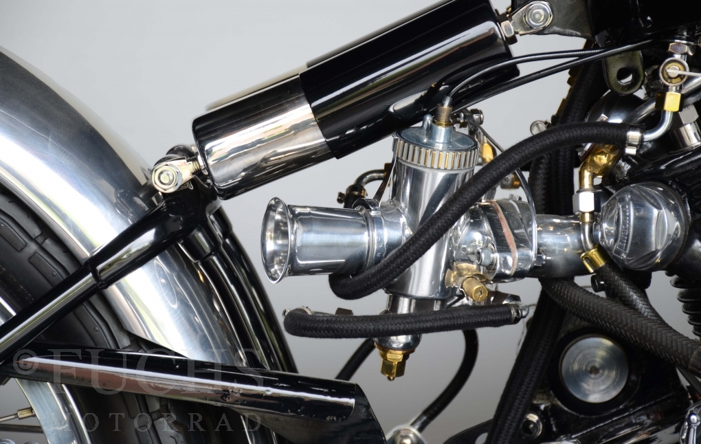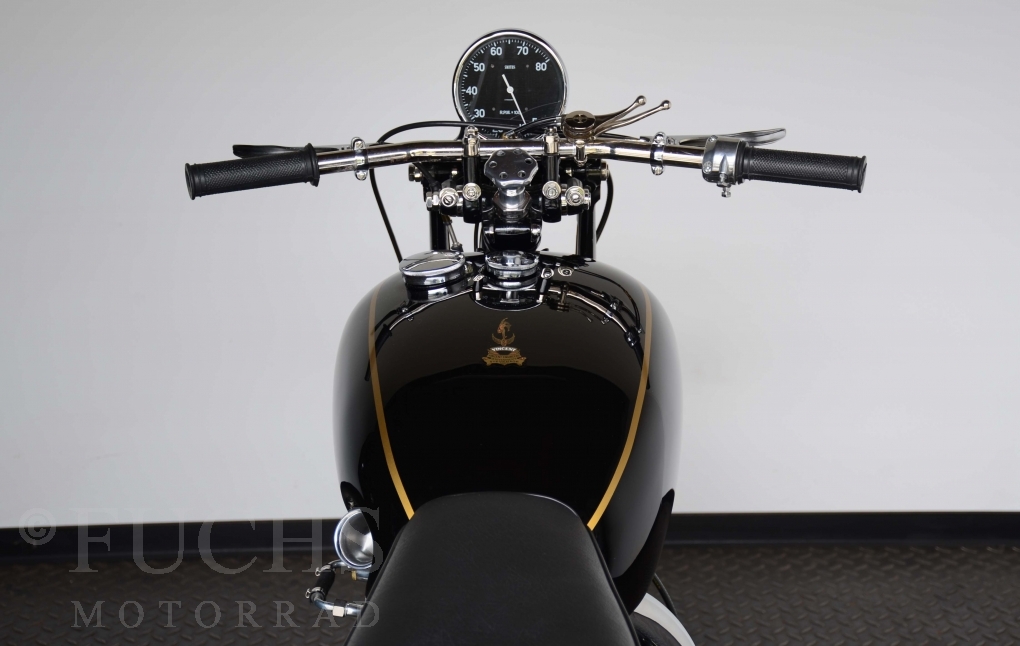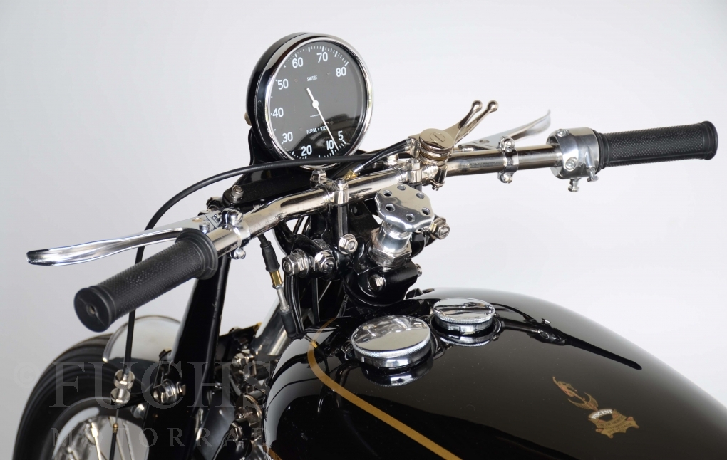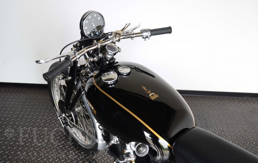 The Black Lightning was built in the period from 1948 to 1952. Base was then a modified Black Shadow. At that time, the Black Lightning was one of the fastest motorcycles in the world. Our racing machine is a recreation in a high quality condition.
