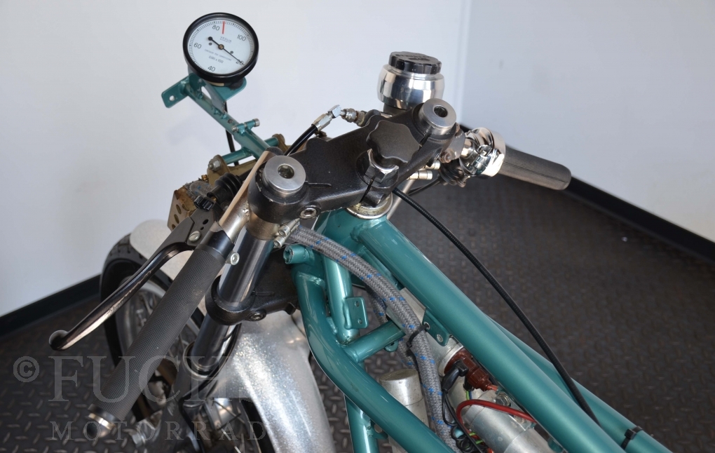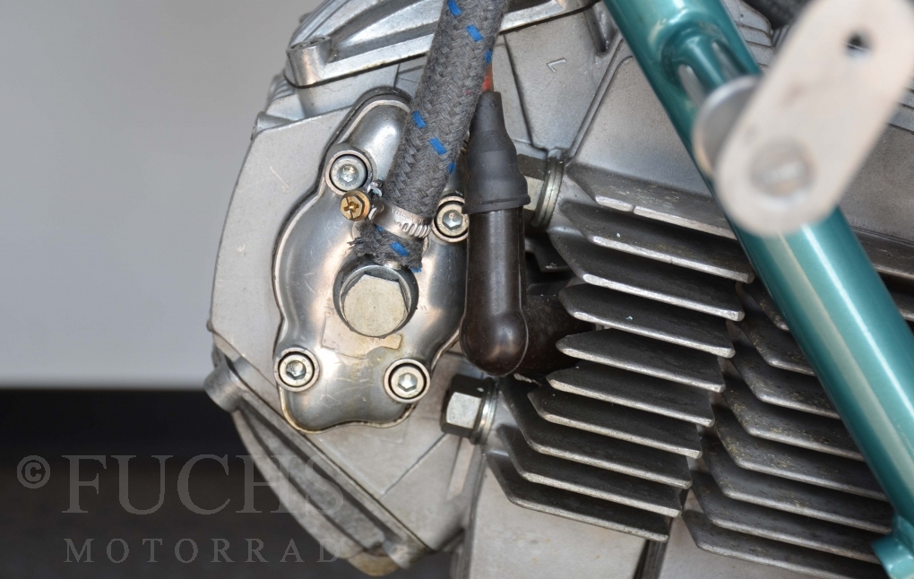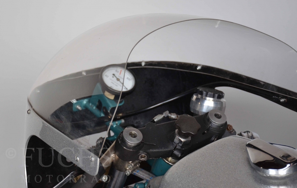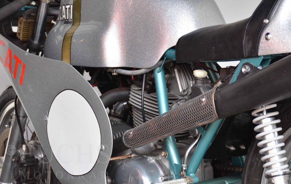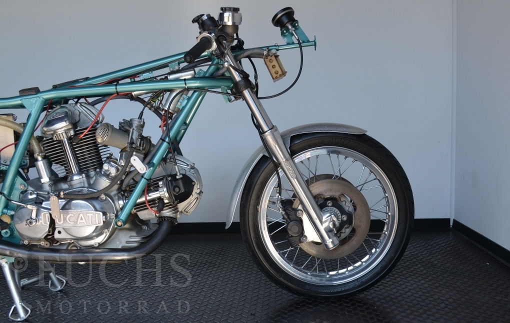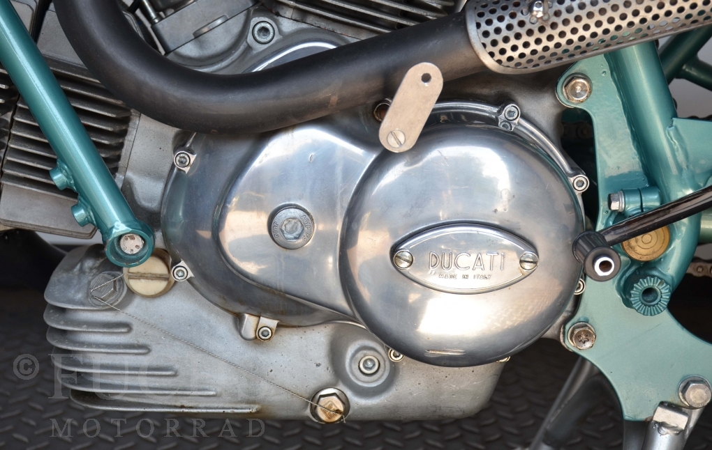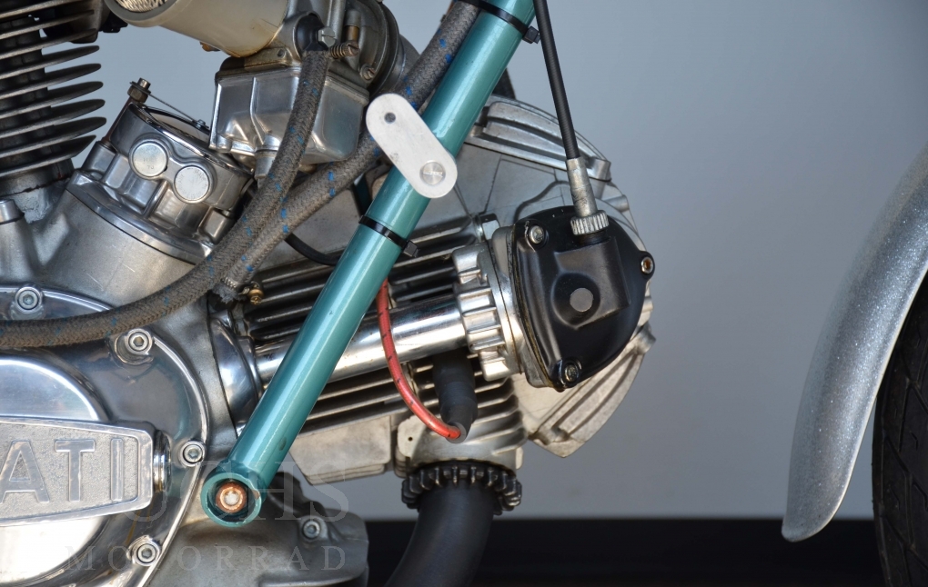 The Ducati 750 Imola was built for a collector in the 70s. The basis for the racing machine is a sand-cast engine. The sand-cast engine is equipped with double spark ignition. Original Borrani rims, Veglia Competizione, smooth body carburettors, a straight toothed primary drive, desmodromic controlled larger intake valves, Lockheed brakes, exhaust system round off the value in our view.