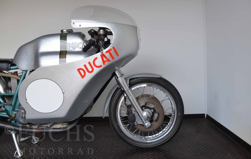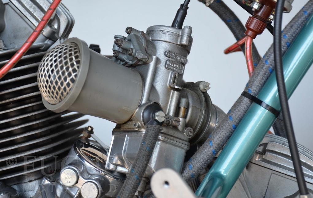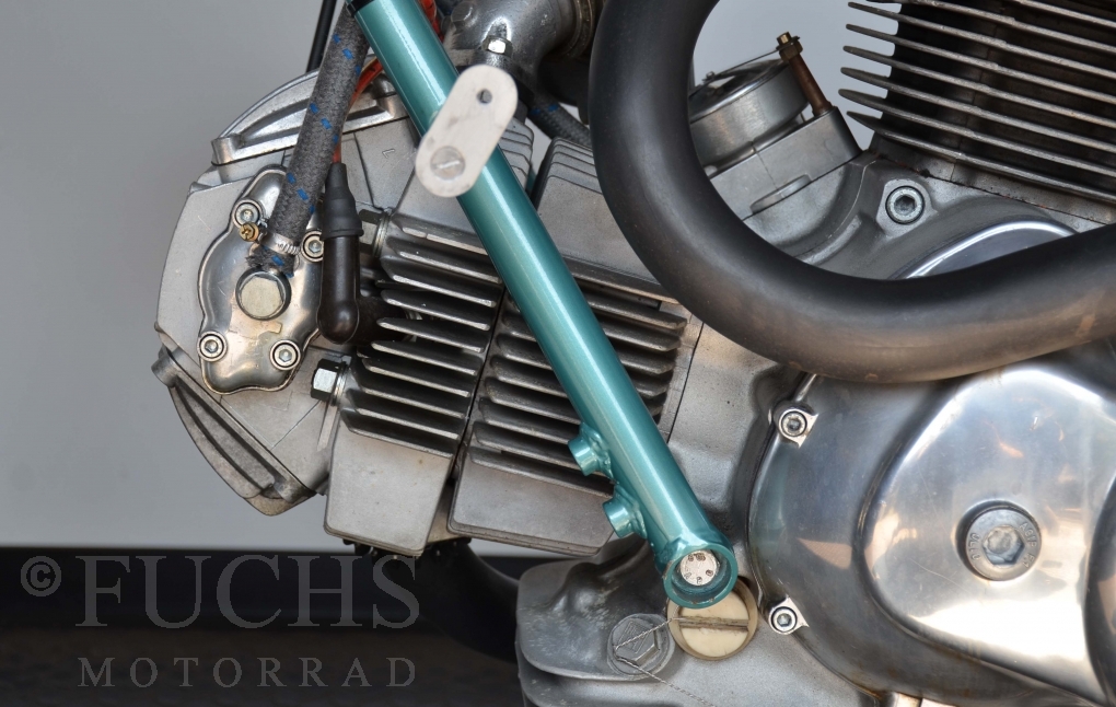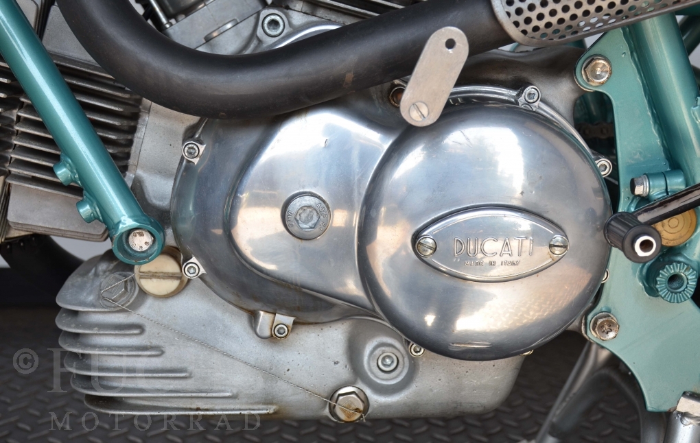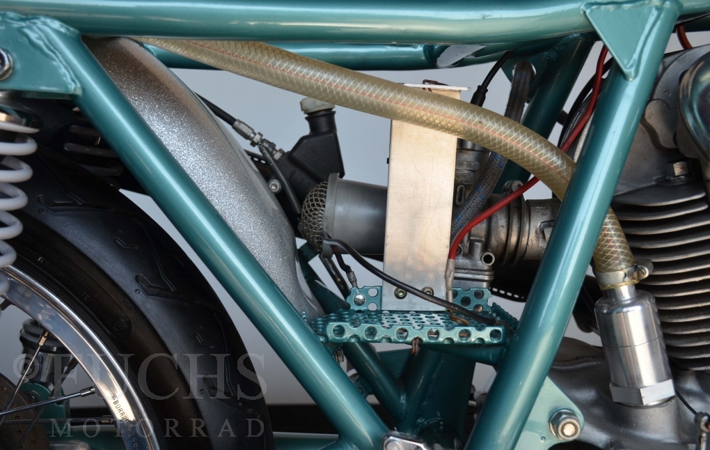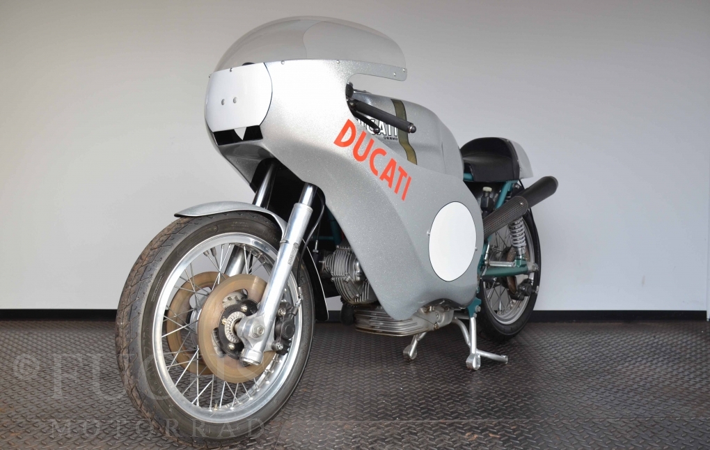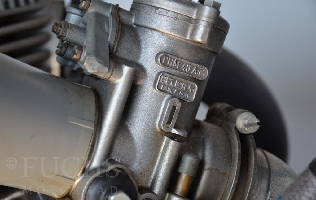 The Ducati 750 Imola was built for a collector in the 70s. The basis for the racing machine is a sand-cast engine. The sand-cast engine is equipped with double spark ignition. Original Borrani rims, Veglia Competizione, smooth body carburettors, a straight toothed primary drive, desmodromic controlled larger intake valves, Lockheed brakes, exhaust system round off the value in our view.