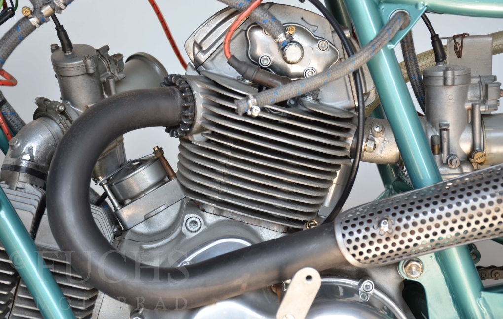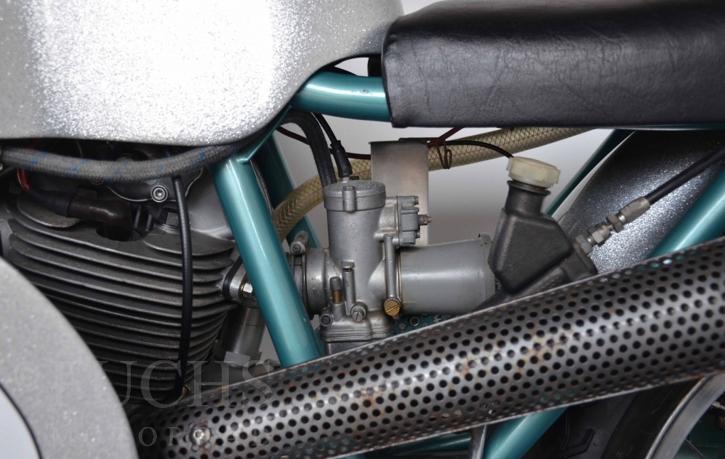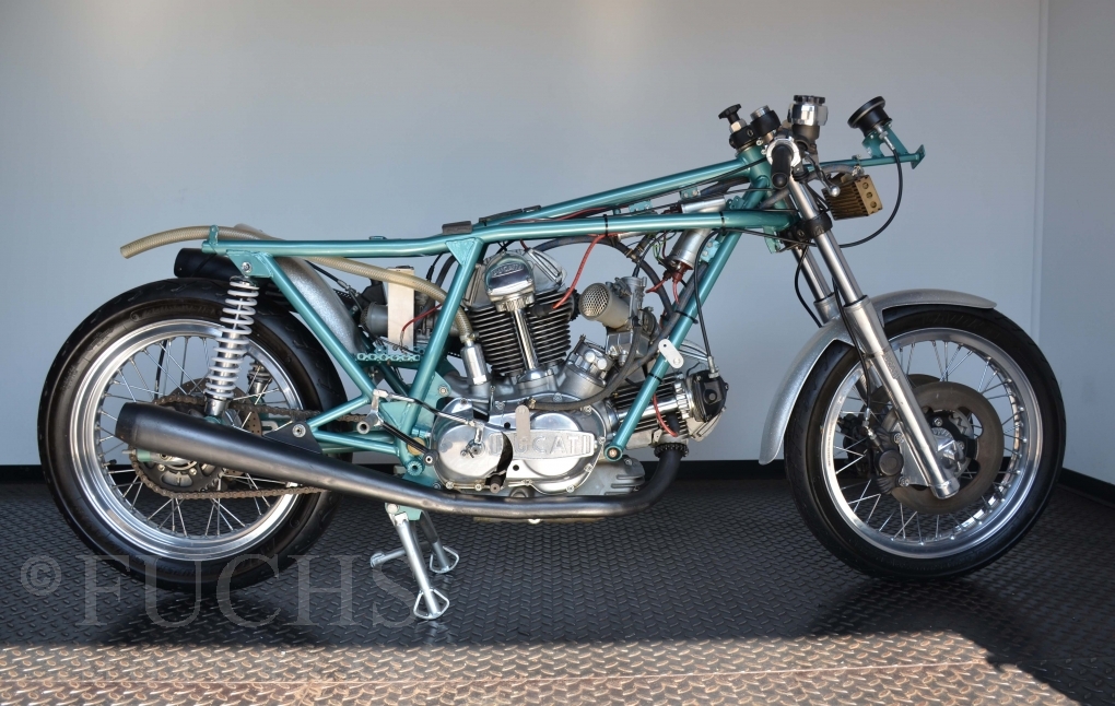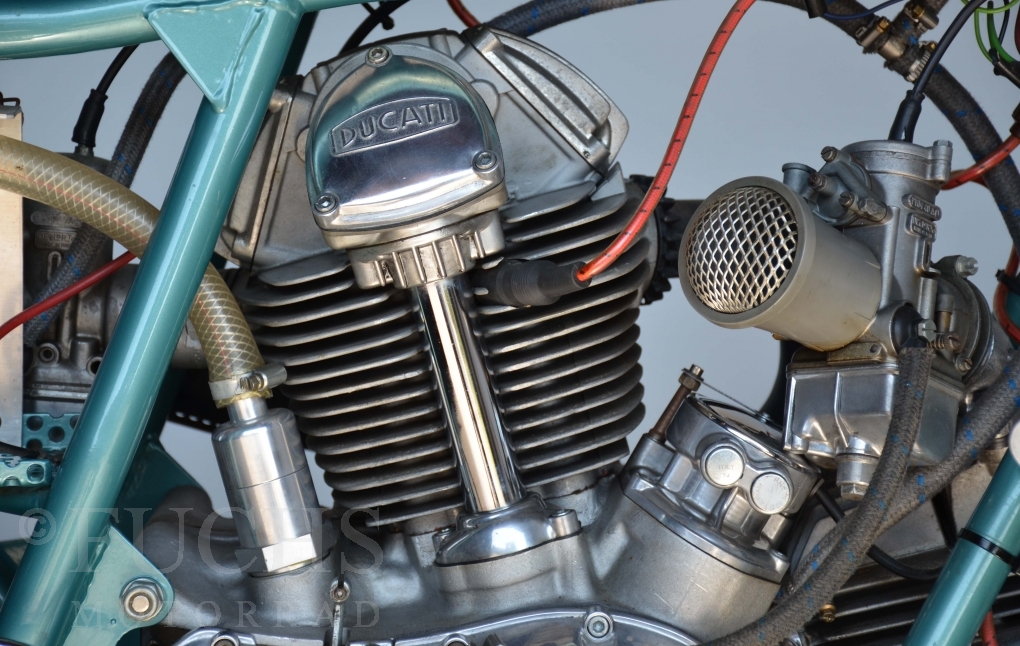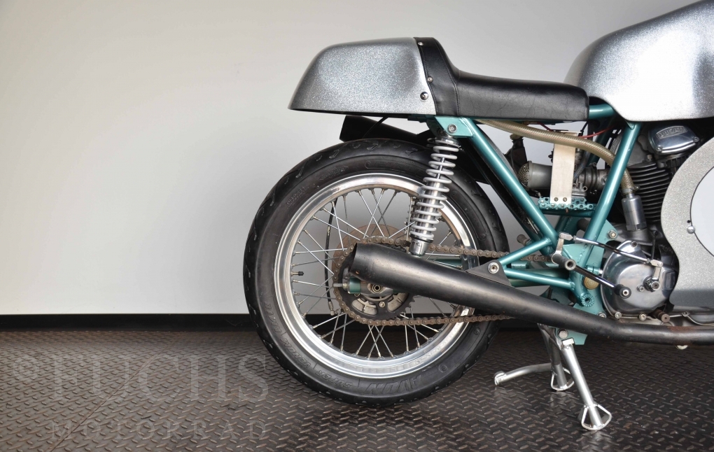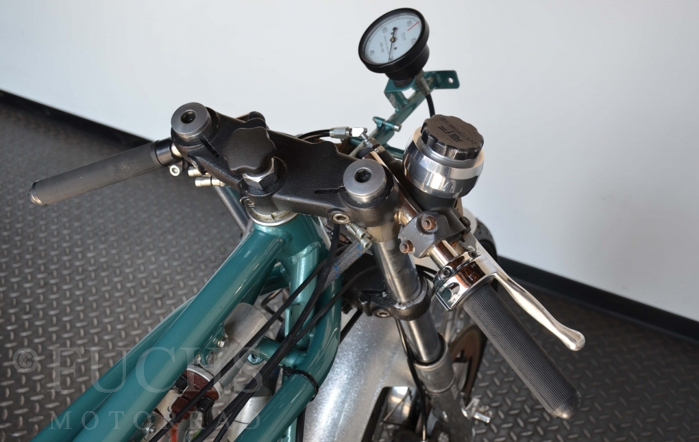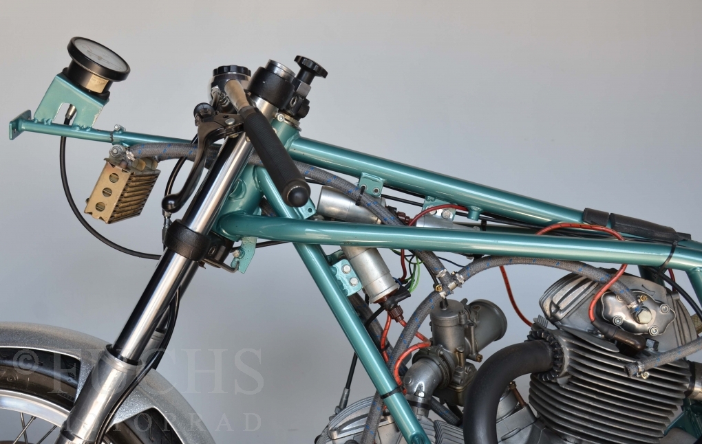 The Ducati 750 Imola was built for a collector in the 70s. The basis for the racing machine is a sand-cast engine. The sand-cast engine is equipped with double spark ignition. Original Borrani rims, Veglia Competizione, smooth body carburettors, a straight toothed primary drive, desmodromic controlled larger intake valves, Lockheed brakes, exhaust system round off the value in our view.