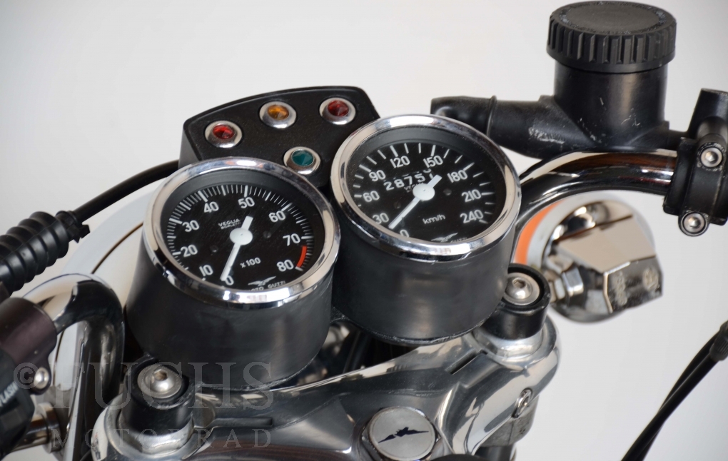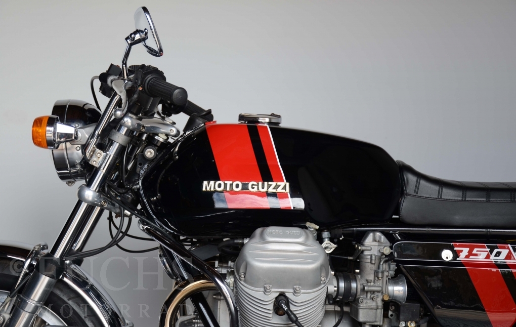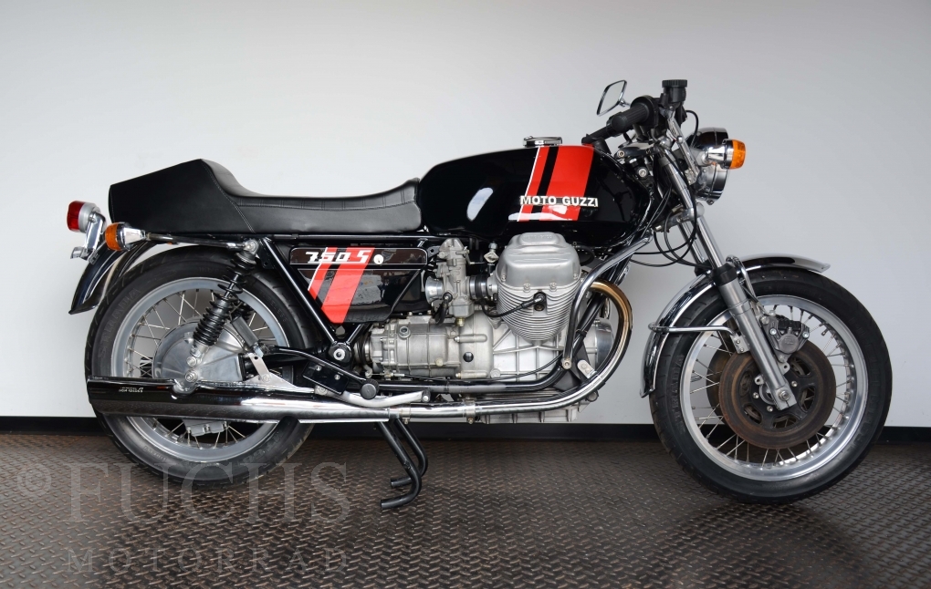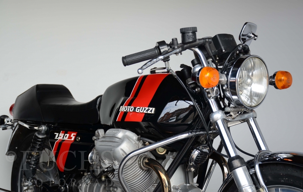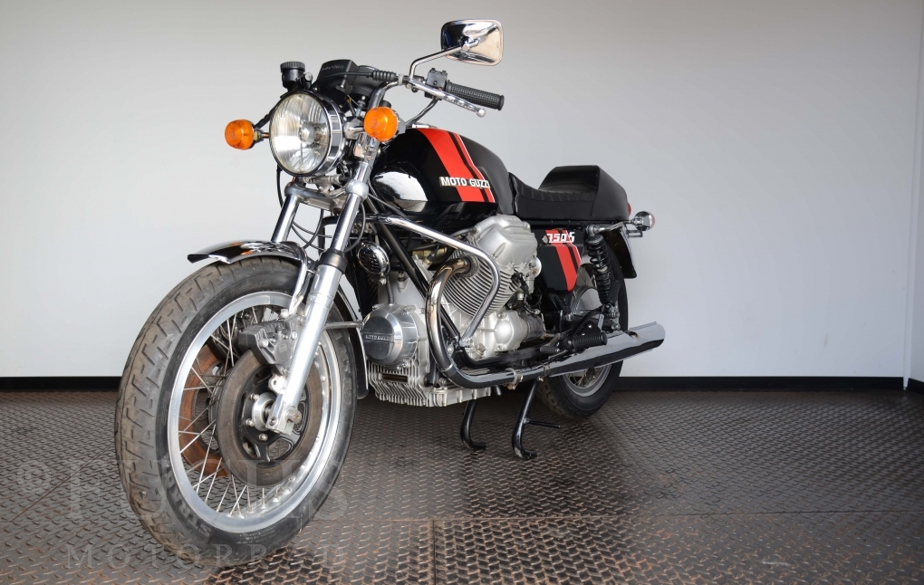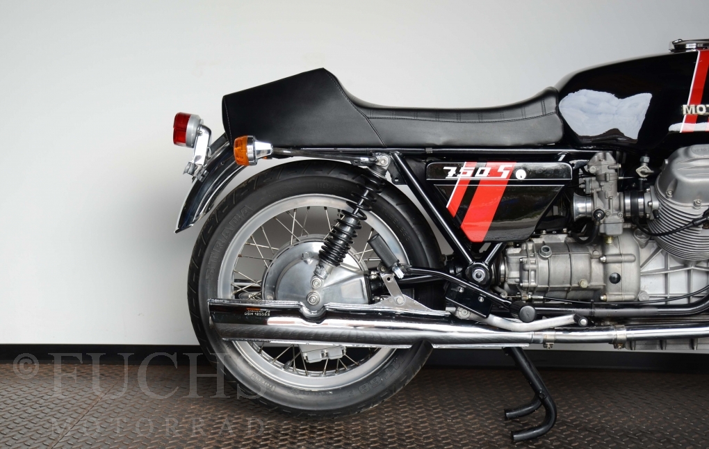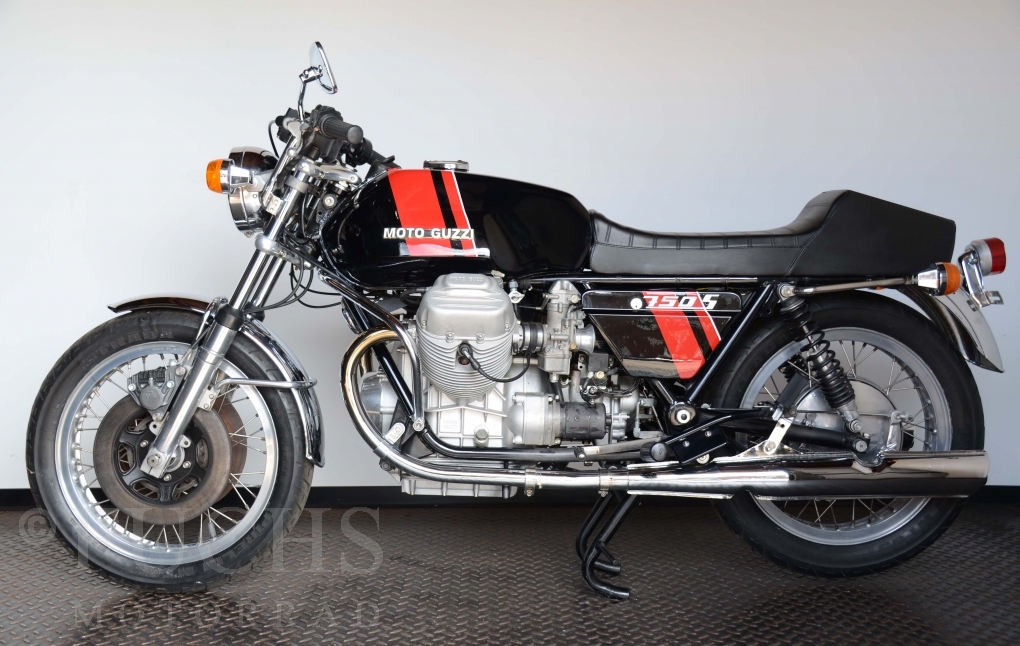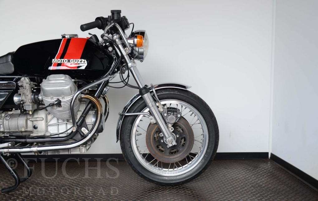 The V7 Sport 750 S was produced in 1974 and 1975. With a number of 1,300 motorbikes, this model has been one of the most sought-after collectors items for many years. As a superbike of the seventies, this Guzzi is not only popular with Guzzi collectors. The model is considered to be robust and hard-wearing. An attractive classic motorcycle that can also be a wise choice for long classic motorcycle tours.