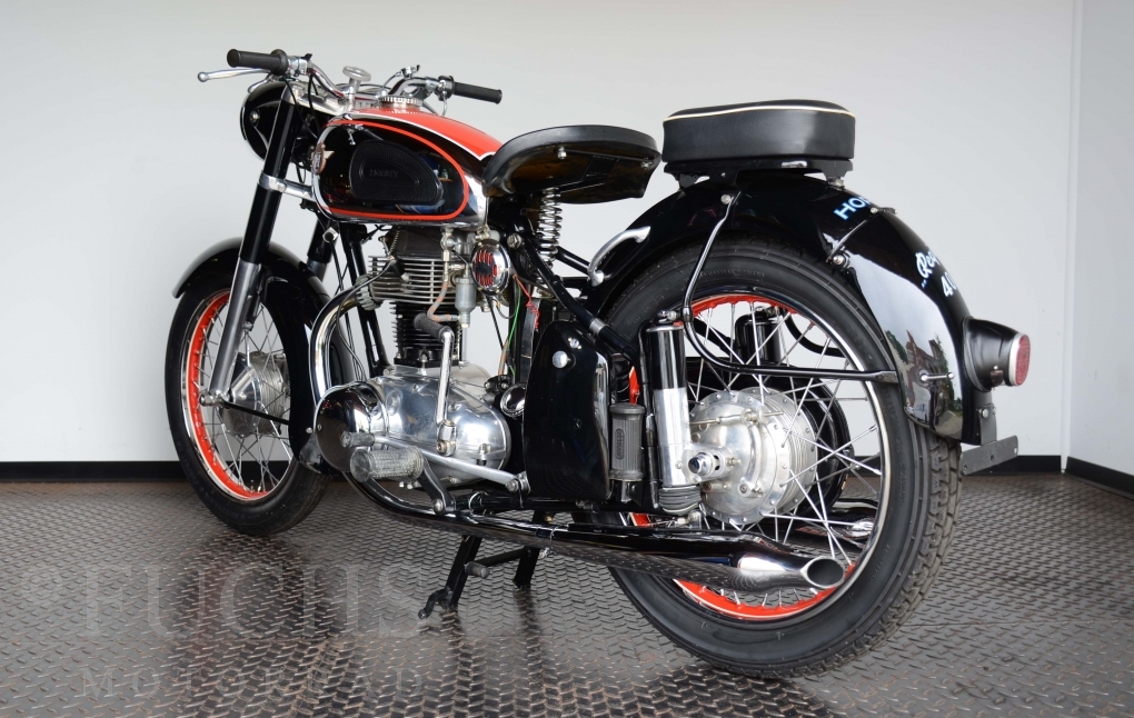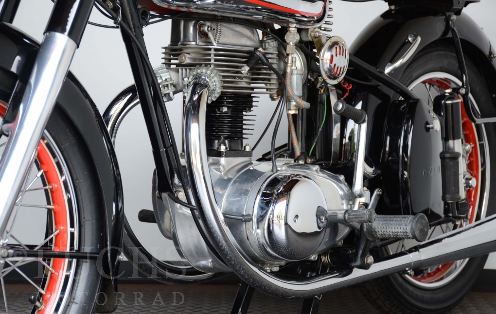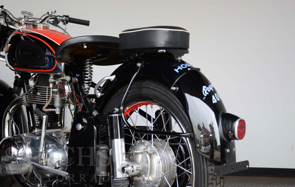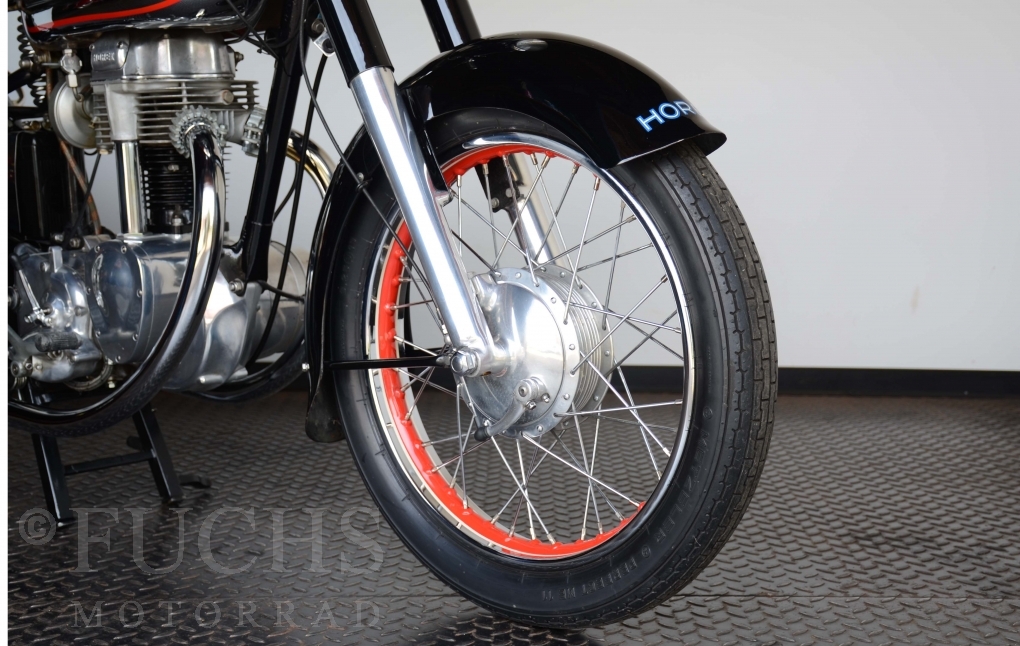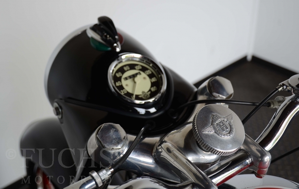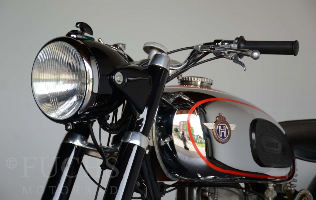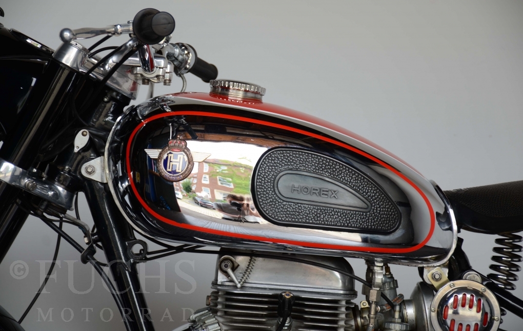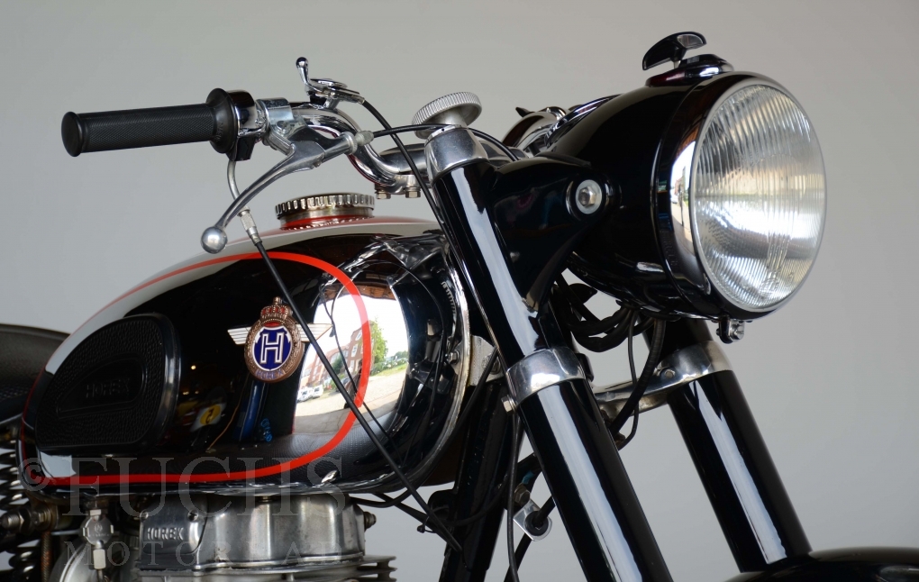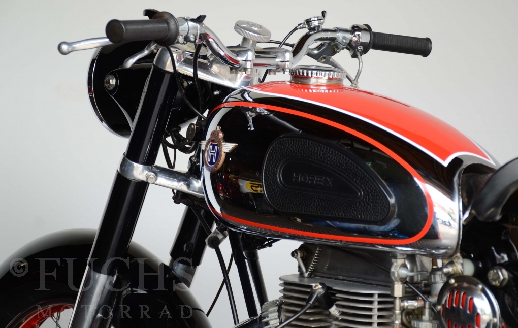 The Horex-Werke was founded in 1923. The company reached its heyday in the 30s and 50s. A Horex was synonymous with elegance, robustness and reliability. Our Regina was restored in a specialist workshop. Fortunately, the restoration could still be realised with original spare parts for the most part. Even though the restoration was carried out a few years ago, we can still offer the Horex in a high quality.