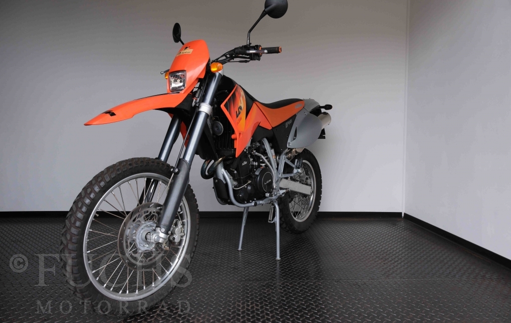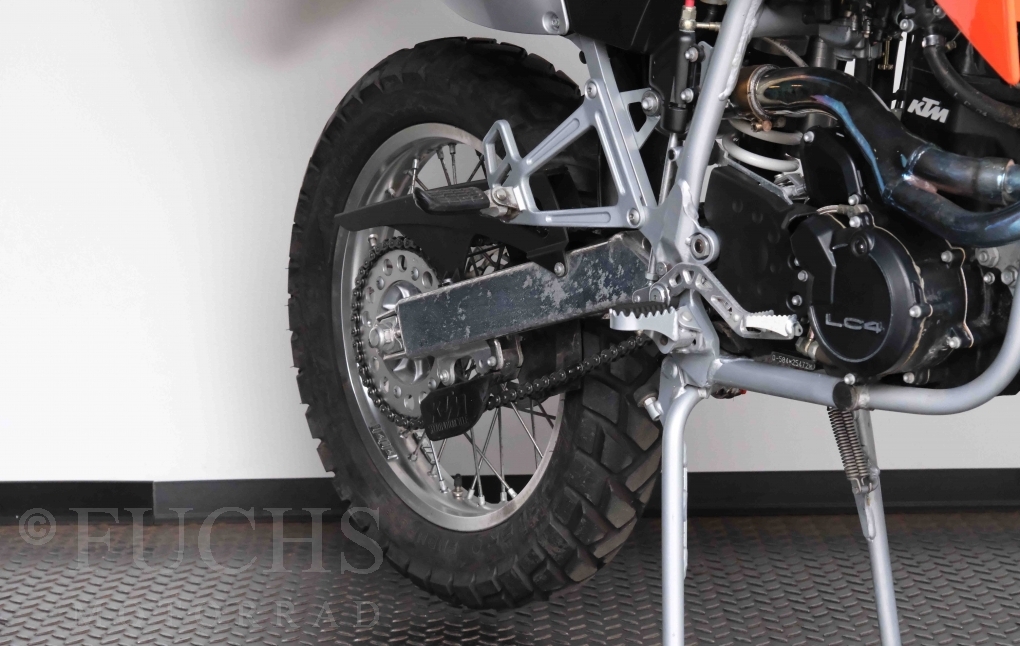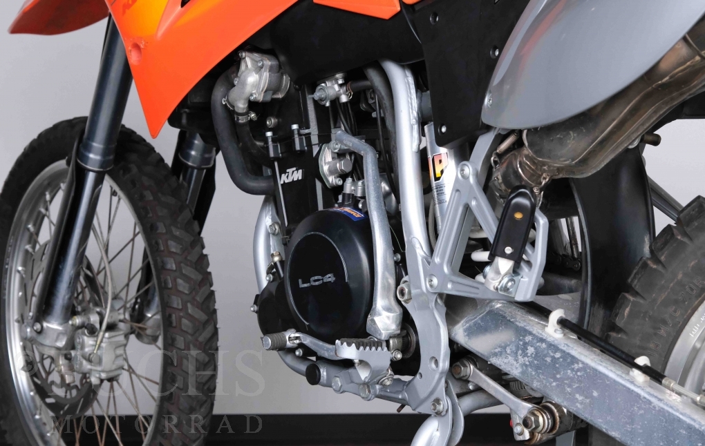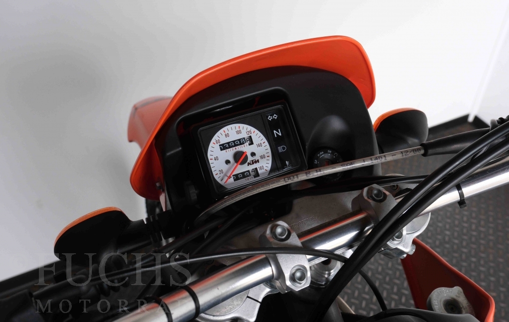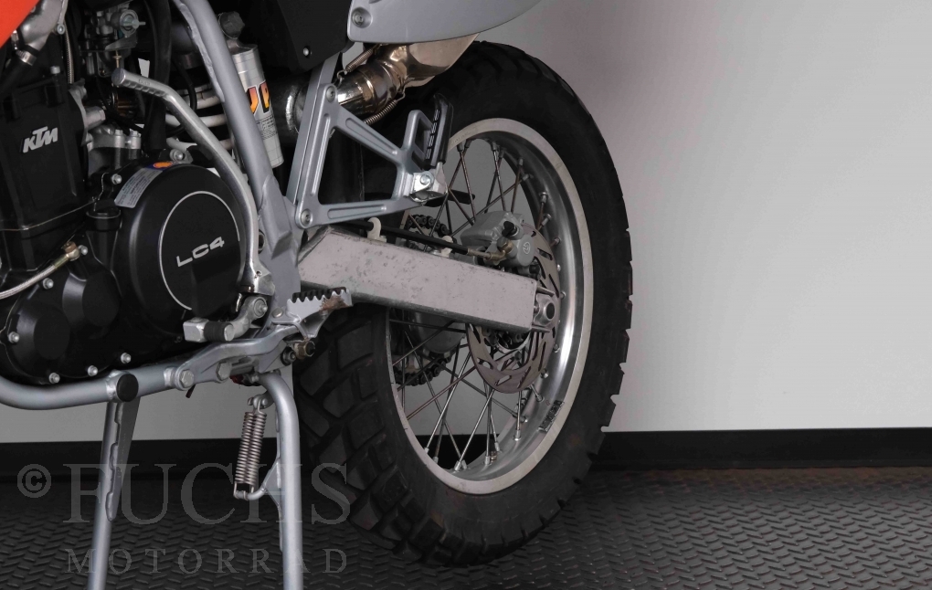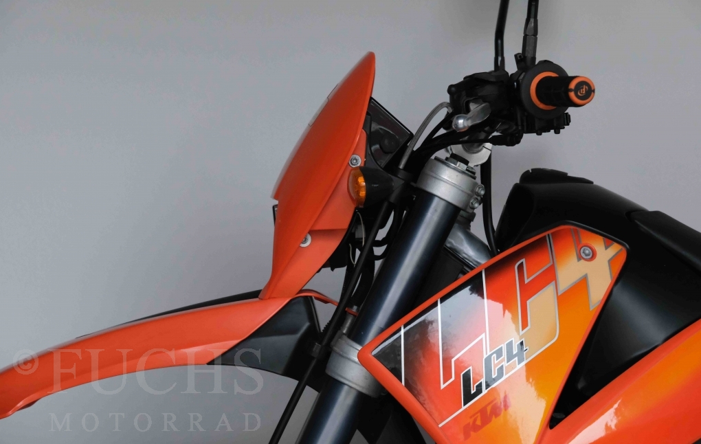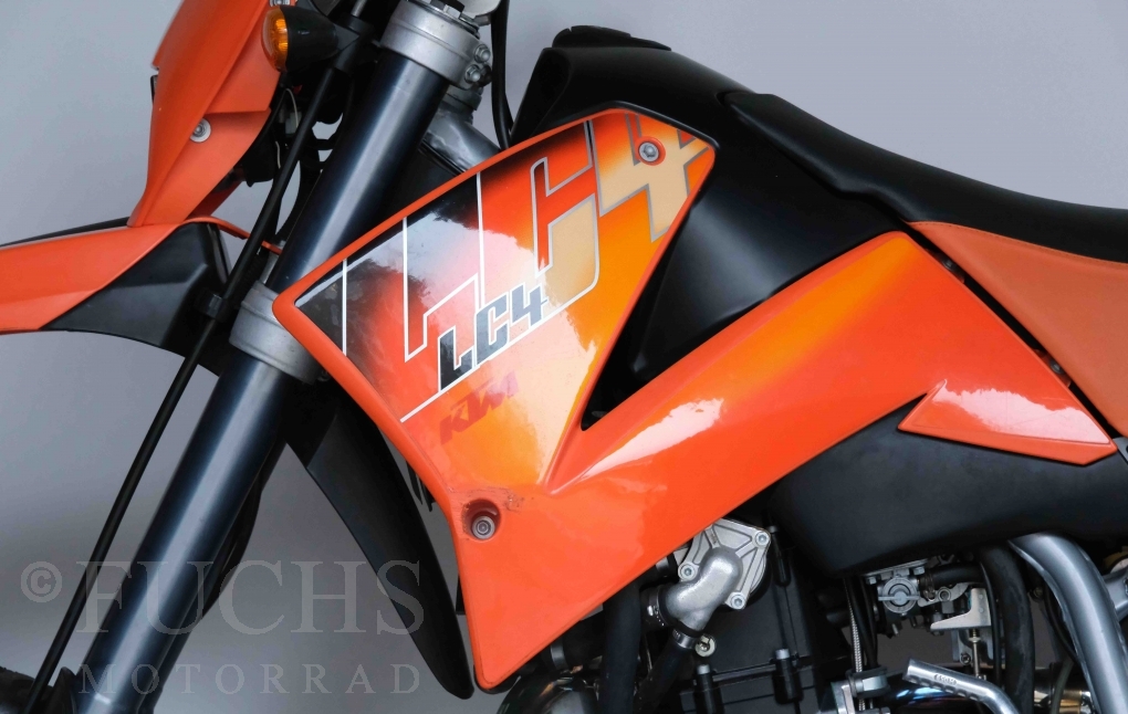 The KTM LC4 comes from a second owner and has only done 4,200 km. There are minimal signs of wear. The LC4 from the year is equipped with an electric starter. A German vehicle registration document is available.