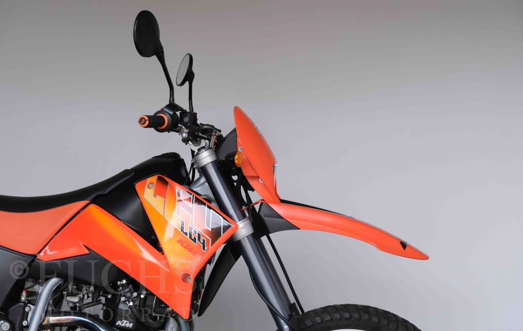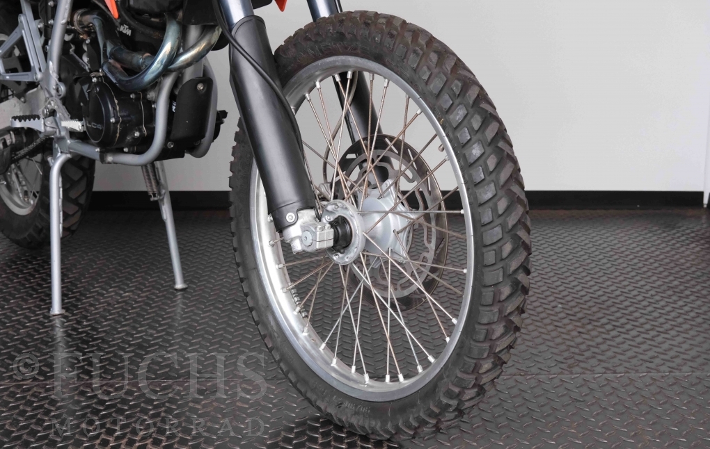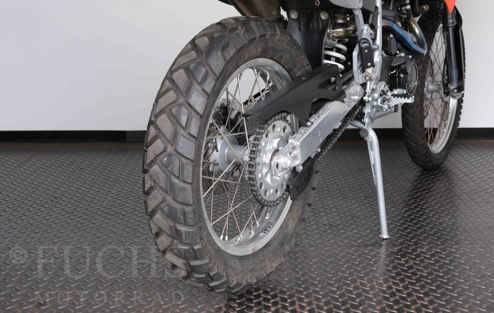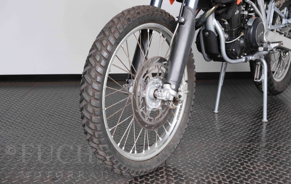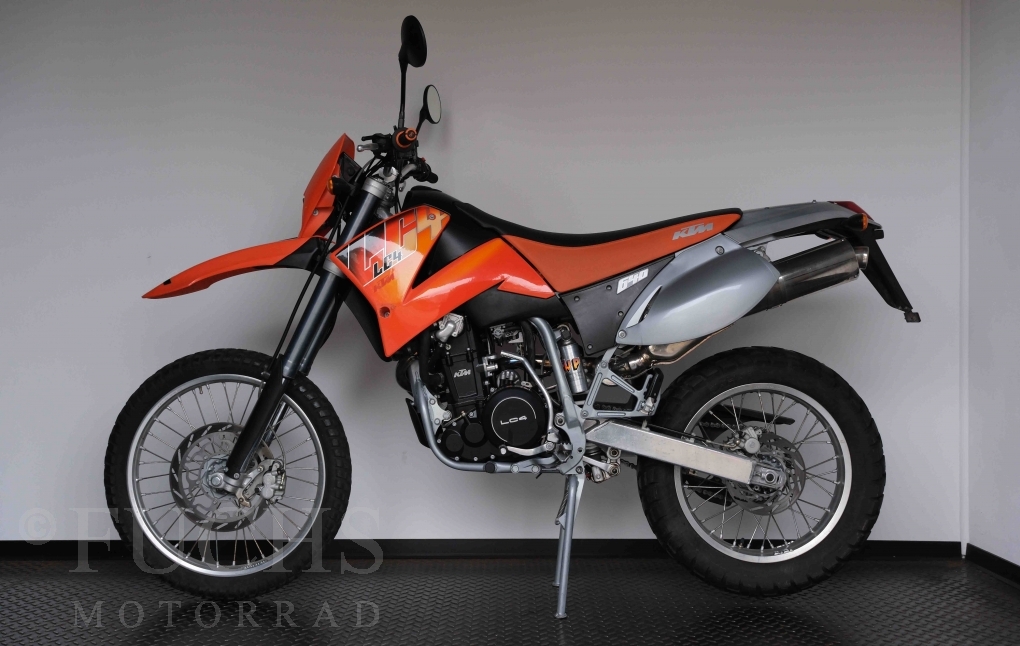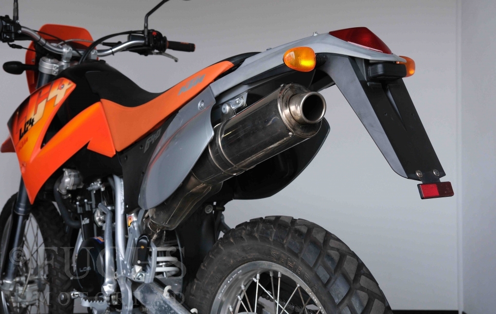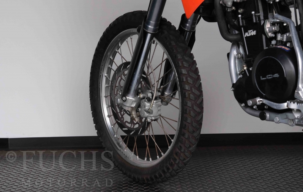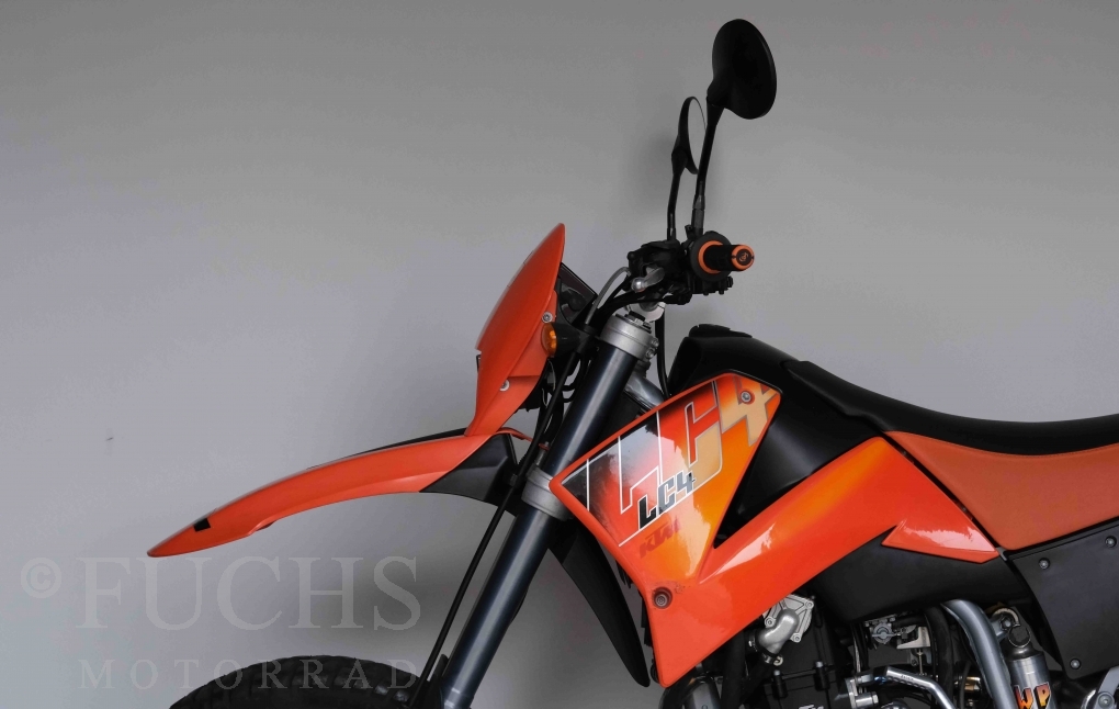 The KTM LC4 comes from a second owner and has only done 4,200 km. There are minimal signs of wear. The LC4 from the year is equipped with an electric starter. A German vehicle registration document is available.