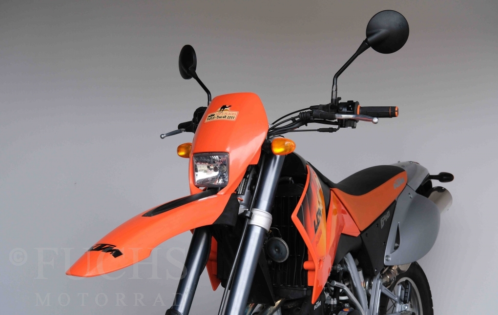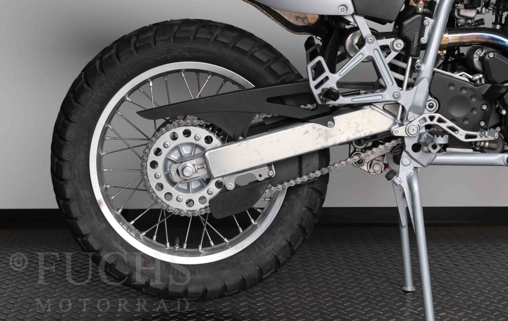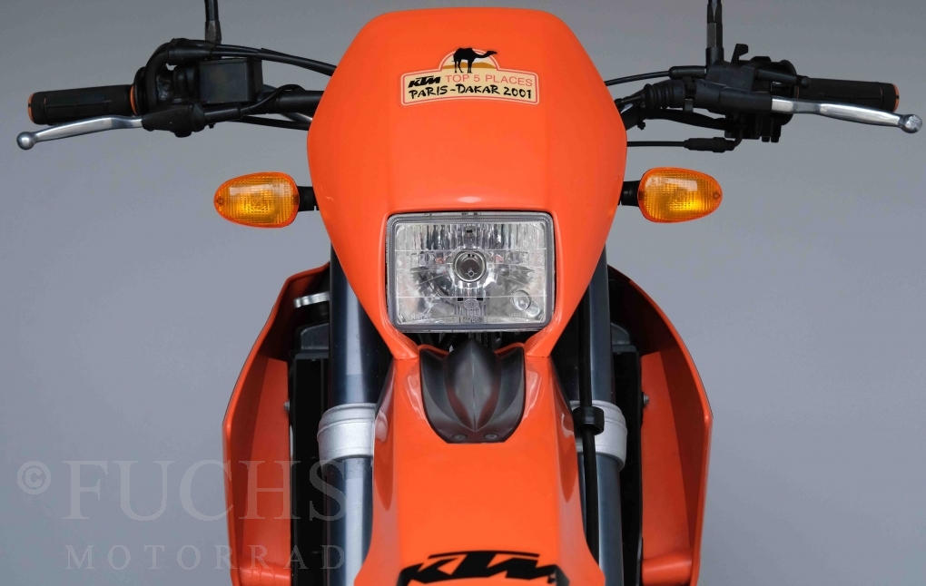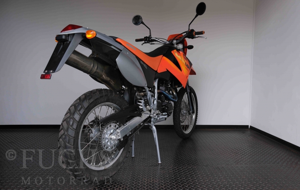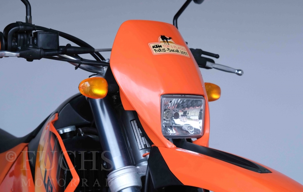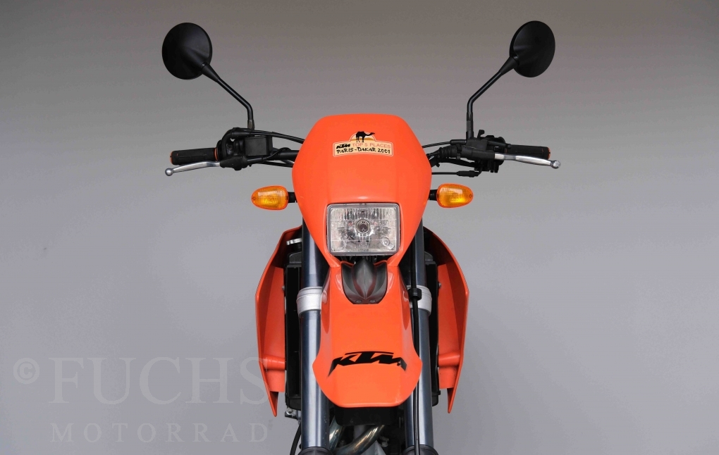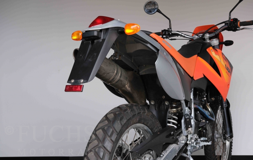 The KTM LC4 comes from a second owner and has only done 4,200 km. There are minimal signs of wear. The LC4 from the year is equipped with an electric starter. A German vehicle registration document is available.