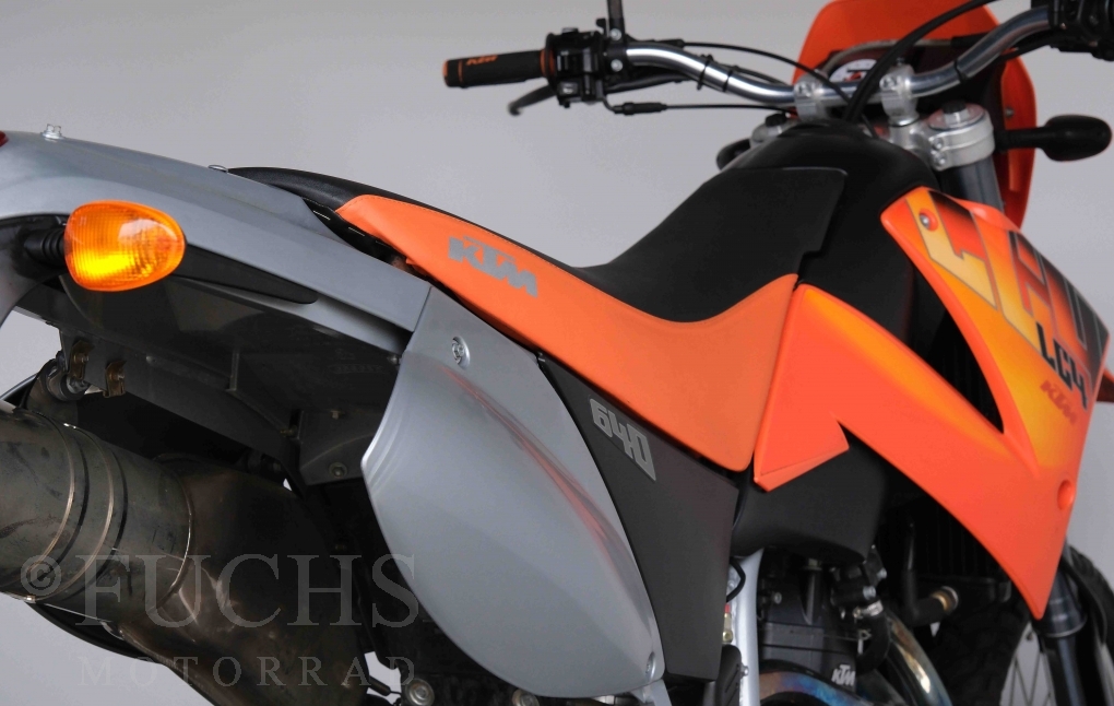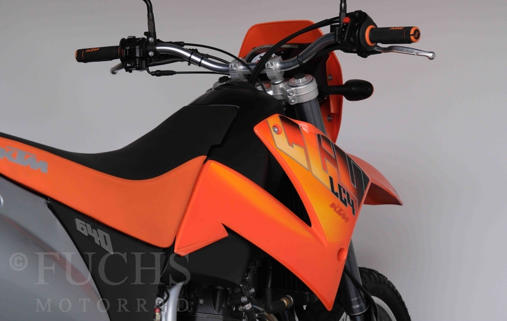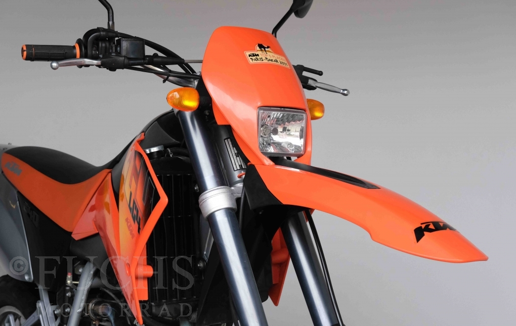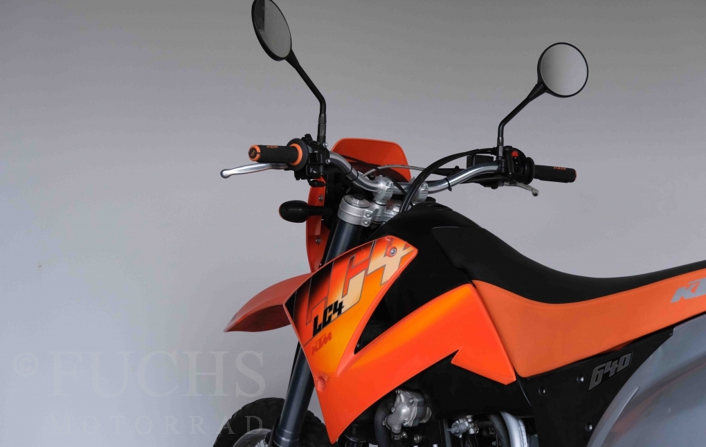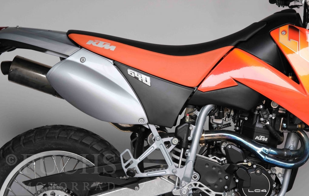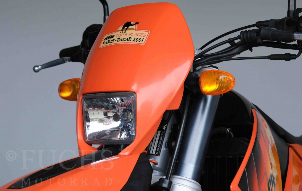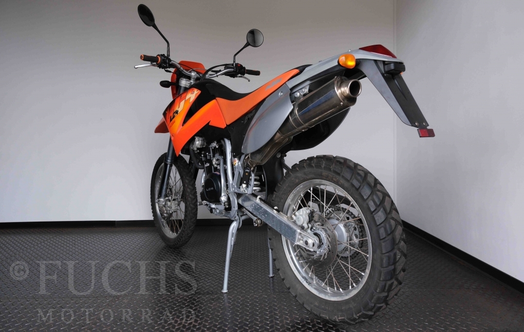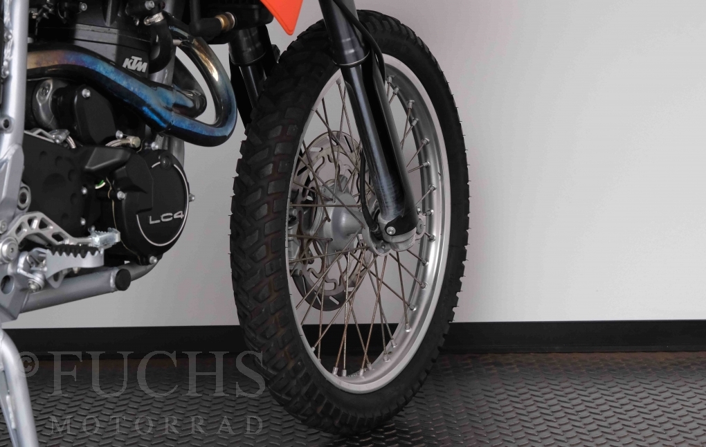 The KTM LC4 comes from a second owner and has only done 4,200 km. There are minimal signs of wear. The LC4 from the year is equipped with an electric starter. A German vehicle registration document is available.