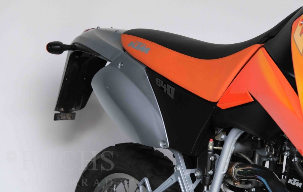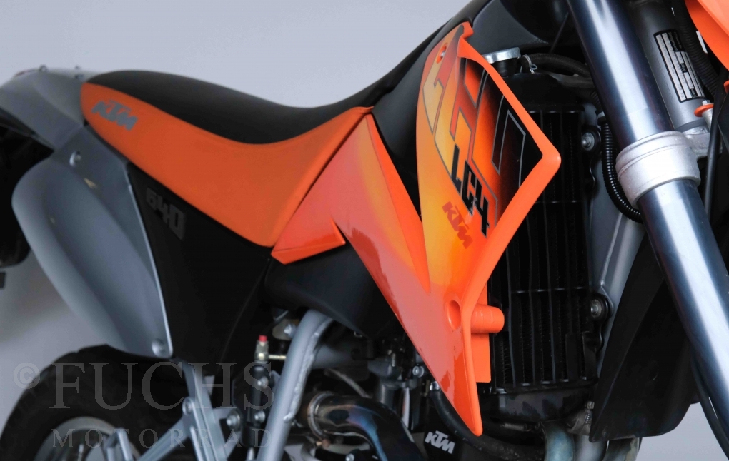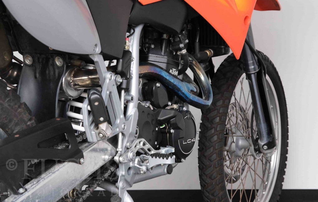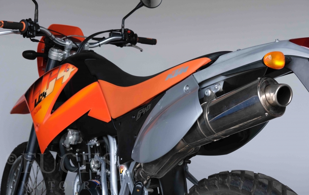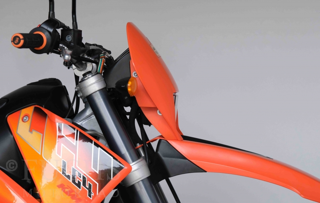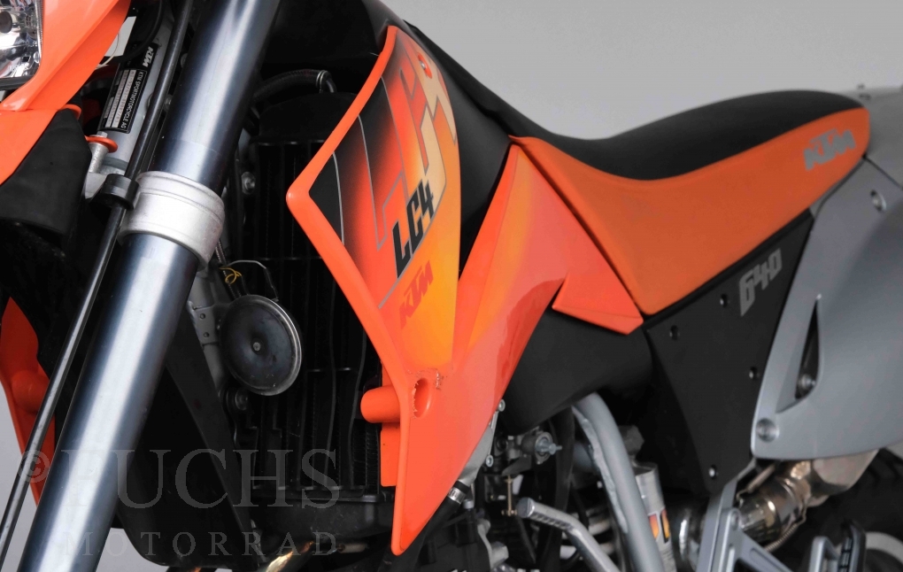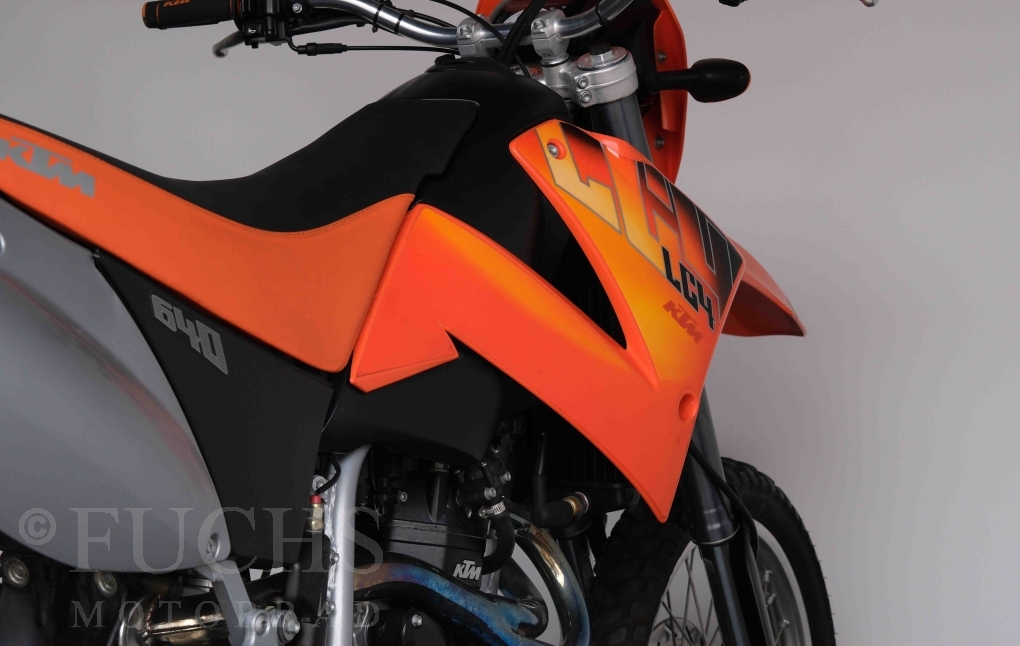 The KTM LC4 comes from a second owner and has only done 4,200 km. There are minimal signs of wear. The LC4 from the year is equipped with an electric starter. A German vehicle registration document is available.
