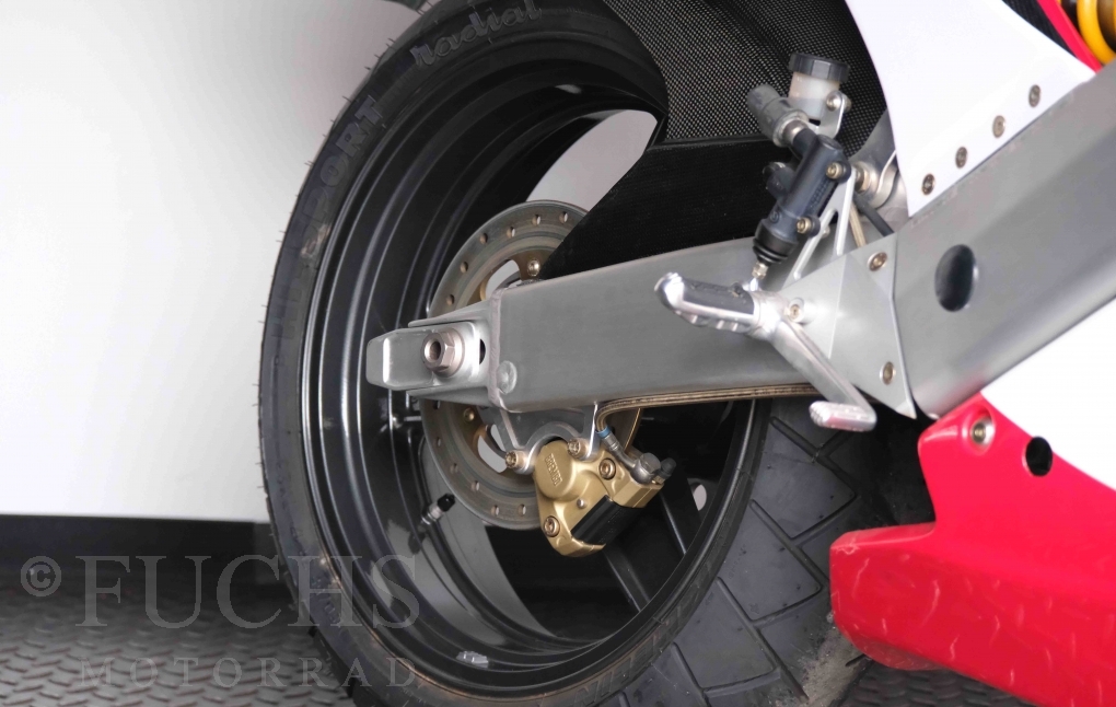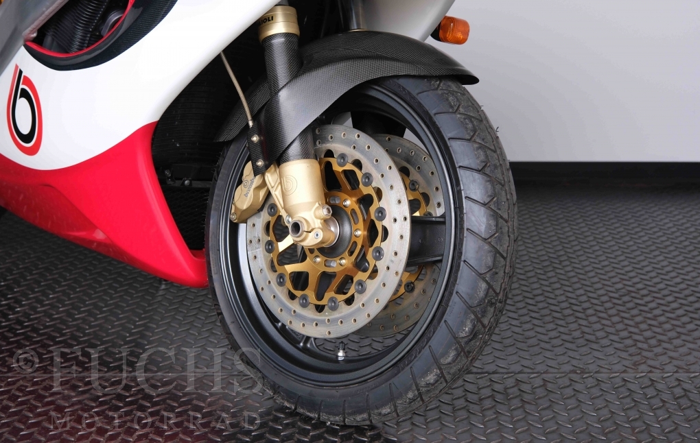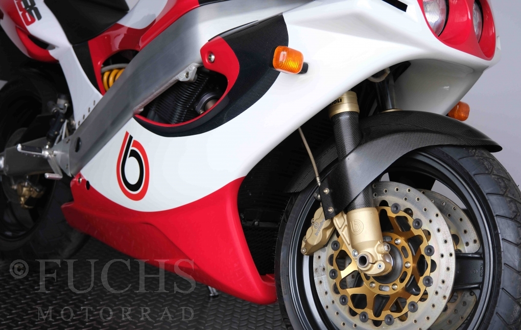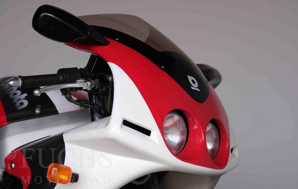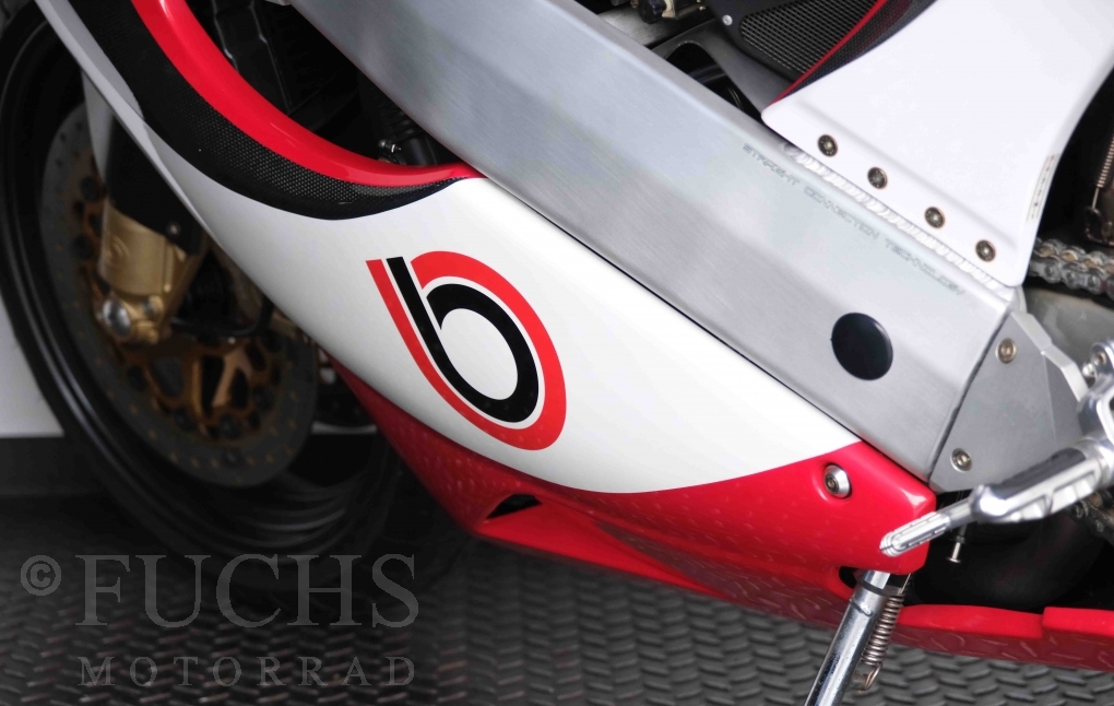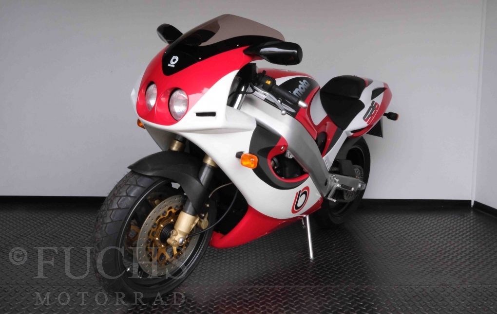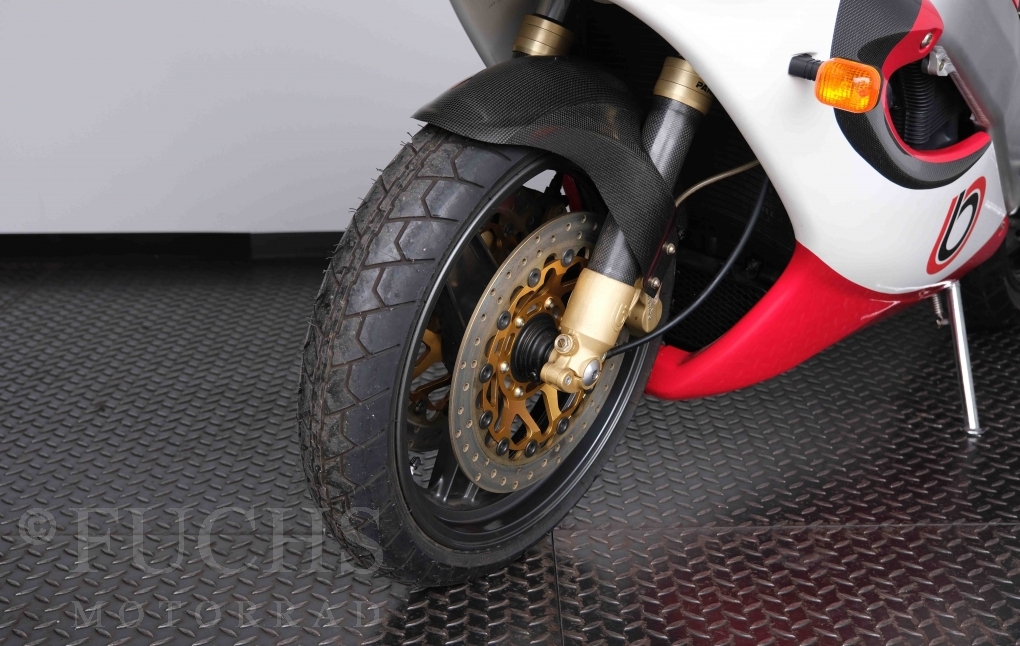 The Italian motorcycle manufacturer Bimota introduced the first Bimota to the world market in 1973. Despite all the ups and downs the company has faced, Bimota stands for sophisticated chassis technology, design and versatility. The Bimota SB6 we are offering cost 36,650 German Marks in 1994 and was produced in a quantity of 1,144. This makes the SB6 one of the most successful Bimota models. It is equipped with the Suzuki GSX-R 1100 W engine with 156 hp. Our Bimota SB6 comes from a collection and has so far only been pushed and not ridden.