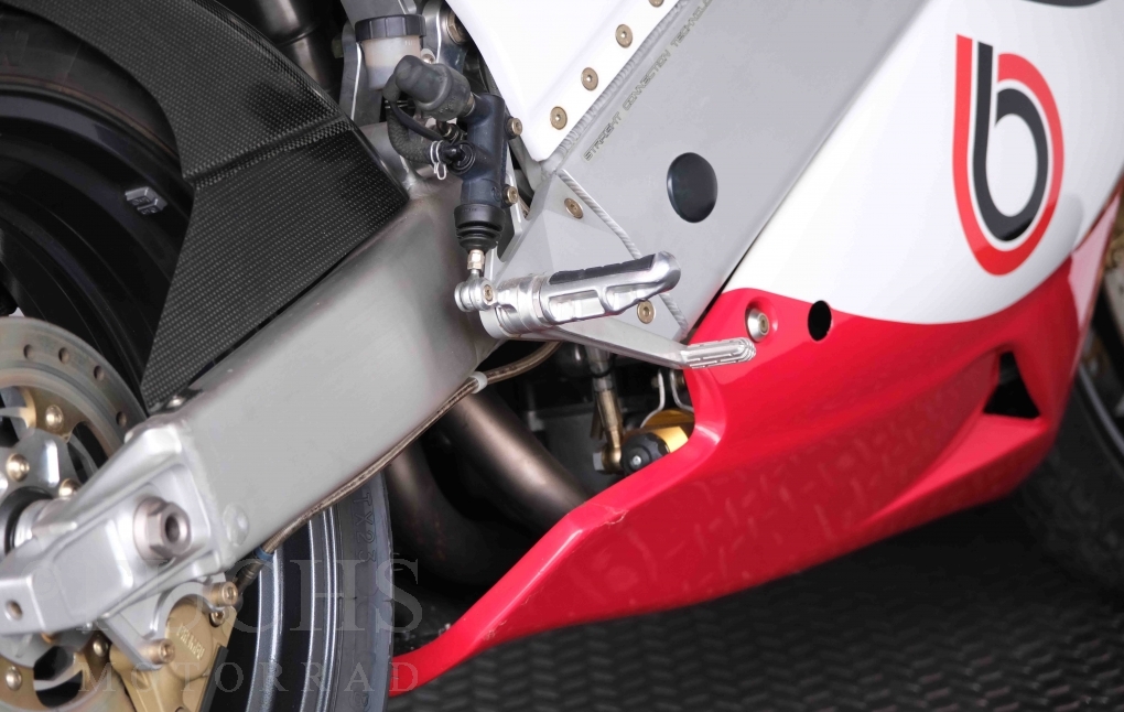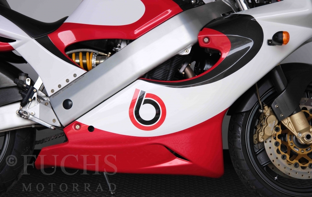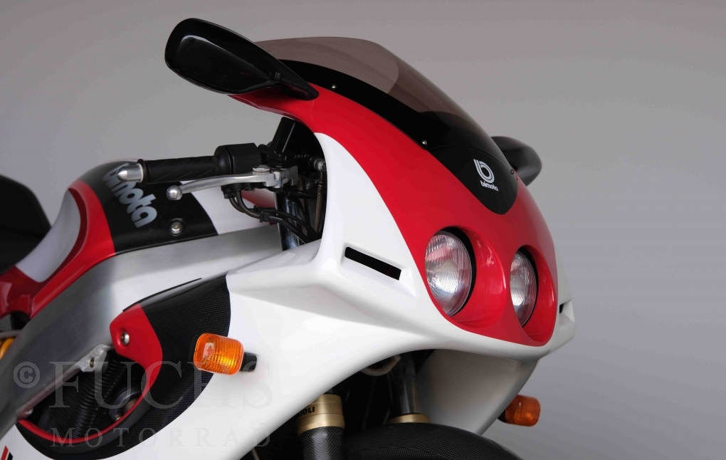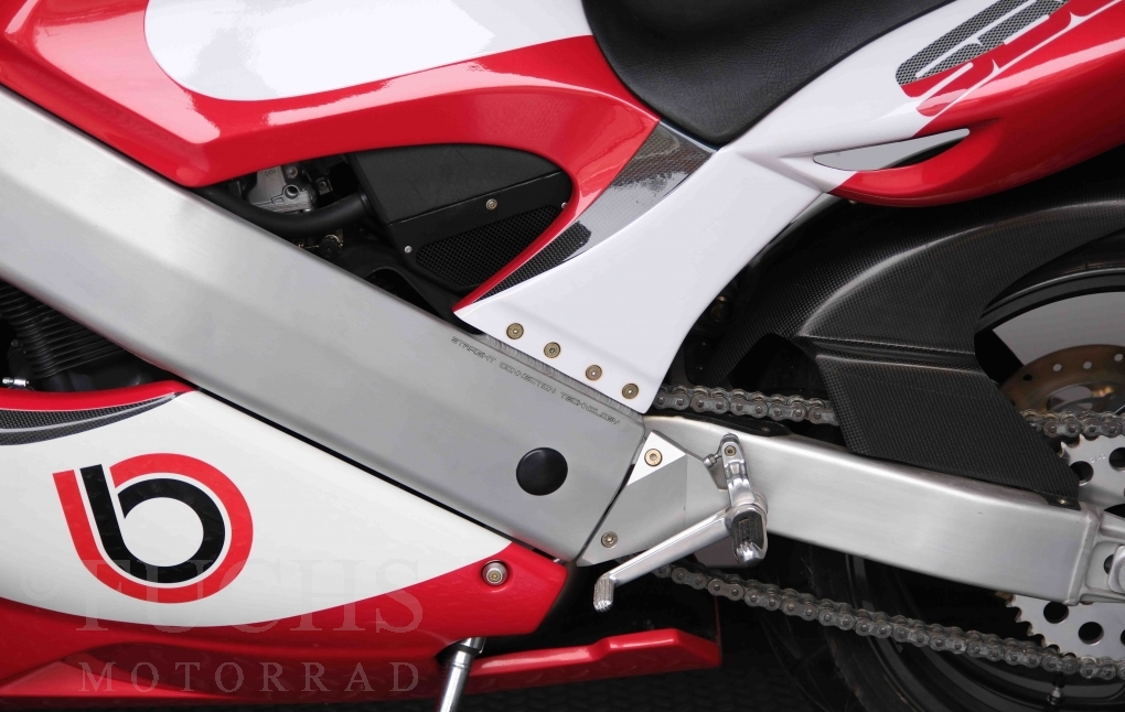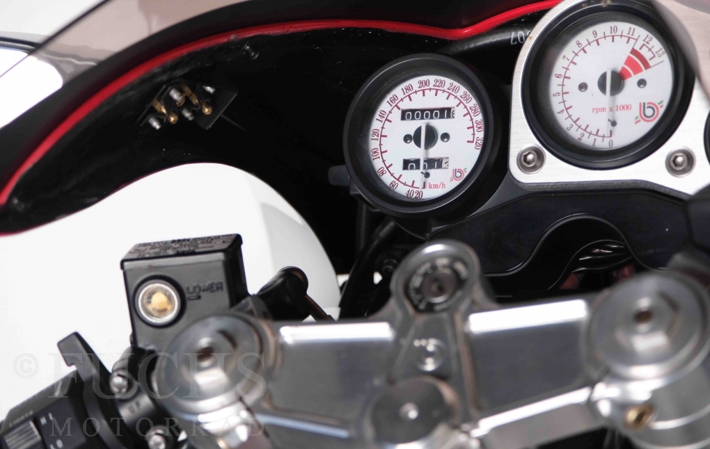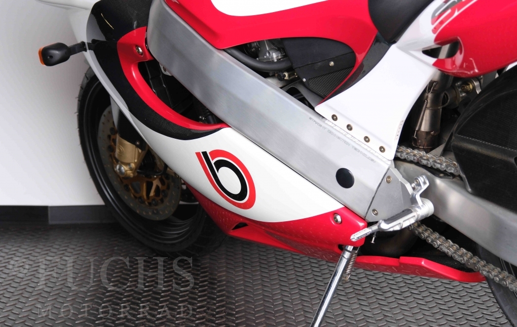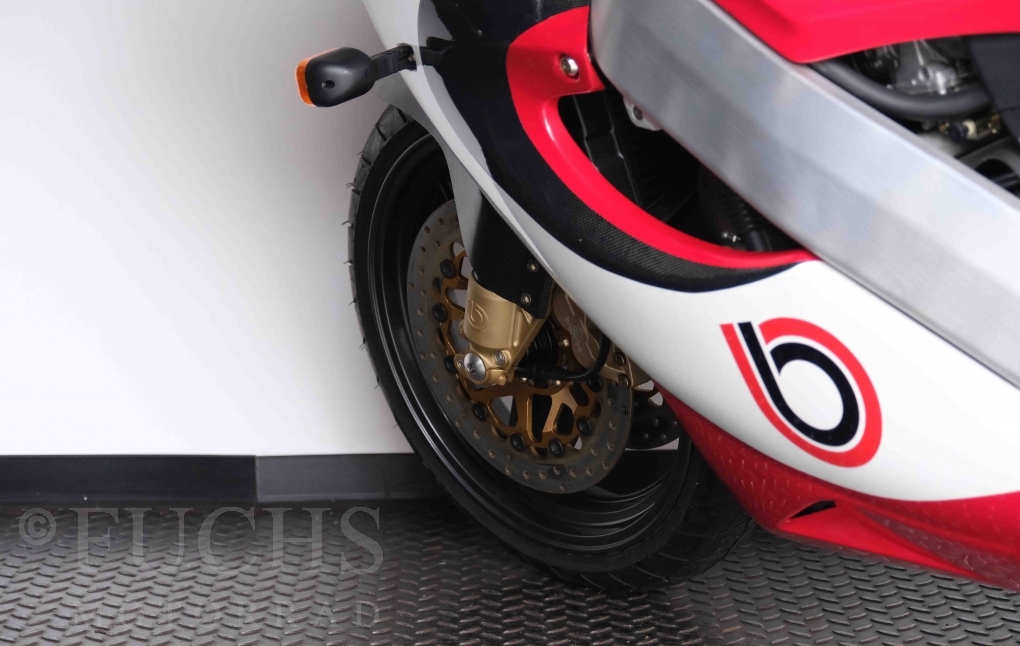 The Italian motorcycle manufacturer Bimota introduced the first Bimota to the world market in 1973. Despite all the ups and downs the company has faced, Bimota stands for sophisticated chassis technology, design and versatility. The Bimota SB6 we are offering cost 36,650 German Marks in 1994 and was produced in a quantity of 1,144. This makes the SB6 one of the most successful Bimota models. It is equipped with the Suzuki GSX-R 1100 W engine with 156 hp. Our Bimota SB6 comes from a collection and has so far only been pushed and not ridden.