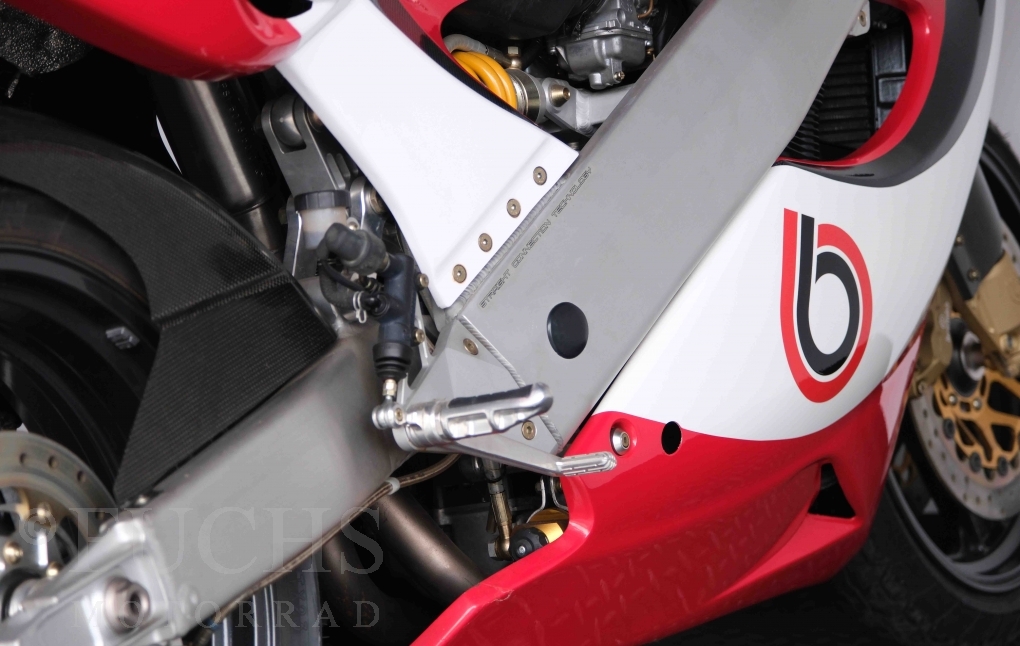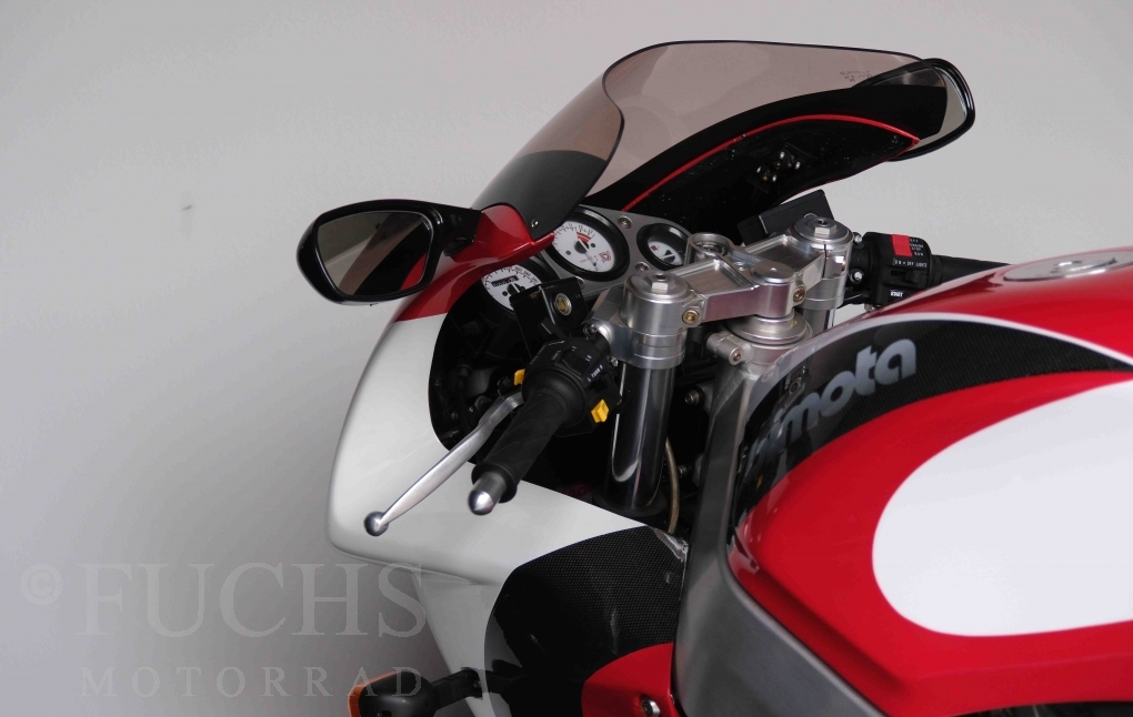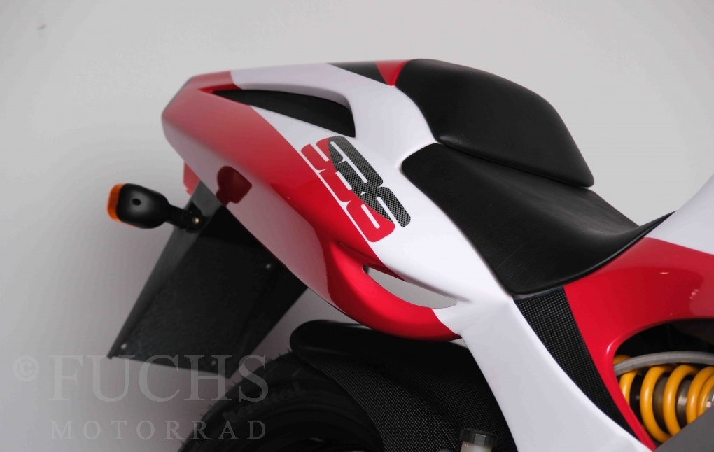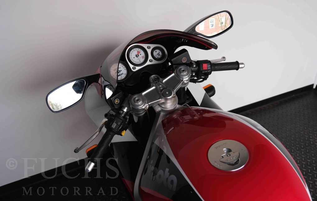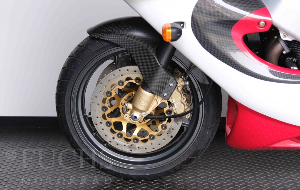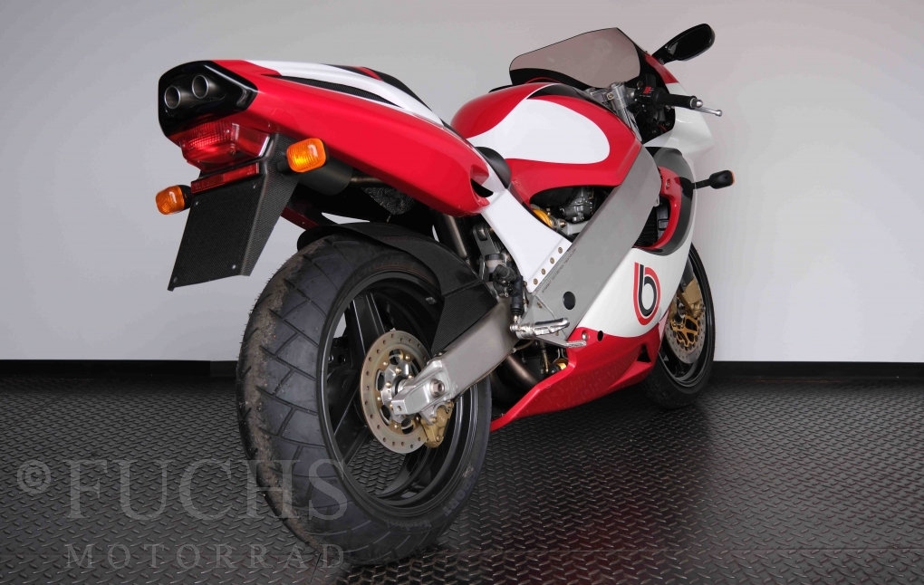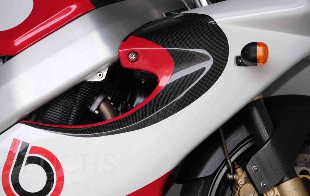 The Italian motorcycle manufacturer Bimota introduced the first Bimota to the world market in 1973. Despite all the ups and downs the company has faced, Bimota stands for sophisticated chassis technology, design and versatility. The Bimota SB6 we are offering cost 36,650 German Marks in 1994 and was produced in a quantity of 1,144. This makes the SB6 one of the most successful Bimota models. It is equipped with the Suzuki GSX-R 1100 W engine with 156 hp. Our Bimota SB6 comes from a collection and has so far only been pushed and not ridden.