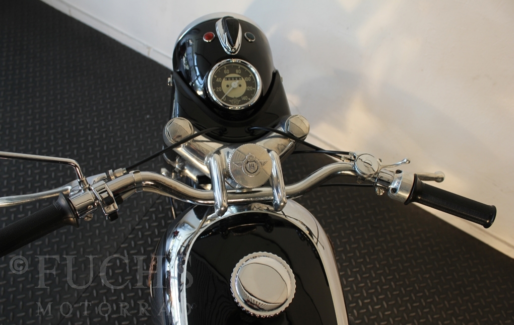 The Imperator was considered the Horex sports machine par excellence and was an alternative to the BMW motorcycles.We offer a restored machine with telescope forks. The construction details were in the 50th very high. The restoration was made by T. Putterer, Vohburg After he made it, the machine has been running 55 km. Everything works. We have german registration papers.