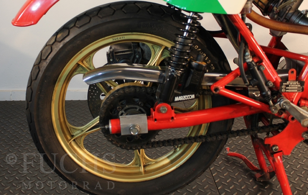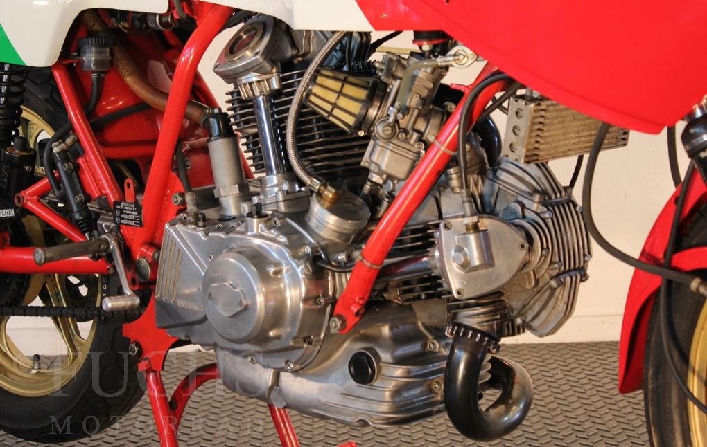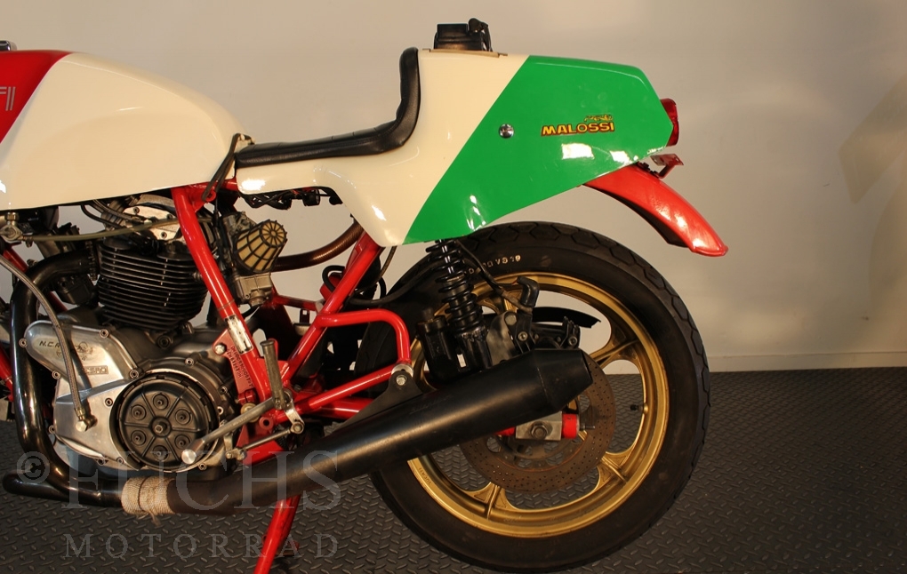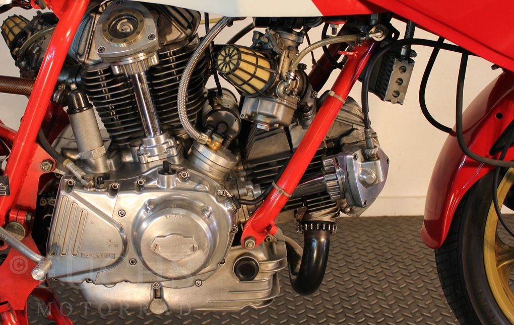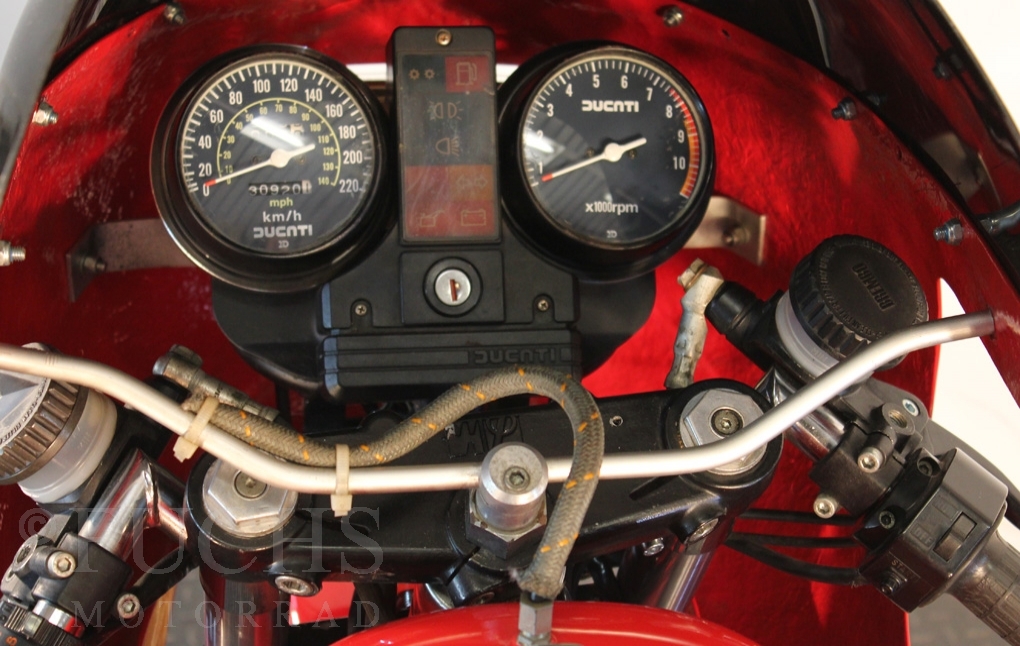 The special feature of this Ducati is found primarily on the engine. Already the standard engine was one of the last and best classic Bevel Ducati engines. With our 900 SS, the engine was then further enhanced expertly with Mahle pistons, oil circuit remodeling, oil cooler and Head Porting.