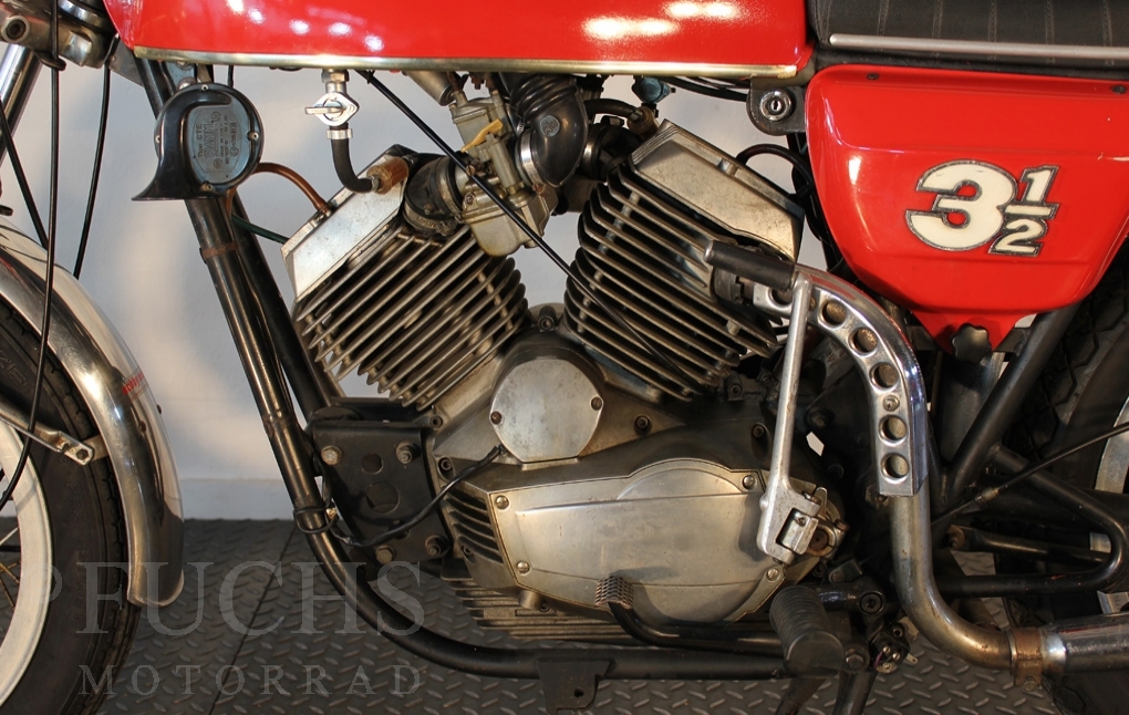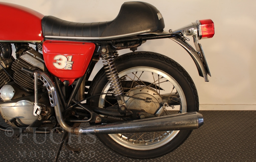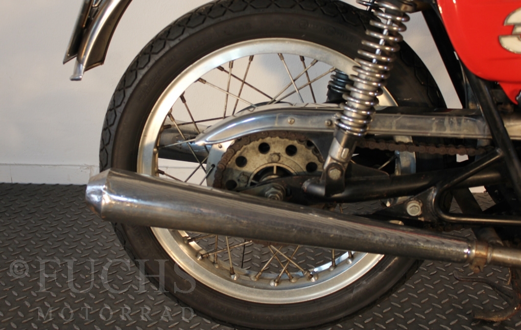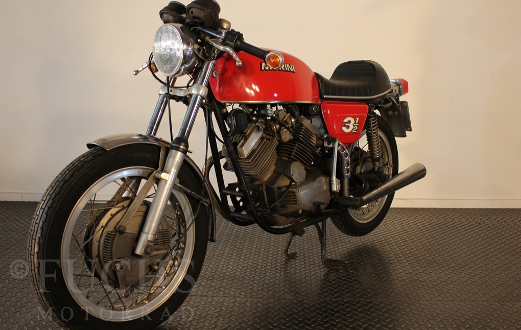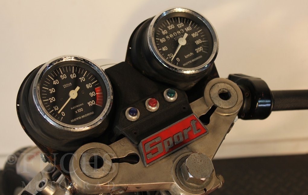 The Morini is ready to use, because the engine runs well. The circuit works. The electrical system is in order. Frame, exhaust, rims and spokes, motor casing wear or are have slightly corroded. The paint kit is repainted in medium quality. Engine has the code: S
