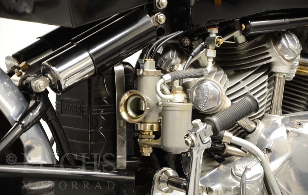 This rapide looks like a dream. We have a lot of documents about the restoration. The last owner want to have a Vincent for riding. For example this Rapide has a better clutch for easy handling. We have the dating certificate from the vincent owners club.