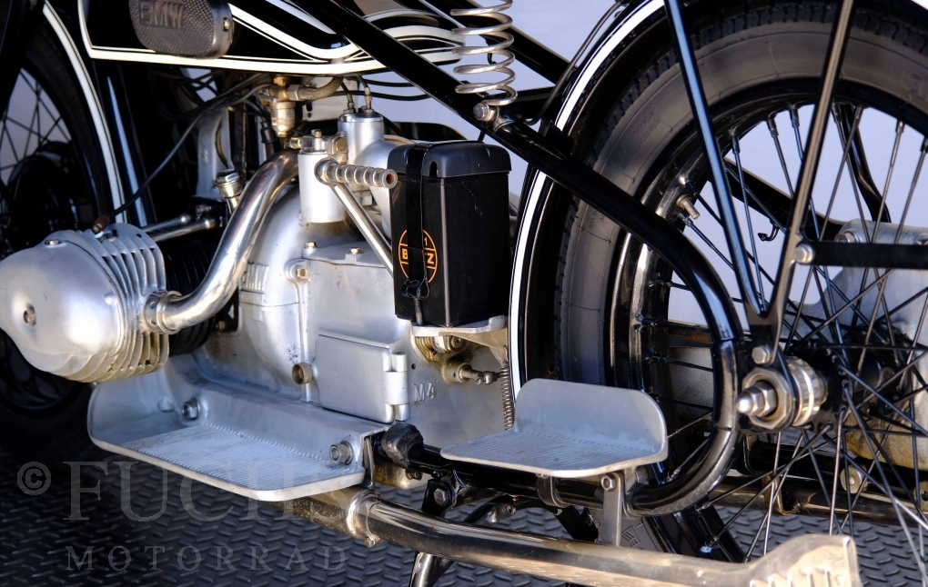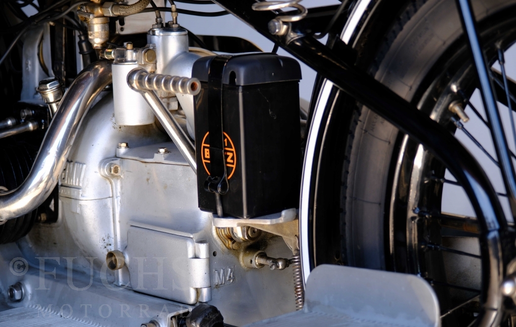 Diese R 63 haben wir aus einem Museum erhalten. Die BMW stammt aus dem Jahr 1929. Herzstück der R 63 ist der M60SI-Motor. Auch diese Vorkriegs-BMW verfügte bereits über eine Druckumlaufschmierung. Die Konkurrenz setzte zu dieser Zeit meist noch auf eine Verlustschmierung, die vom Fahrer geregelt werden musste, da das Öl entweder ausgeschieden oder verbrannt wurde.