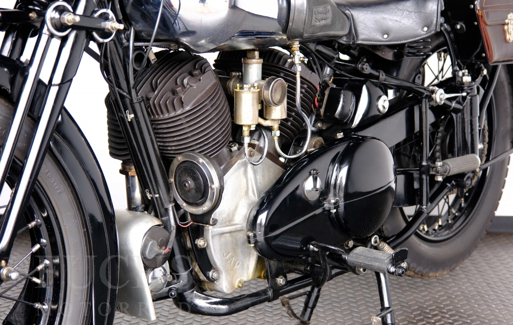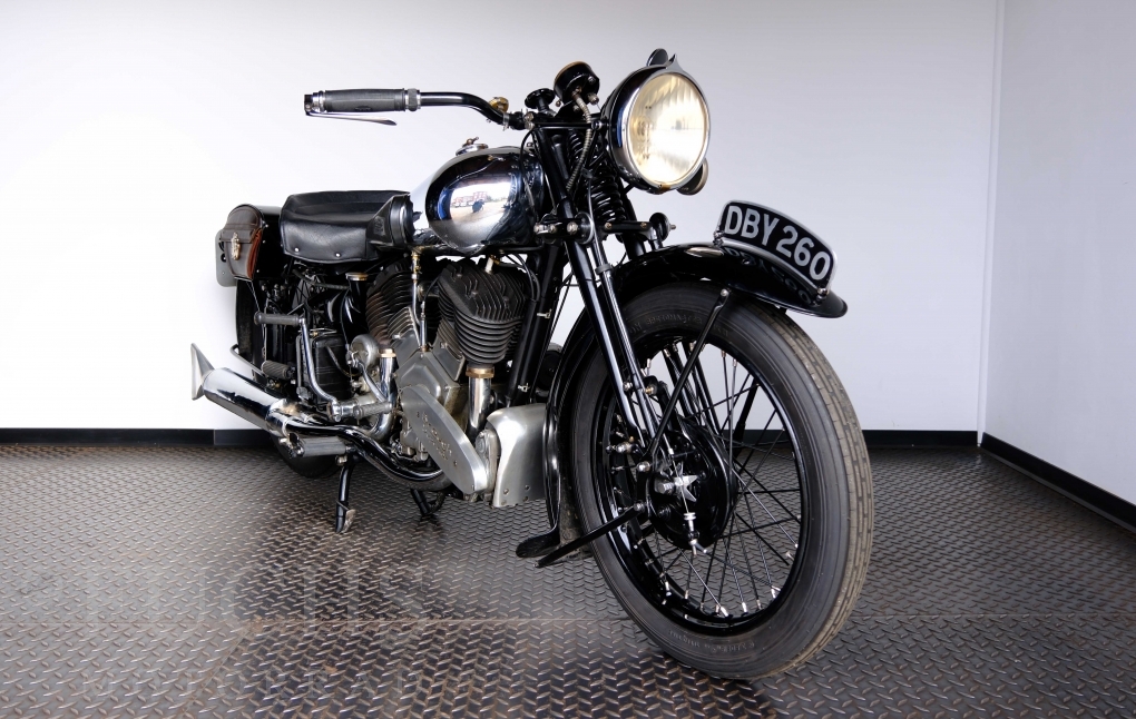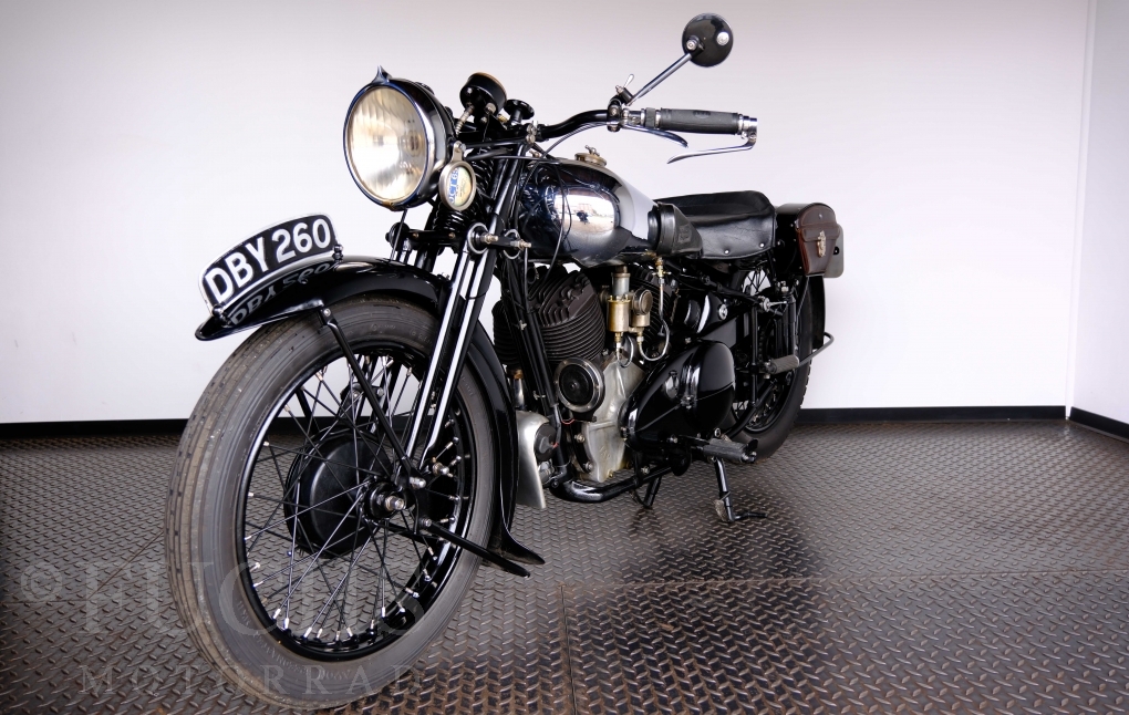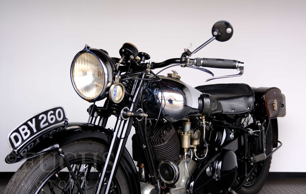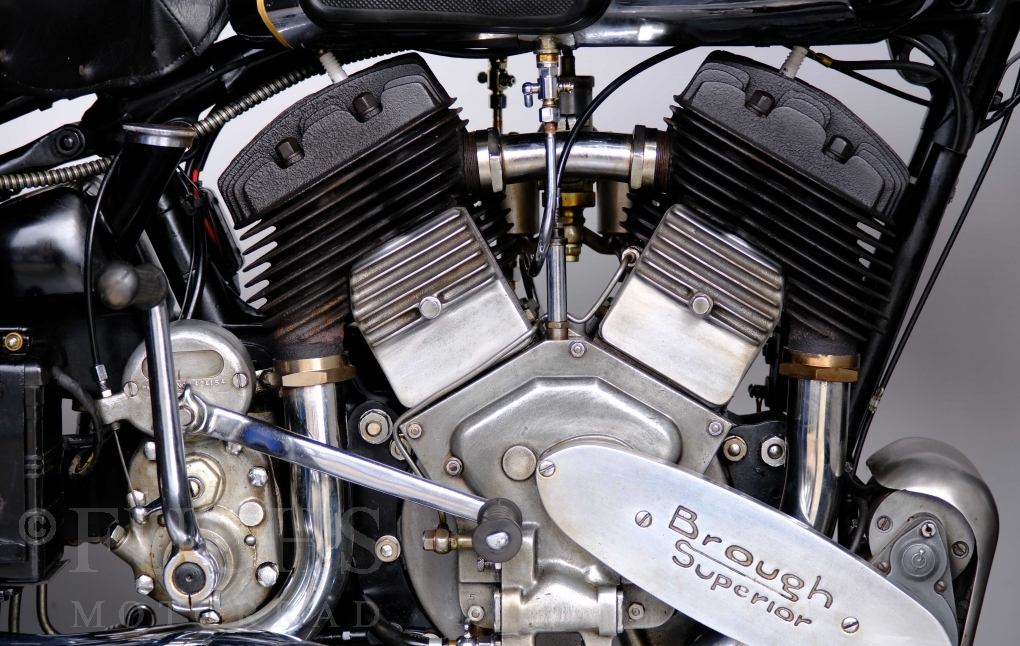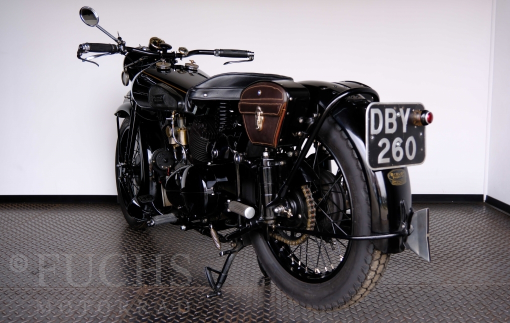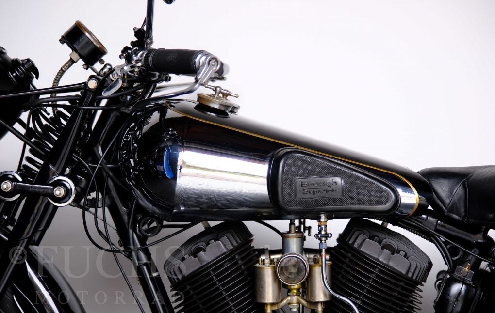 In 1938, Brough Superior completed the development of the plunger frame, and our 11-50 is one of the first motorcycles to have been delivered with this suspension system. A maximum of 10 Brough 11-50s were ever built with plunger suspension. The first-class quality of this Brough is complemented by a full restoration of the chassis and engine. A glance at the works record card confirms that we are dealing with matching numbers. This first-class collector’s item has been admired and awarded prizes at various events in recent years. We will deliver the Brough Superior ready to ride. We have german registration papers.