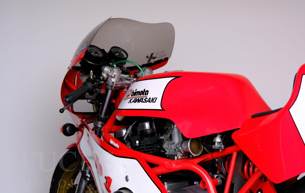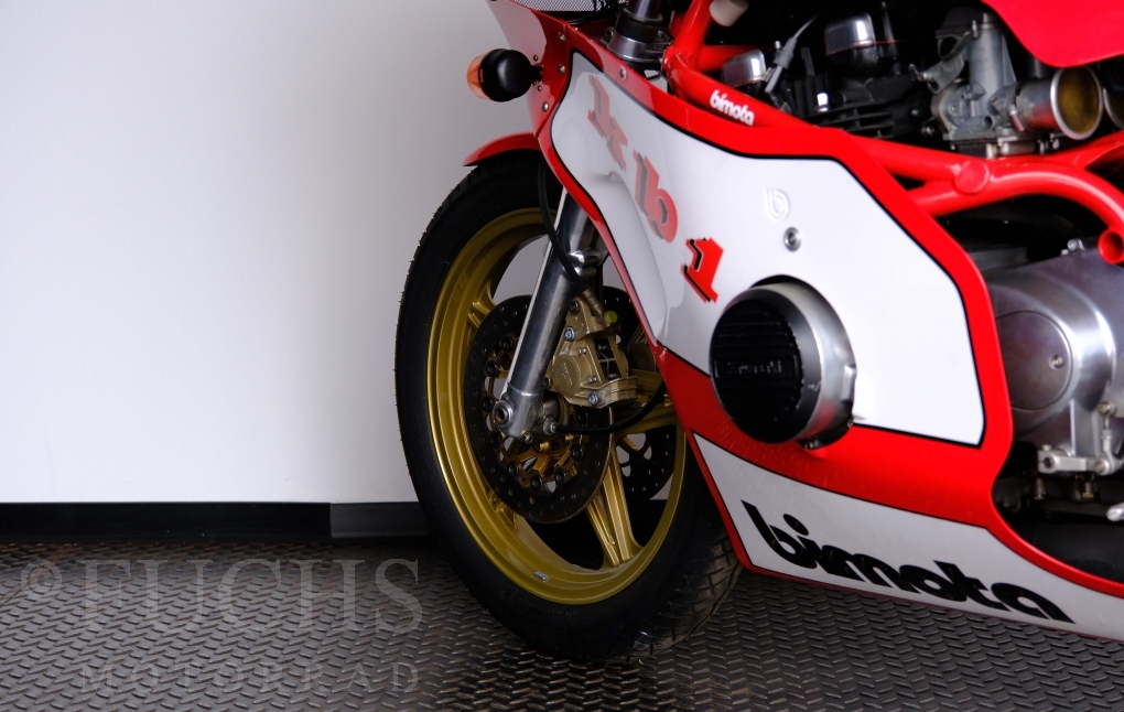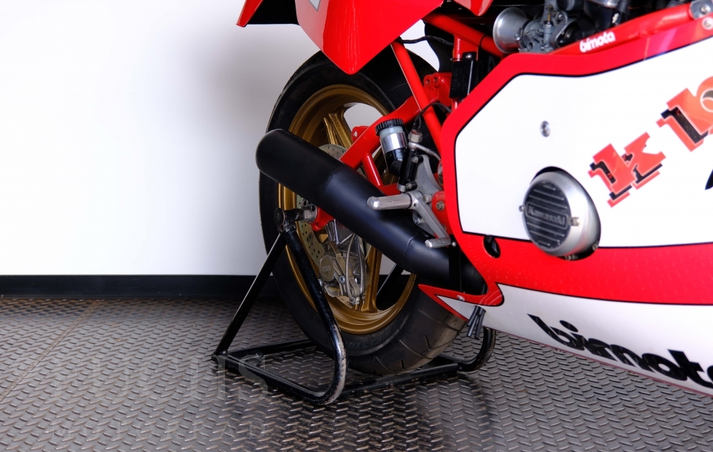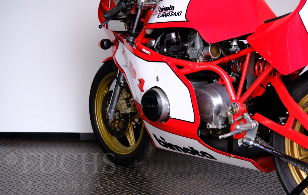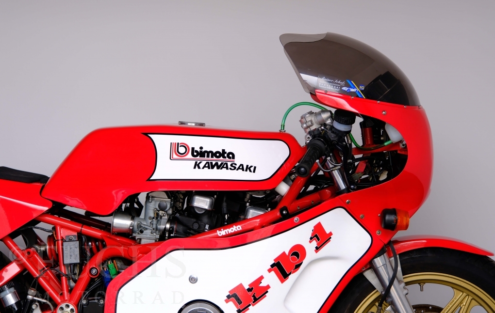 The Bimota KB1 has been one of the most sought-after collectors items produced in Rimini for years. The KB1 was manufactured between 1978 and 1982. Bimotas KB1 was a huge success, and not just for fans of the Kawasaki Z900 and Z1000. The design of the KB1 was, and still is, simply attractive. We are able to present our KB1 in a very fine original condition. The bike underwent a full service in April 2026.
