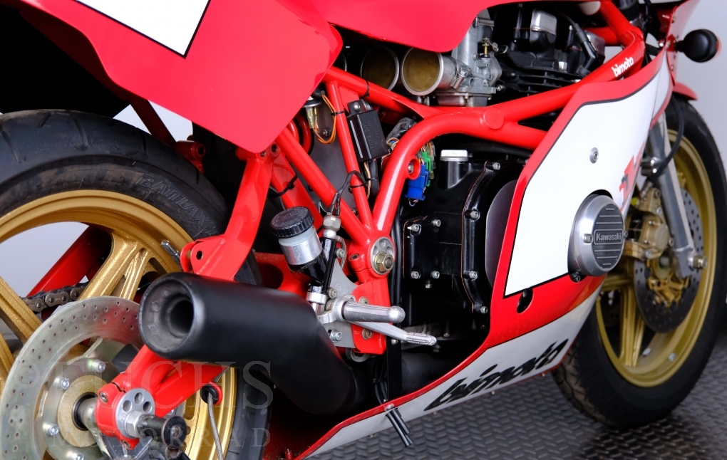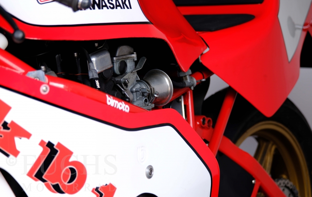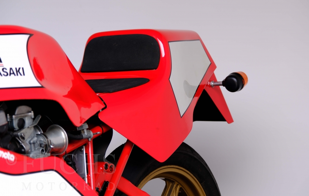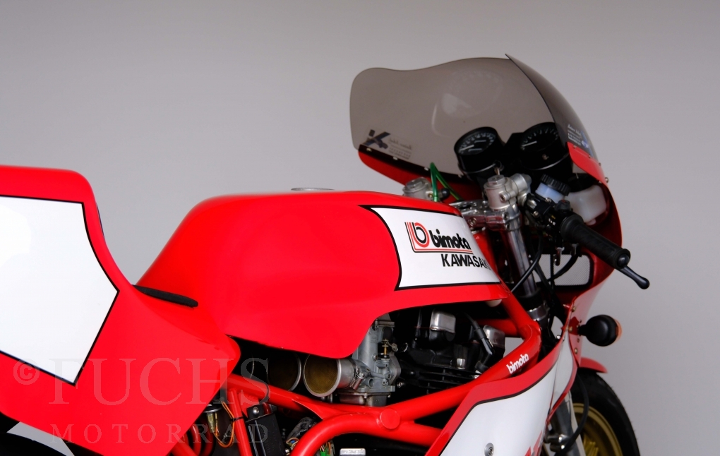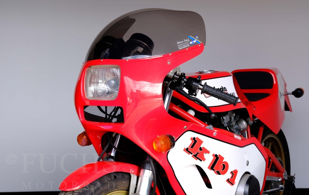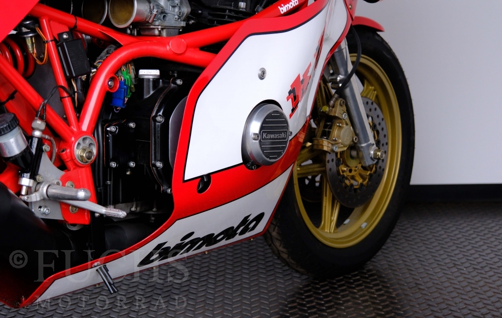 The Bimota KB1 has been one of the most sought-after collectors items produced in Rimini for years. The KB1 was manufactured between 1978 and 1982. Bimotas KB1 was a huge success, and not just for fans of the Kawasaki Z900 and Z1000. The design of the KB1 was, and still is, simply attractive. We are able to present our KB1 in a very fine original condition. The bike underwent a full service in April 2026.