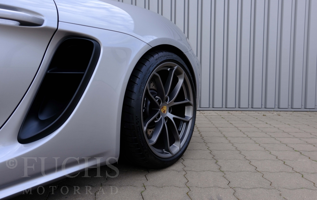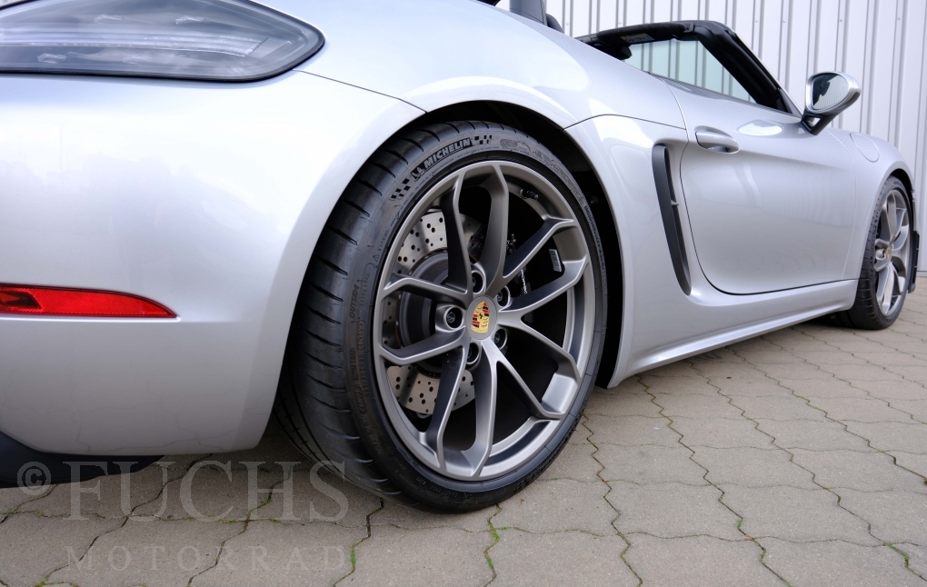 20-inch 718 Spyder alloy wheels, painted in Platinum (satin finish)