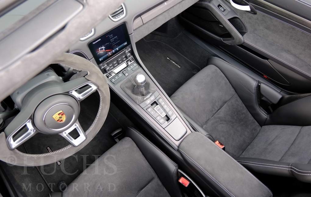 This Porsche 718 Spyder is painted in GT Silver Metallic. The Spyder features a high-quality and comprehensive specification, including a manual gearbox, full carbon-fibre bucket seats and 20-inch wheels from the Porsche Exclusive Manufaktur, and has only one previous owner.