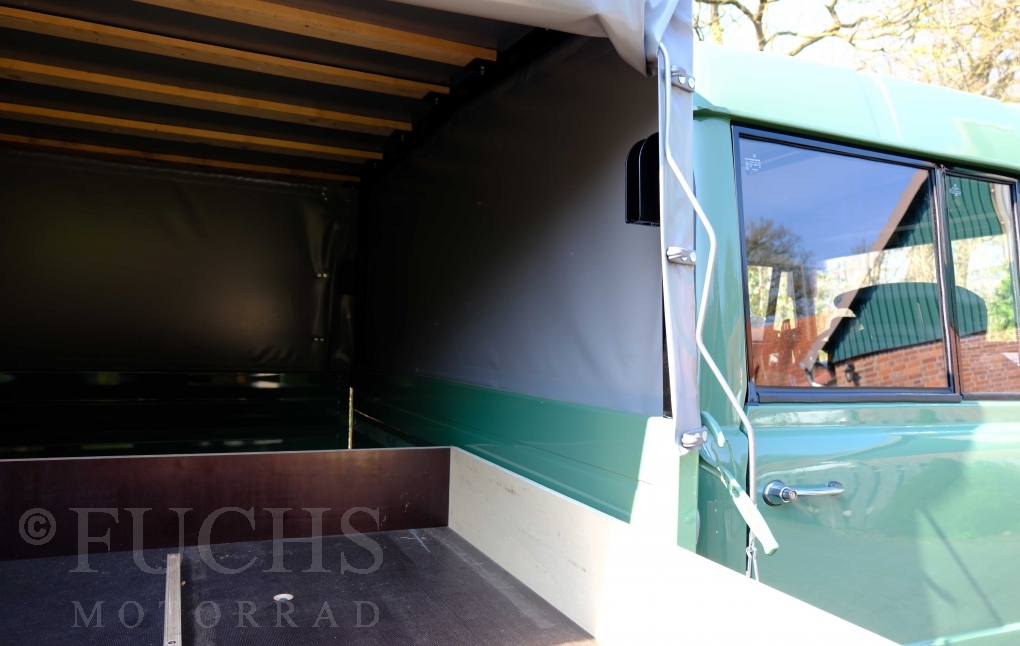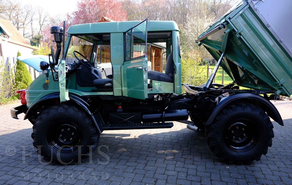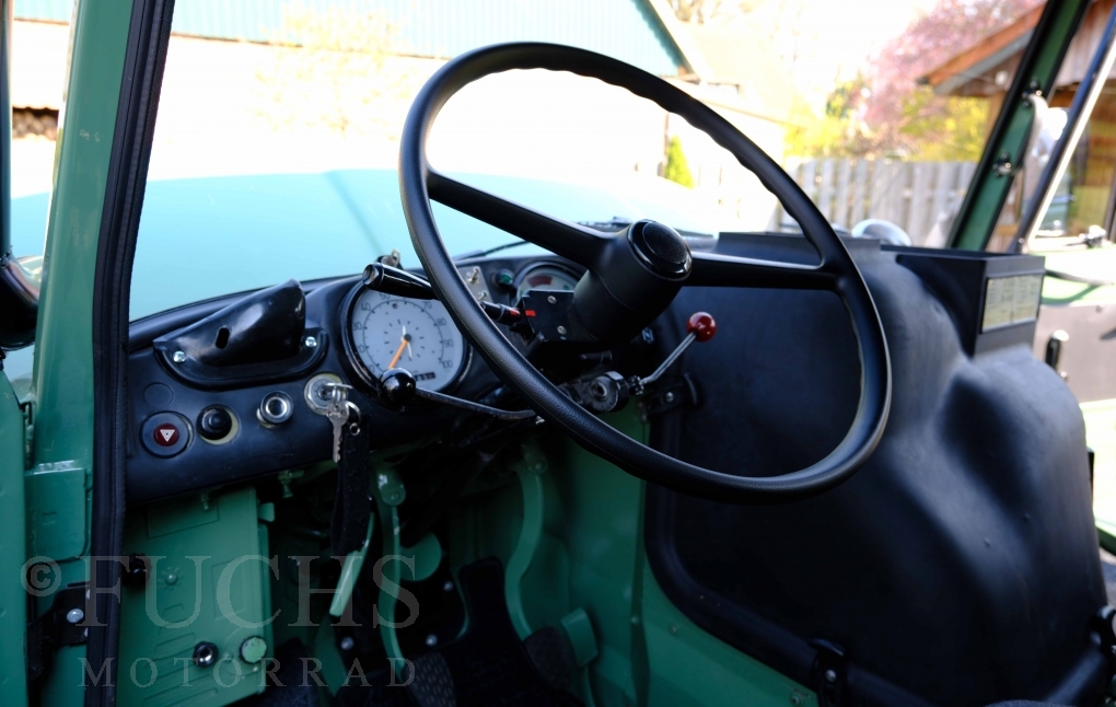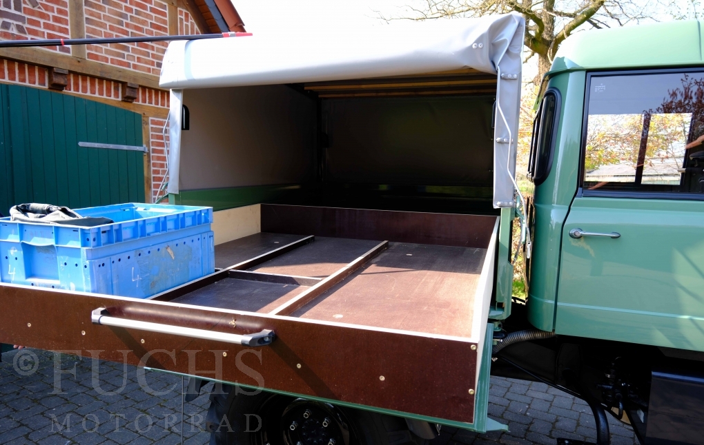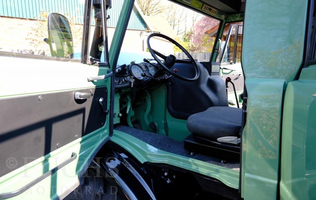Our Unimog is compact and nimble; with a top speed of 95 km/h and a short chassis, I, as the future owner, have a wide range of possibilities. Thanks to the reduced load limit of 3.5 tonnes, a Class B driving licence is sufficient.