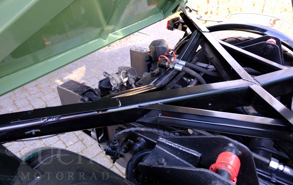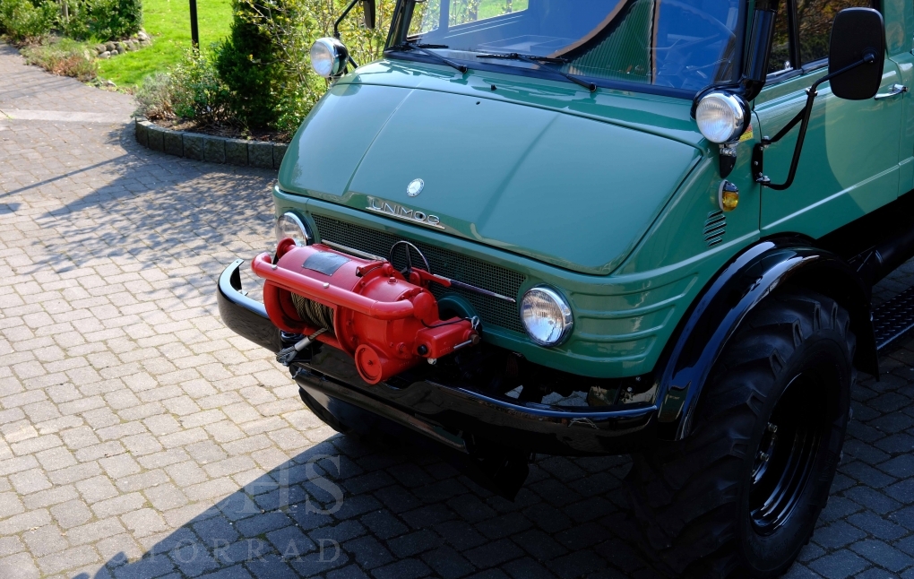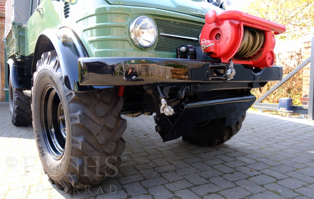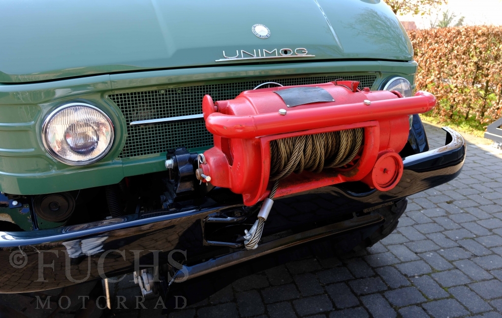 One person wants us to use all the technical options: Werner Type 535 front winch, large gearbox with auxiliary gearbox, crawler gears and worm gears, Rockinger drawbar, car trailer coupling, Werner H64 subframe winch, original Werner forest protection plates front and rear, original Schmidt mounting plate at the front, hydraulic tipper body, air couplings front and rear, hydraulic connections at the rear, and auxiliary headlights front and rear.
