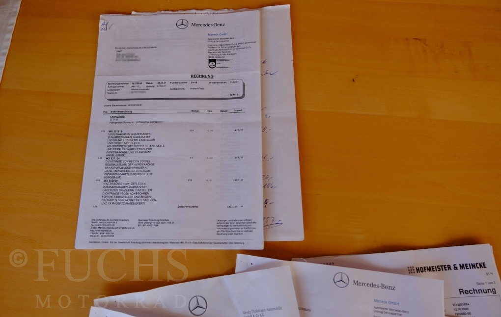 The historical documents, such as the data sheet from Daimler-Benz AG, Gaggenau plant, and the vehicle registration document from 1971, are available.