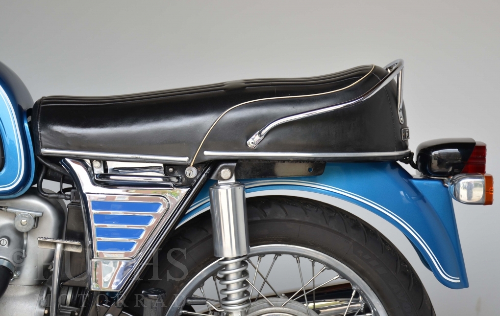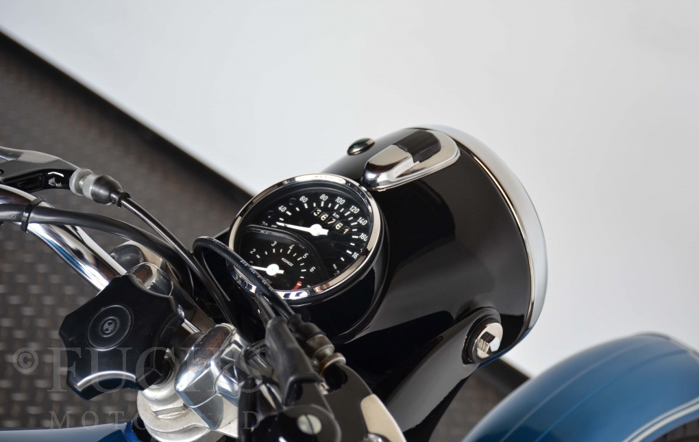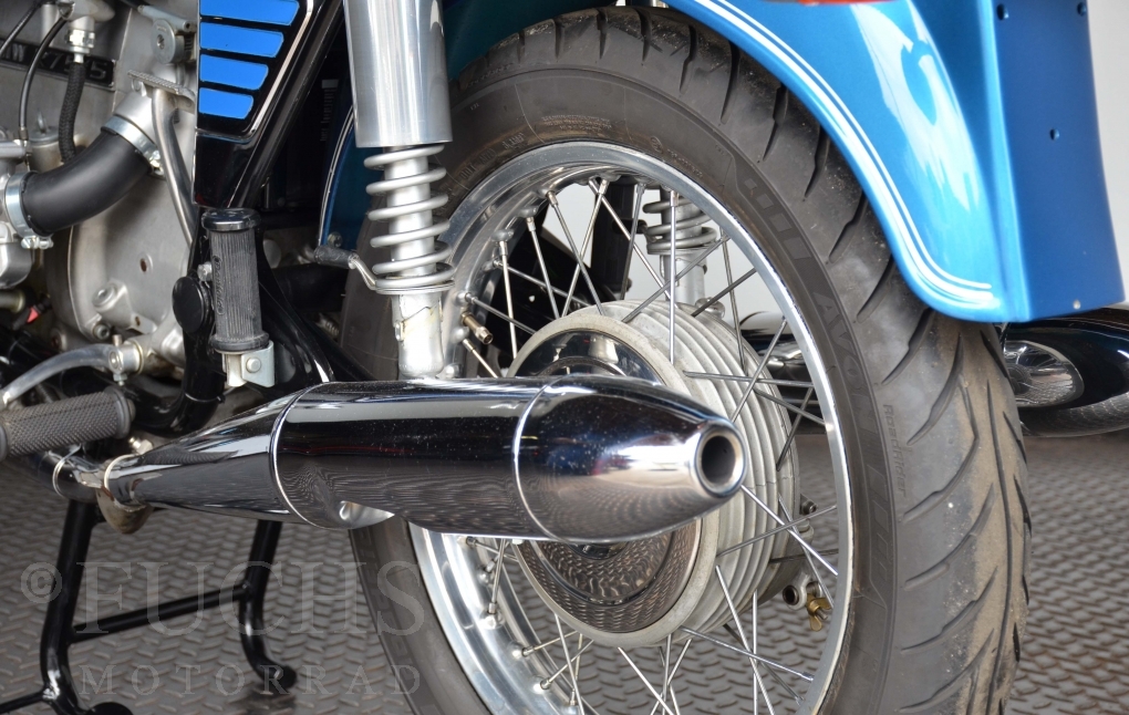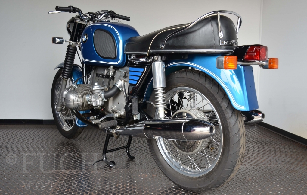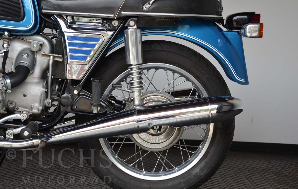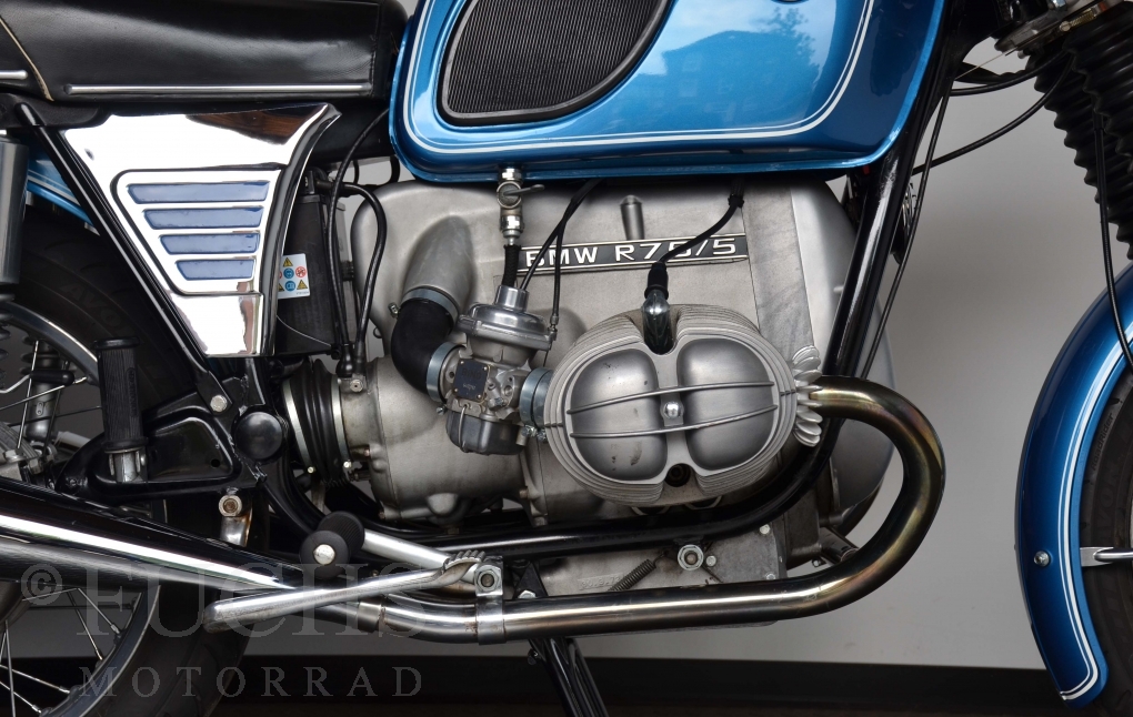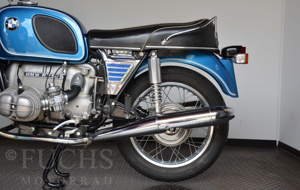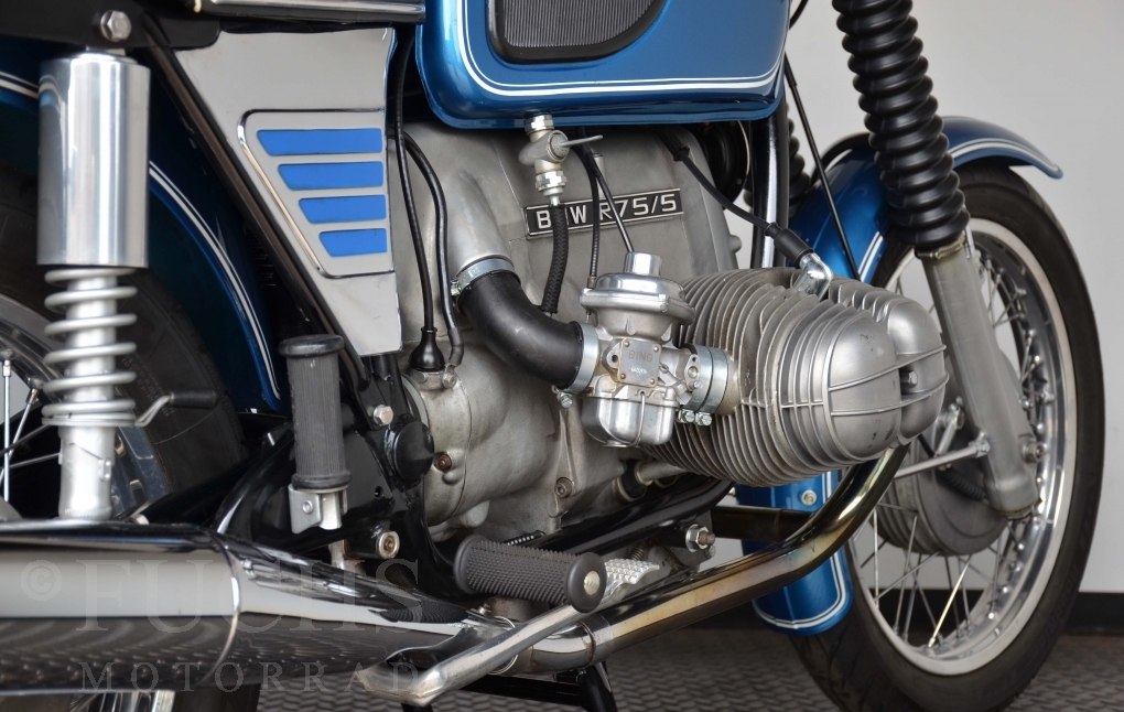 Die BMW R 75/5 zählen wir schon seit Jahren zu den schönsten 2-Ventiler Boxer Motorräder der Nachkriegszeit. Unsere R 75/5 können wir in einem sehr schönen Zustand anbieten. Auch wenn die BMW Bestandteil einer anspruchsvollen Sammlung war, wurde doch über die Jahre darauf geachtet, dass die Maschine gewartet wurde. Die Historie der letzten 30 Jahre kann dokumentiert werden. Motor- und Rahmennummer sind nummergleich und da der Vorbesitzer einen großen Wert auf eine maximale Originalität gelegt, stimmen die Details.