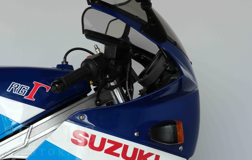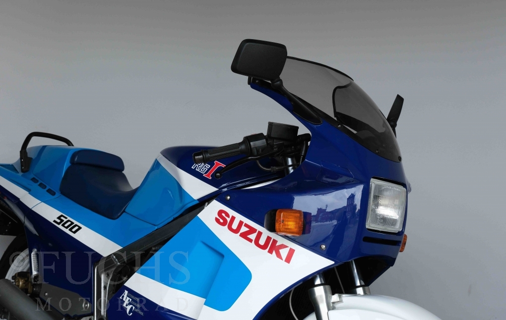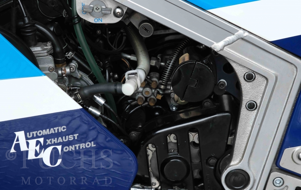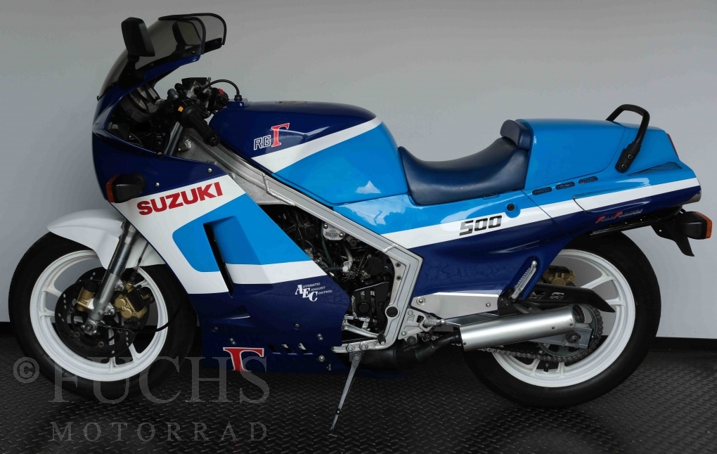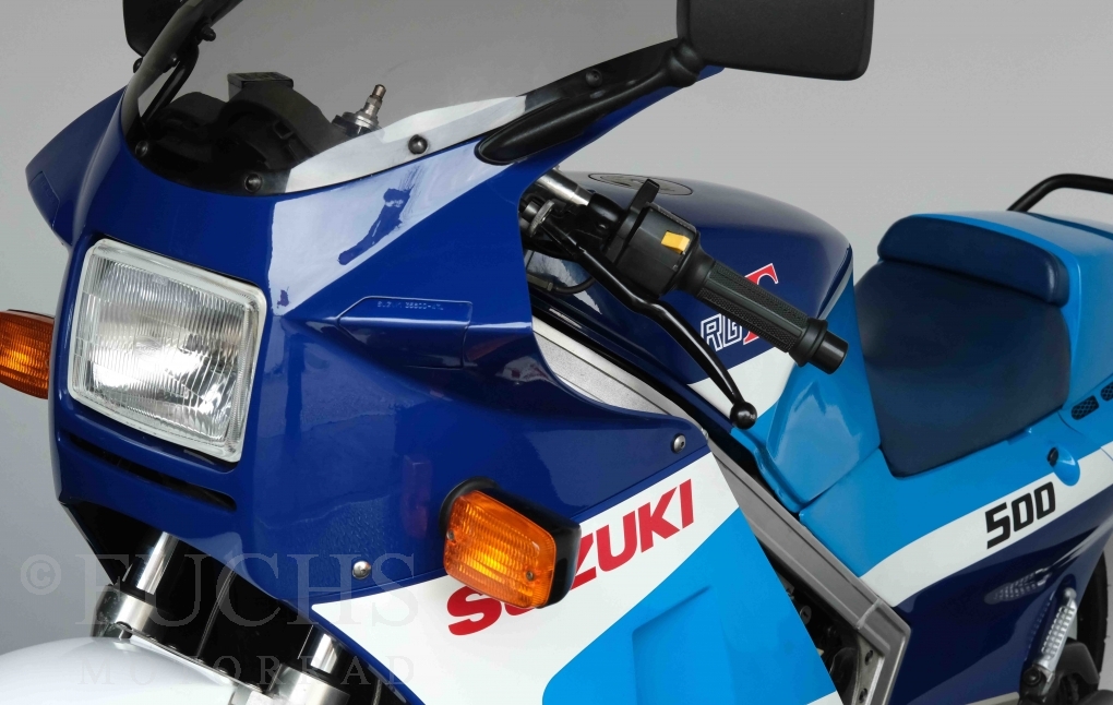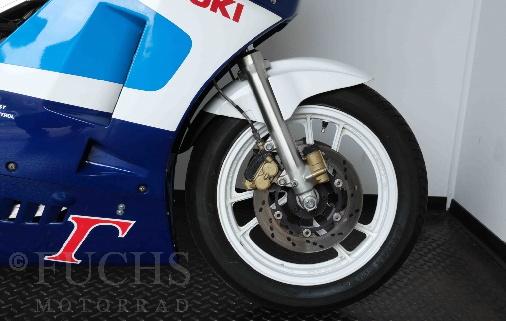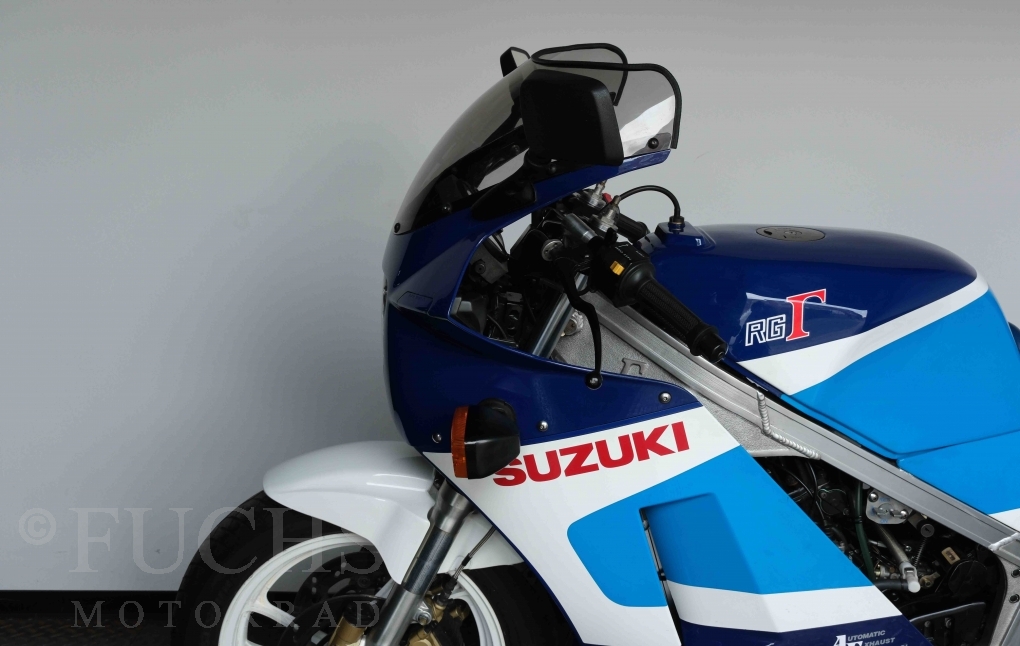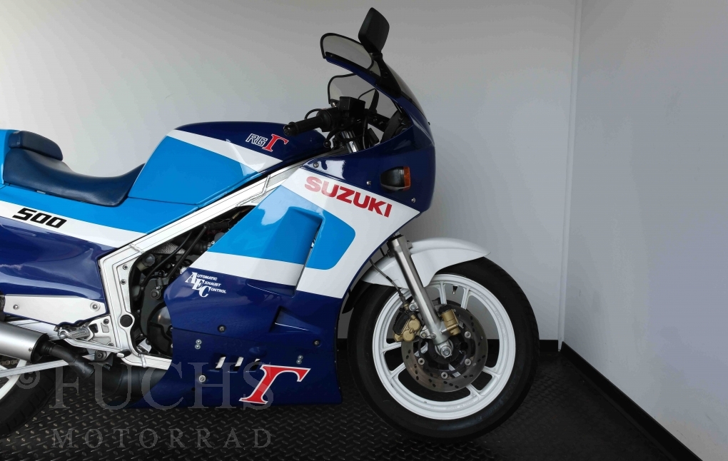 Im Jahr 1984 war die Weltpremiere der Suzuki RG 500. Unsere RG 500 entspricht dem Modelljahr 1987. Das sogenannte H-Modell hat die zweite Evolutionsstufe (Motor und Getriebe). Zu unserer RG 500 liegt eine Dokumentation zum technischen Zustand vor. Motor, Getriebe, Vergaser und Auslasssteuerung wurden komplett revidiert.