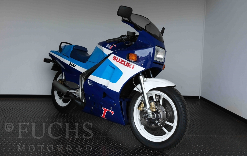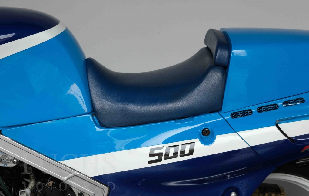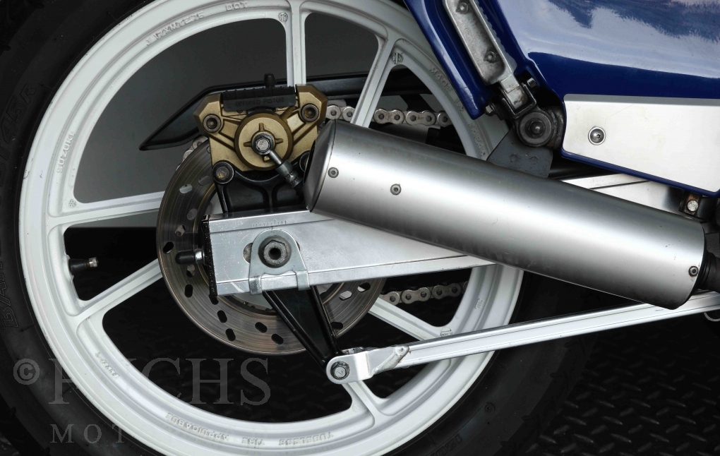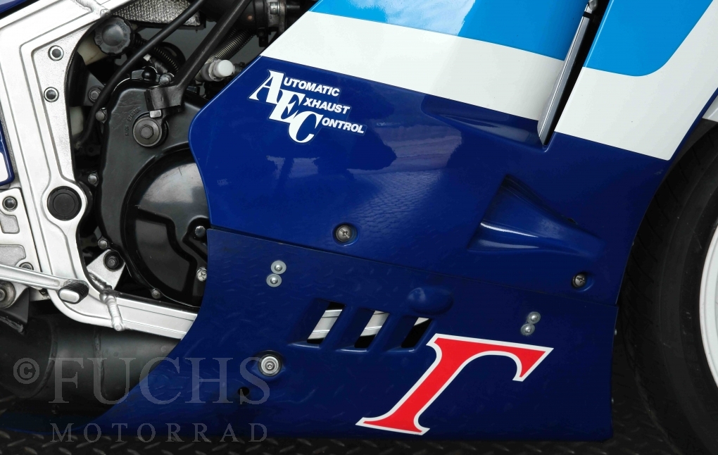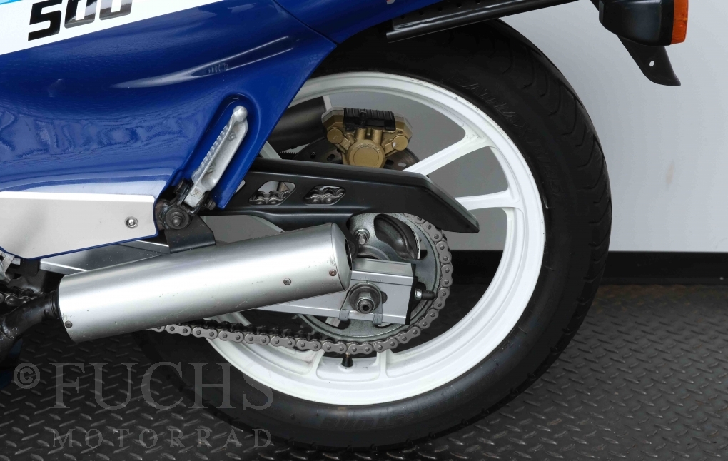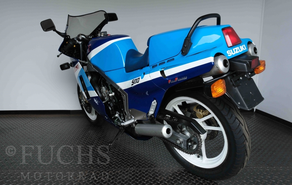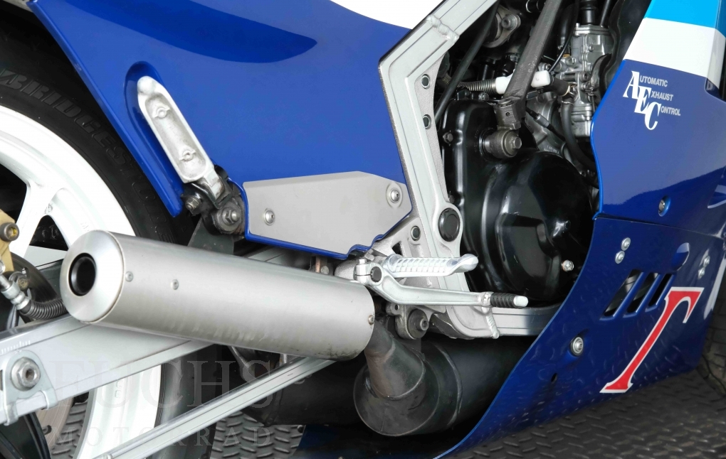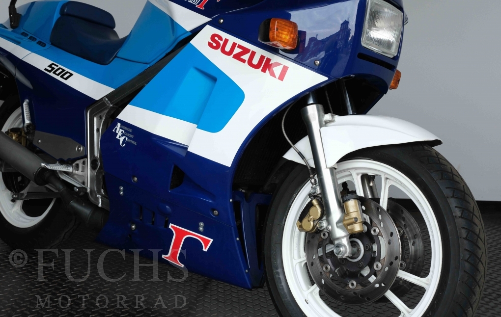 Im Jahr 1984 war die Weltpremiere der Suzuki RG 500. Unsere RG 500 entspricht dem Modelljahr 1987. Das sogenannte H-Modell hat die zweite Evolutionsstufe (Motor und Getriebe). Zu unserer RG 500 liegt eine Dokumentation zum technischen Zustand vor. Motor, Getriebe, Vergaser und Auslasssteuerung wurden komplett revidiert.