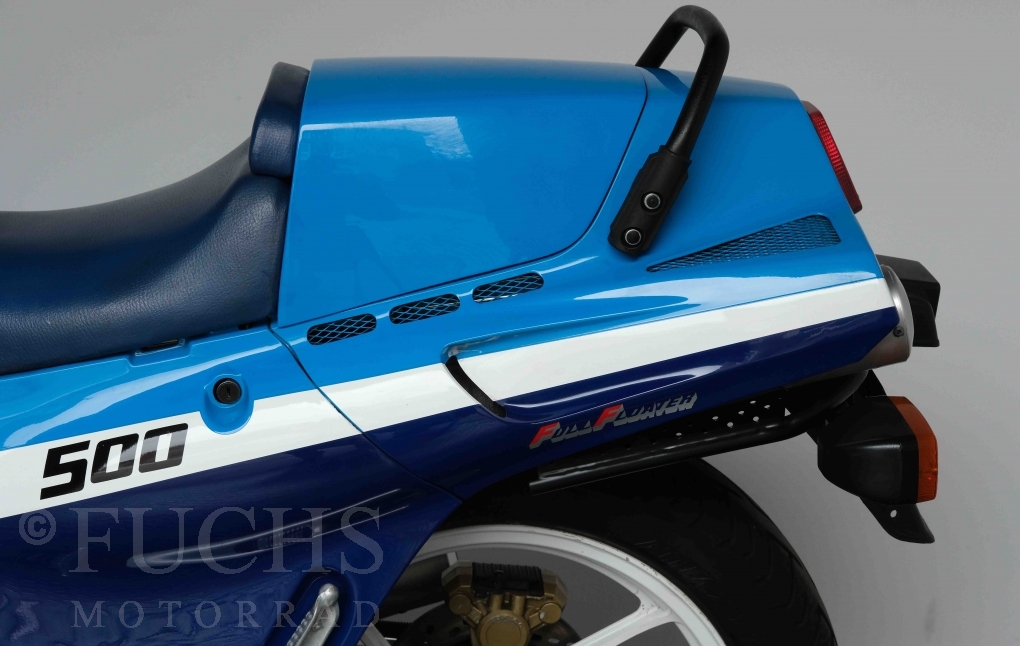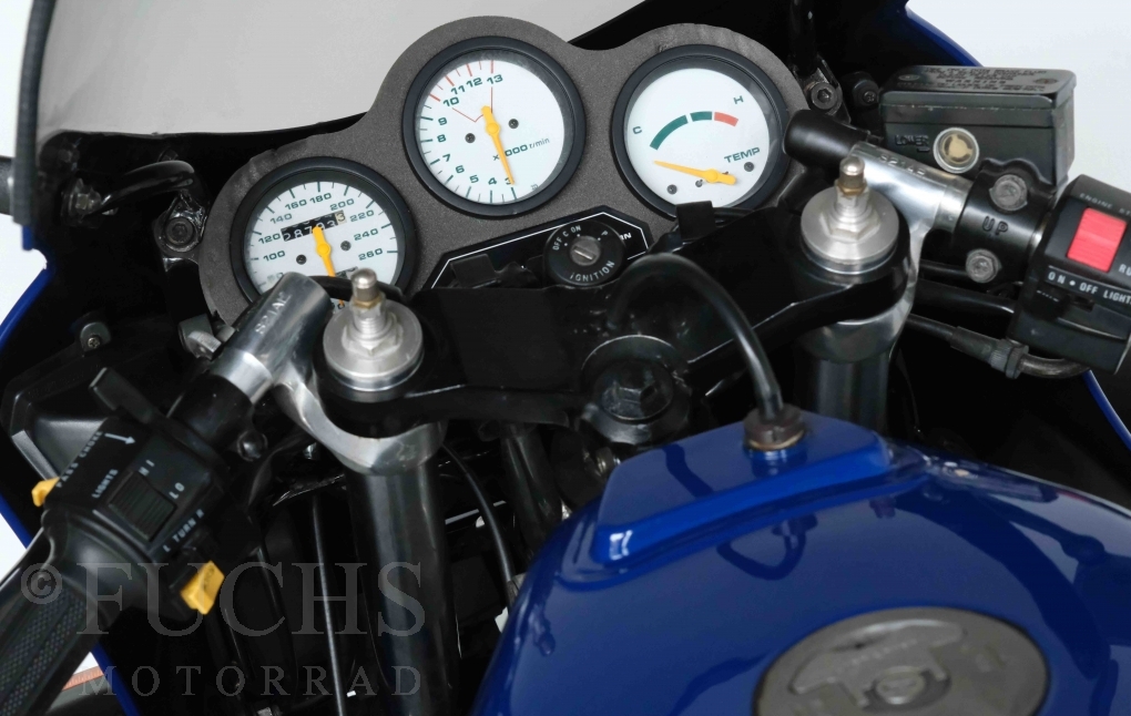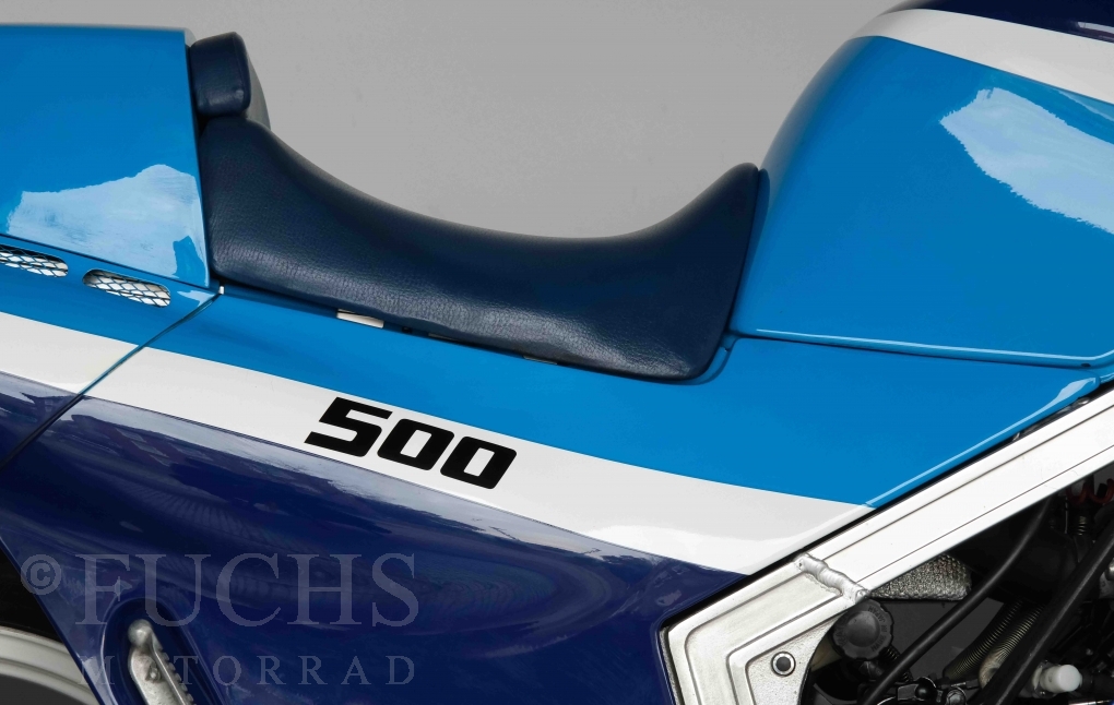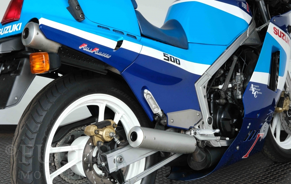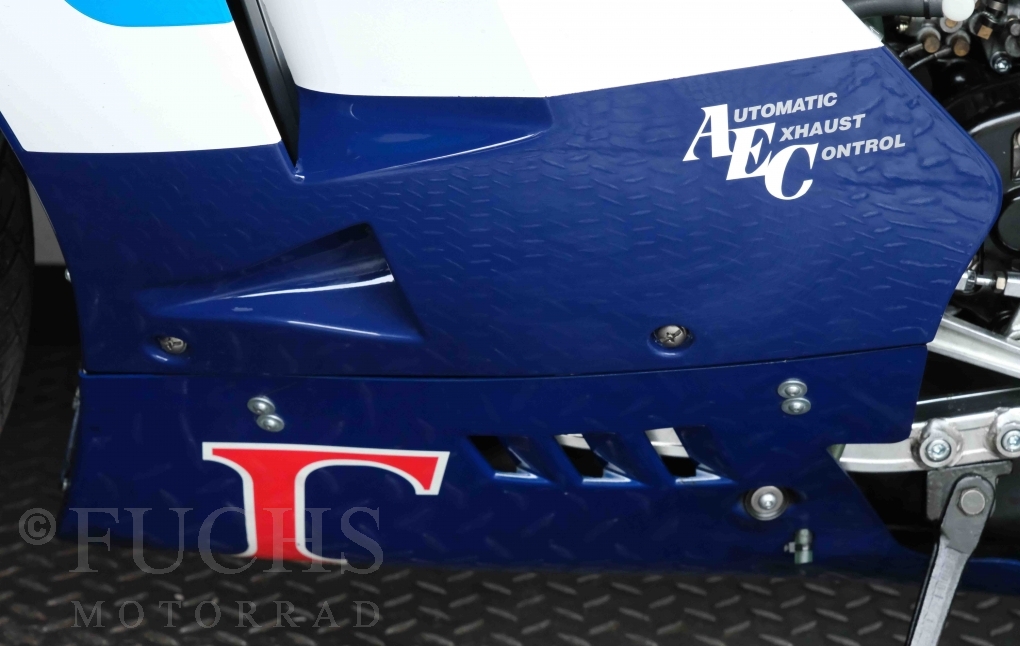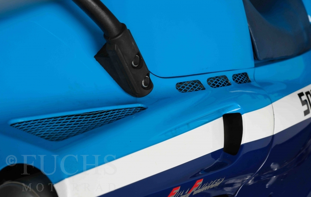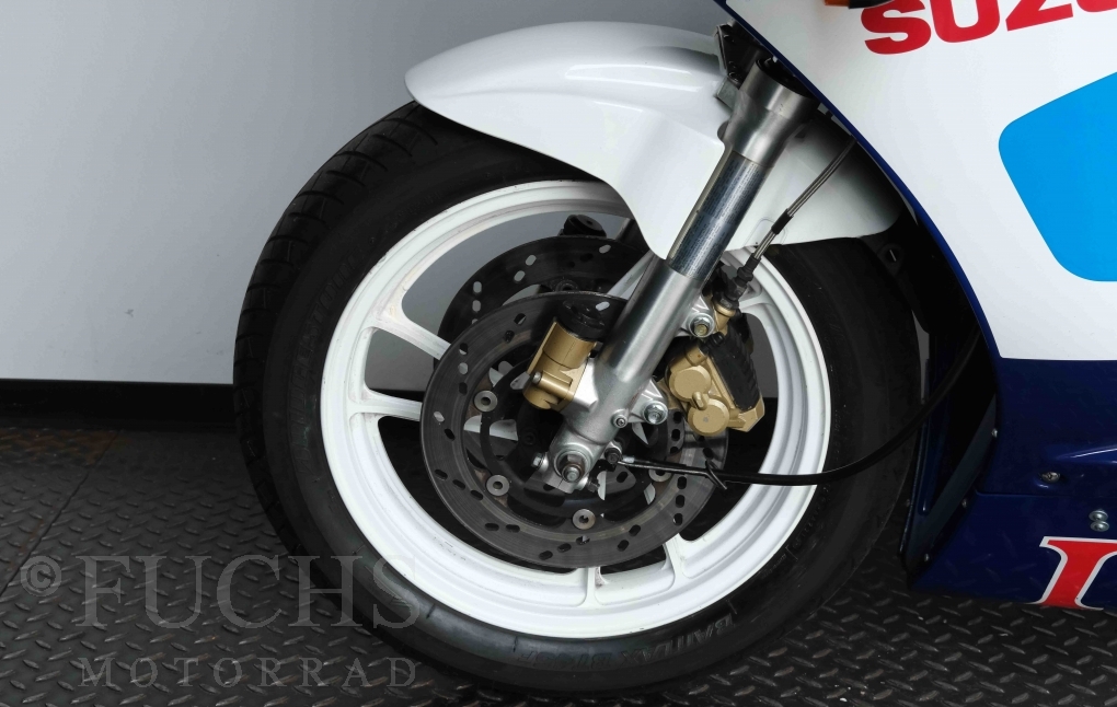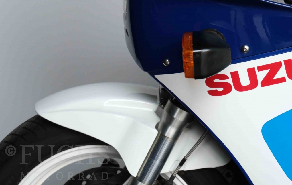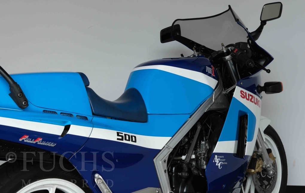 Im Jahr 1984 war die Weltpremiere der Suzuki RG 500. Unsere RG 500 entspricht dem Modelljahr 1987. Das sogenannte H-Modell hat die zweite Evolutionsstufe (Motor und Getriebe). Zu unserer RG 500 liegt eine Dokumentation zum technischen Zustand vor. Motor, Getriebe, Vergaser und Auslasssteuerung wurden komplett revidiert.