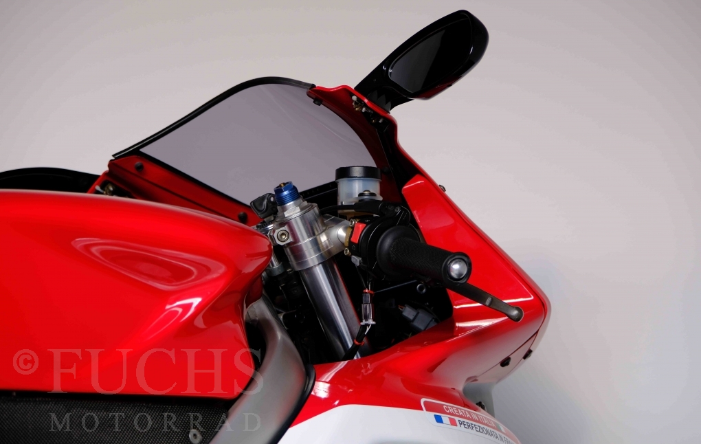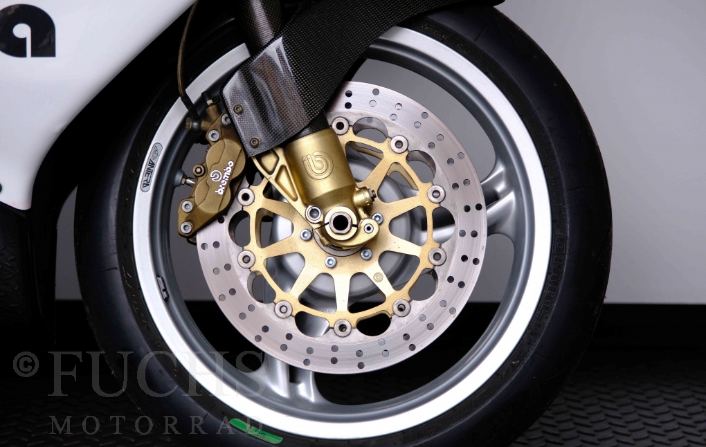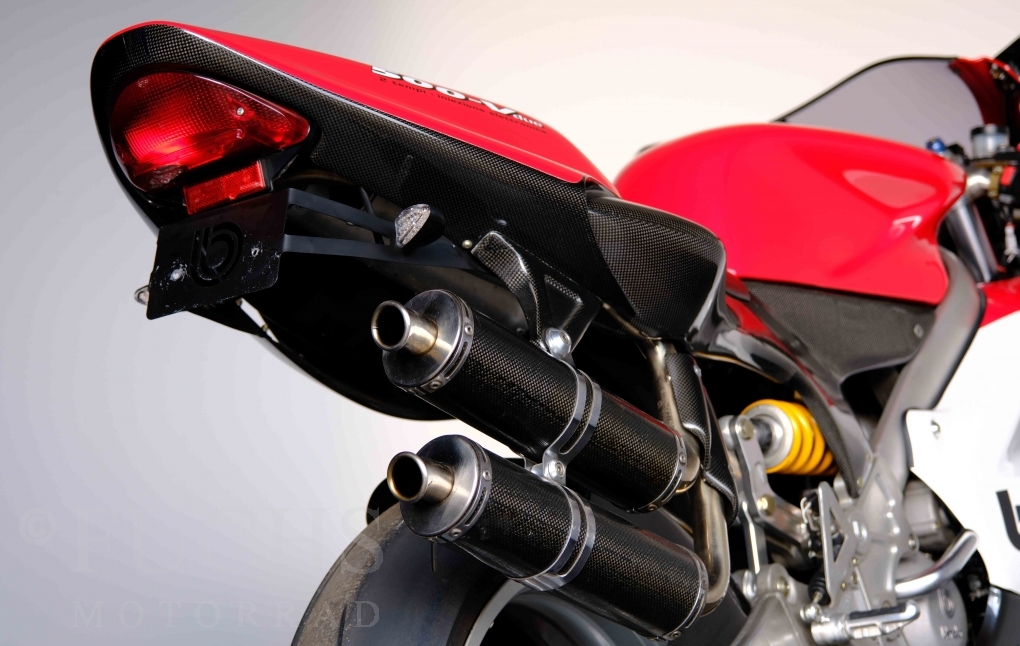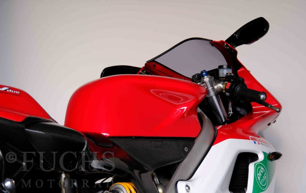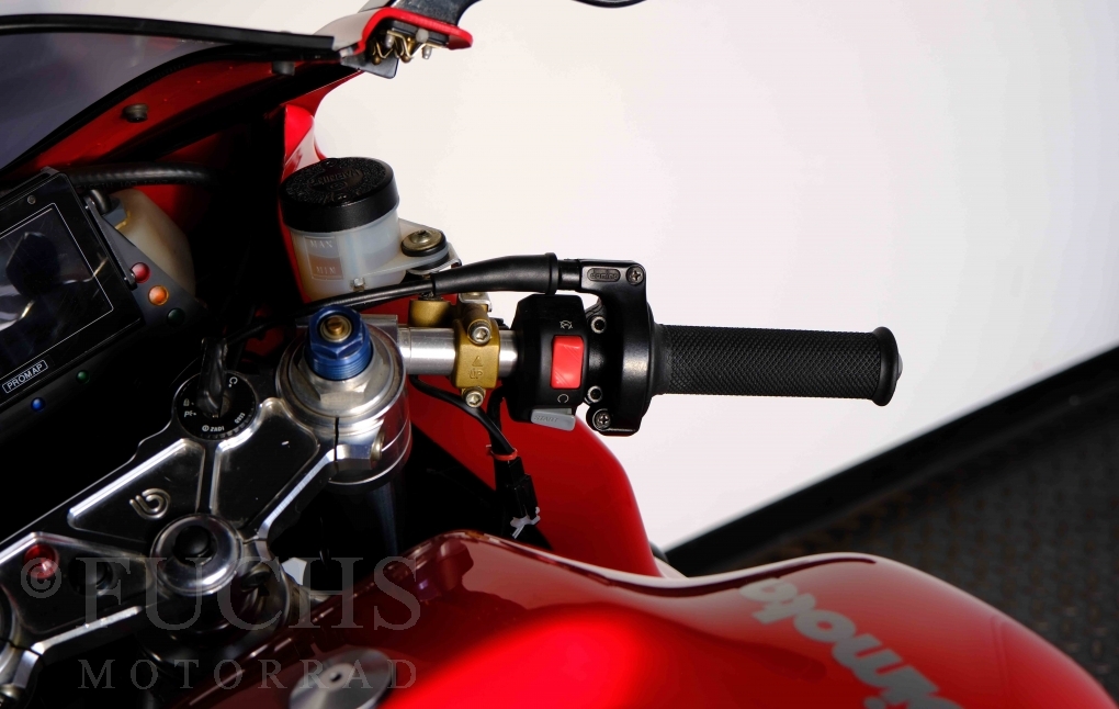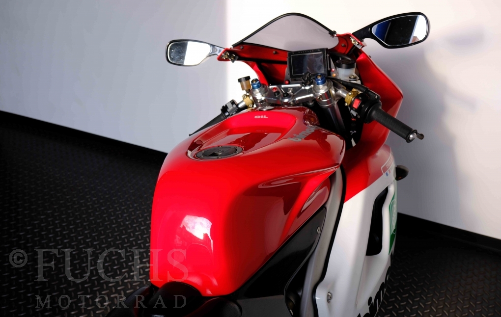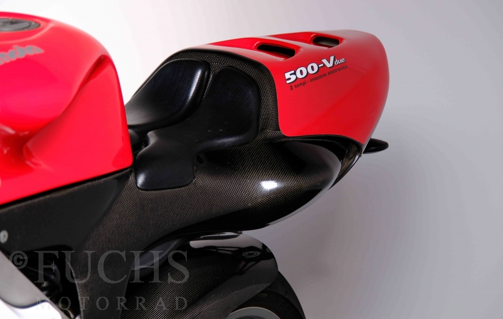 Nach mehr als 24 Jahren hat Bimota erstmals eine komplette Eigenentwicklung in den Markt gebracht. Die 500er Zweitaktmaschine war eine kleine Sensation, denn andere Hersteller hatten sich schon längst aus der Entwicklung von Zweitaktmotoren zurückgezogen. Promap mit Valerie Lecoeur setzte die Arbeit von Bimota fort und veränderte das Schmiersystem der Vdue und konstruierte eine indirekte Einspritzanlage. Ferner wurde die Kupplung und das Schaltwerk modifiziert. Ein modernisiertes Dashboard machen unsere VDue zu einem Zweitakter, der gefahren werden will. Wir haben französische Fahrzeugpapiere.