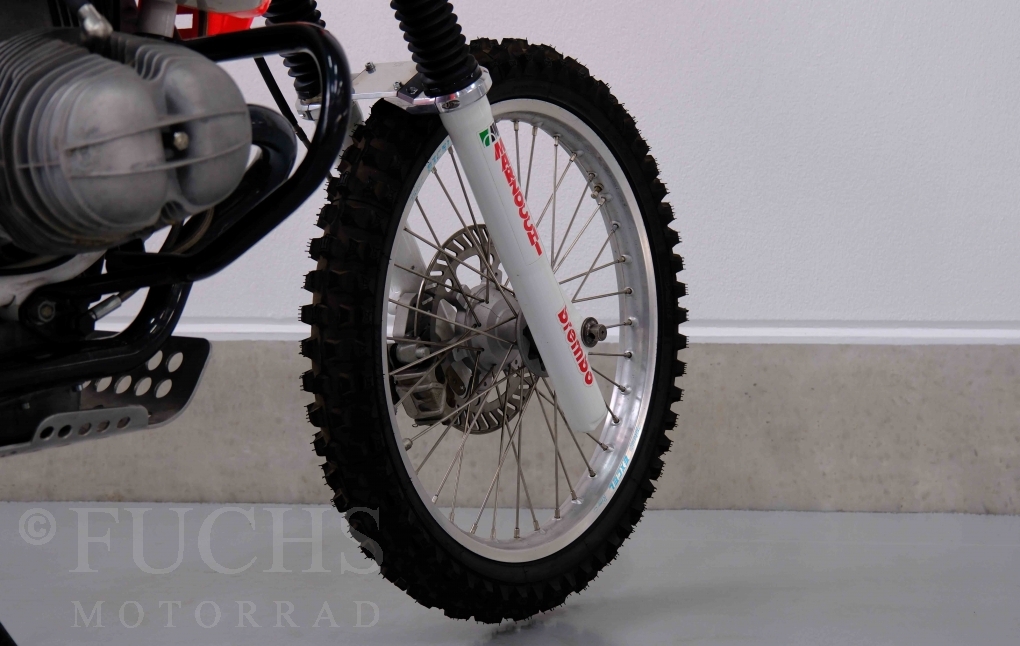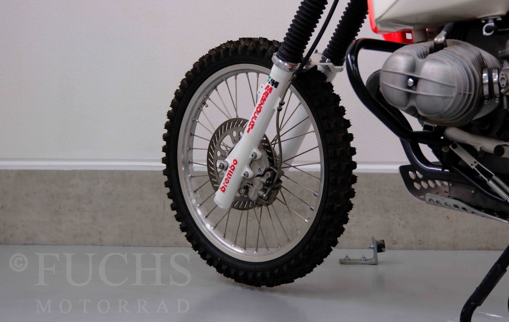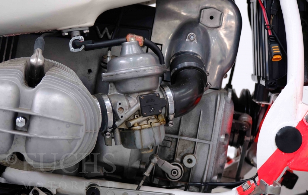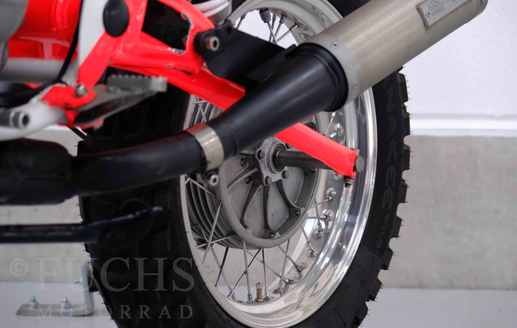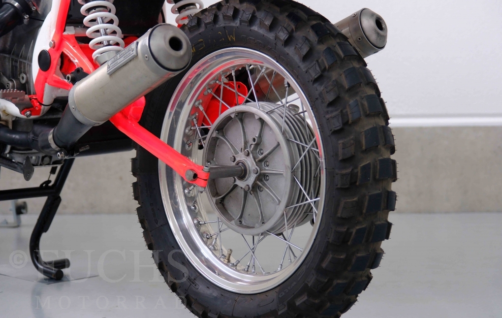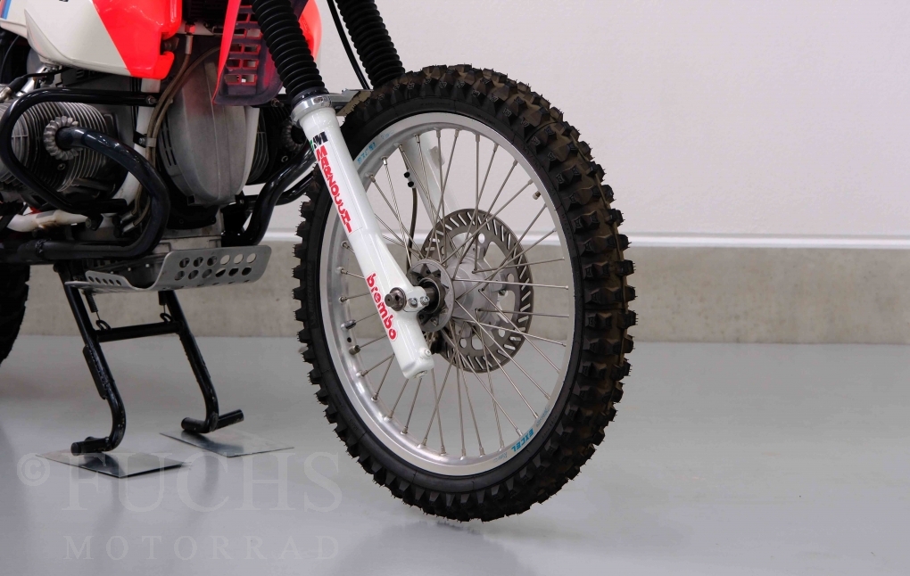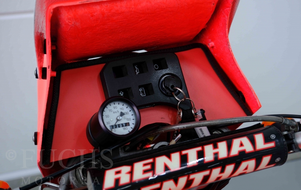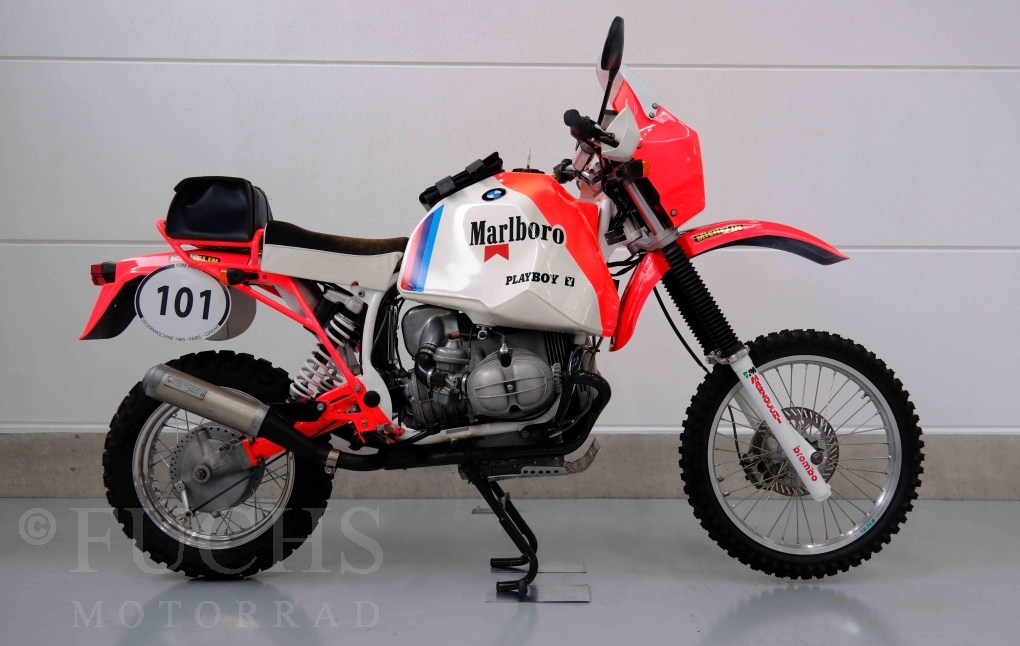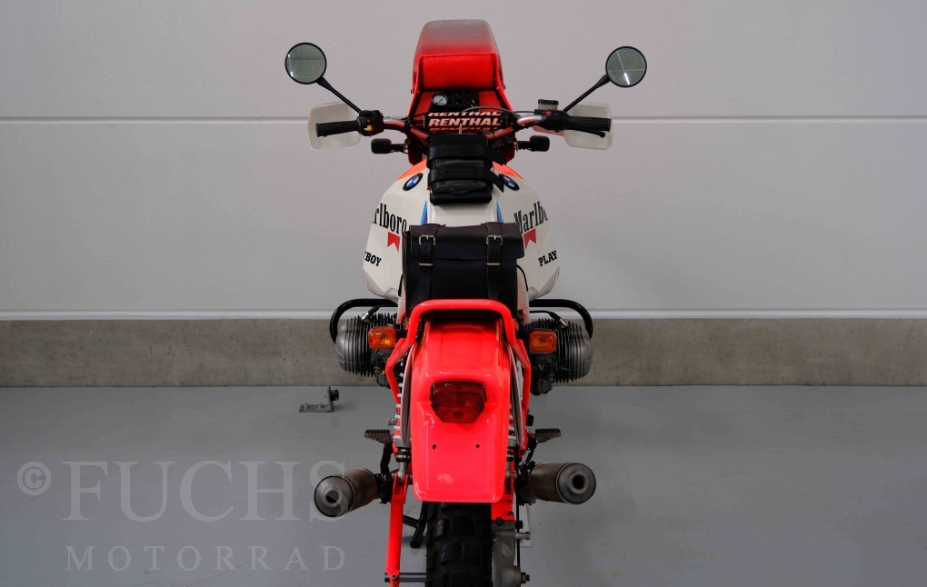 Im Jahr 1978 hat Thierry Sabine die Rallye Paris Dakar initiiert. Mit einer Distanz von 10.000 km war es mehr als nur ein Abendteuer für Mensch und Maschine. BMW hat mit der R 80 G/S erstmals 1981 teilgenommen und war sofort mit Hubert Auriol erfolgreich. Im Jahr 1985 hat Gaston Rahier die Rallye gewonnen. Wie häufig im Rennsport sind die entwickelten Fahrzeuge eine Augenweide und die R 80 G/S Paris-Dakar aus dem Jahr 1985 zählt auf jeden Fall dazu. Unsere BMW stammt aus einer kleinen Serie, die von einem findigen Mechaniker aufgebaut wurde. Der Neuaufbau umfasst die Überholung vom Motor und die Bearbeitung vom Fahrwerk und Einbau der Komponenten wie eine verlängerte Schwinge, Marzocchi Gabel, Brembo Bremsanlage, Excel Speichenräder und weiterer Details, die dazu dienen sollen, dass die Replica der originalen Wettbewerbsmaschine entspricht. Zu dieser Replica 1985 liegen deutsche Fahrzeugpapiere vor.