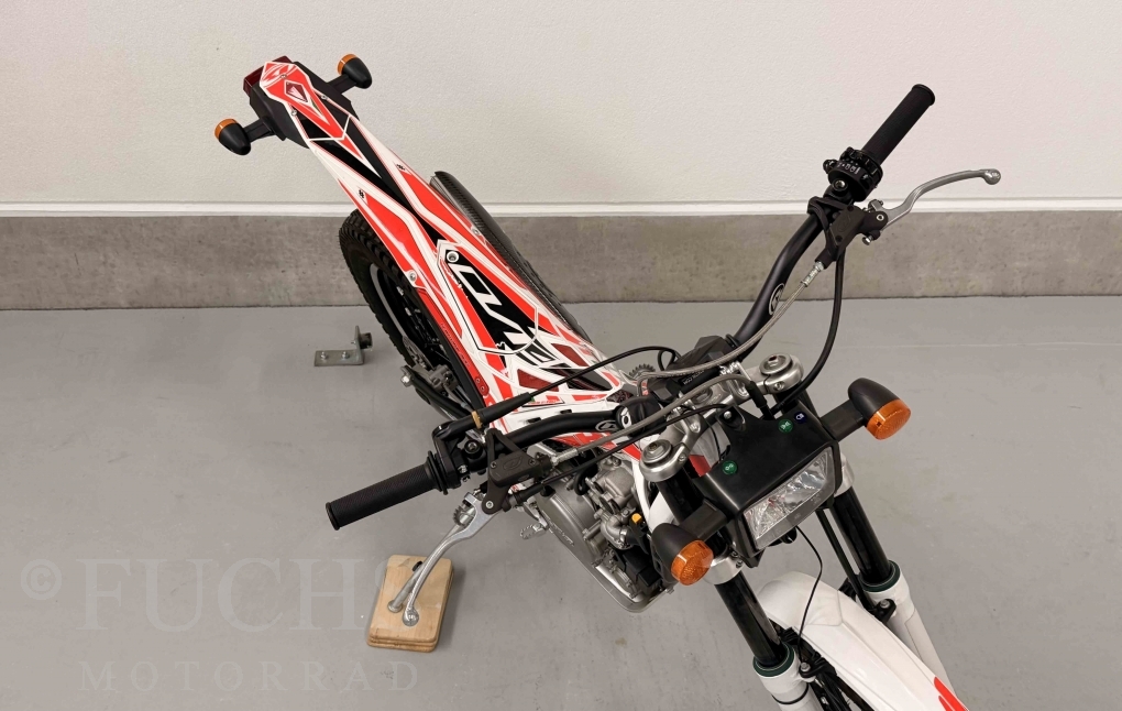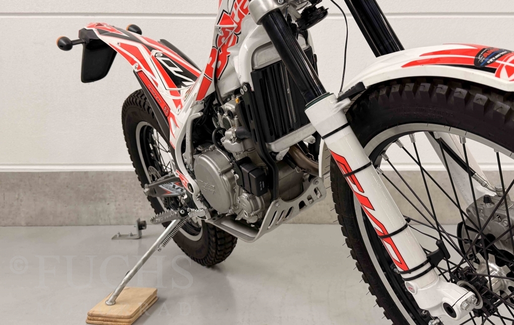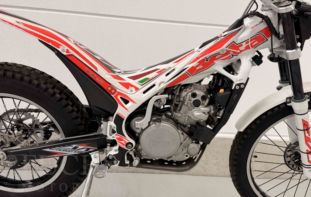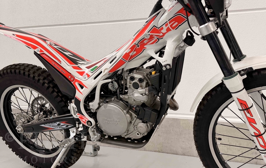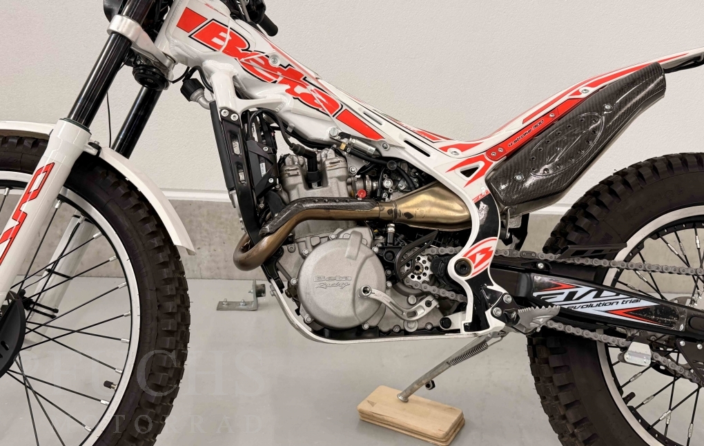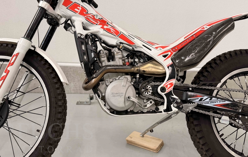 Die EVO 300 4T ist eine Trial Maschine, die Betamotor aus Italien baut. Seit dem Modelljahr werden von Beta die 300 4T Modelle angeboten. Unsere EVO stand in den vergangenen Jahren in einer Sammlung und wurde nur wenige Kilomenter bewegt. Deutsche Fahrzeugpapiere liegen vor.