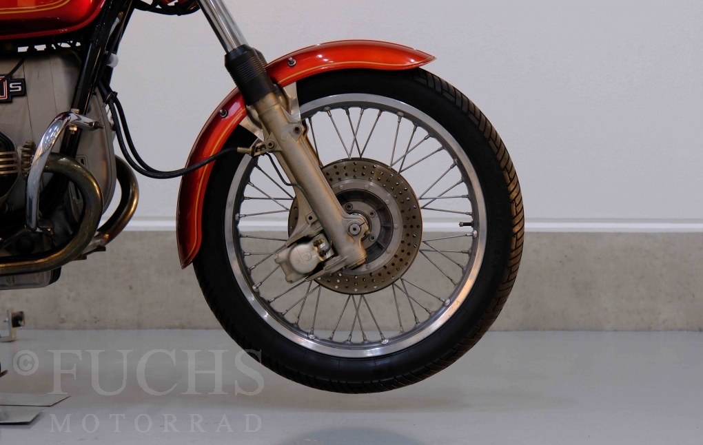 Die BMW R 100 S wurde zwischen 1976 und 1978 gebaut. Mit 11.762 Stück konnte die R 100 S an das Vorgängermodell, der R 90 S anknüpfen. Unsere R 100 S ist nummerngleich und gehört zu den ersten 3.000 gebauten Fahrzeugen und hat deshalb 65 PS. In den vergangenen Jahren war die R 100 S Bestandteil einer Motorradsammlung und bedarf für die erneute Inbetriebnahme einer frischen Inspektion und neuer Reifen.