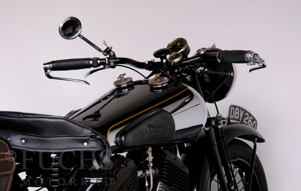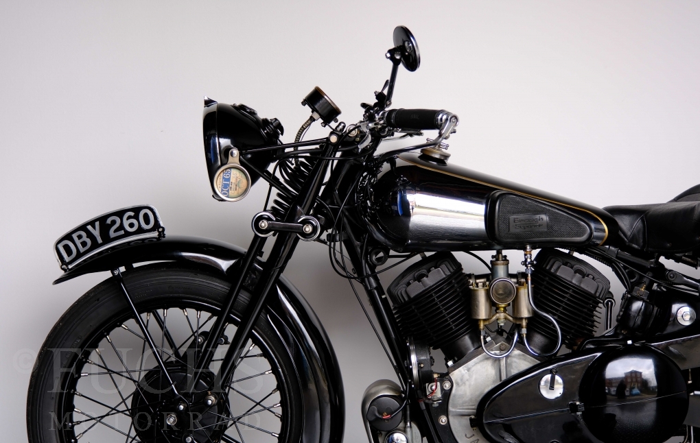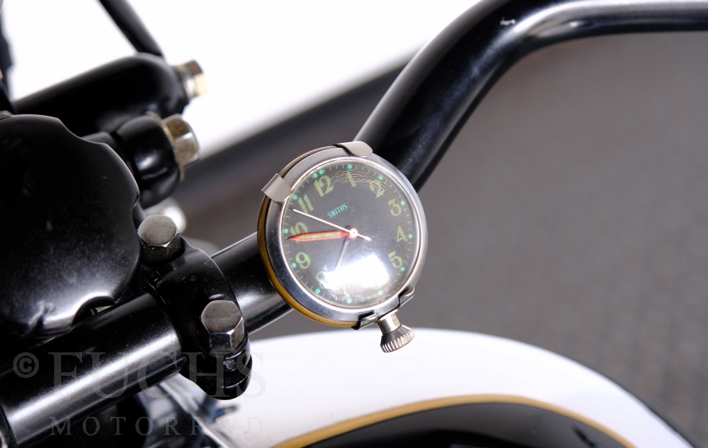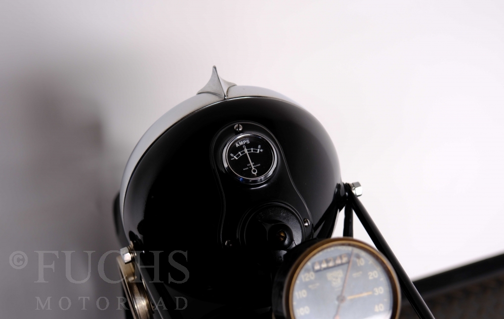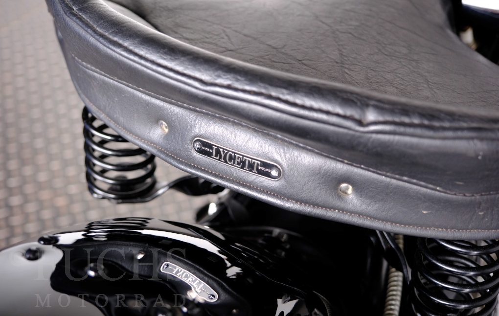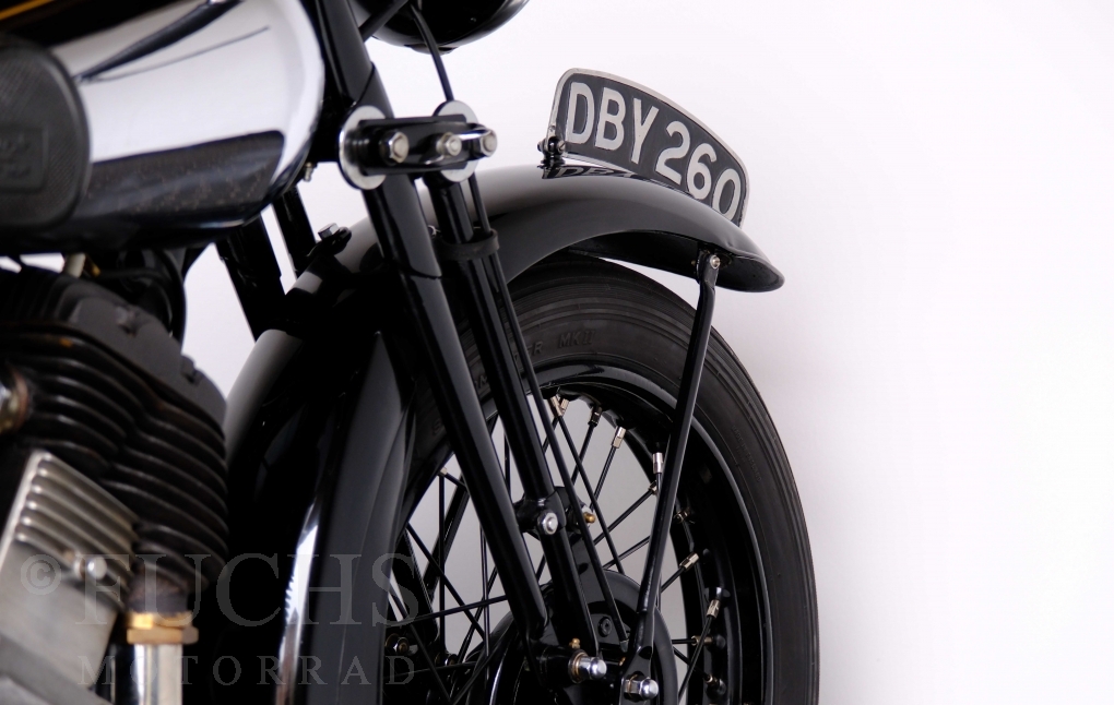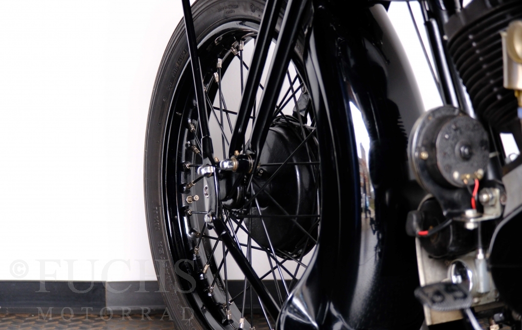 Im Jahr 1938 hat Brough Superior die Entwicklung des plunger frame abgeschlossen und unsere 11-50 ist eine der ersten Fahrzeuge, die mit diesem Federungssystem ausgeliefert wurden. Maxmimal 10 Brough 11-50 wurde jemals mit der plunger suspension gebaut. Die erstklassige Qualität dieser Brough wird durch eine vollständige Restaurierung von Fahrwerk und Motor ergänzt. Ein Blick in die works record card bestätigt, dass wir von matching numbers sprechen können. Das erstklassige Sammlerstück wurden in den vergangenen Jahren auf verschiedenen Veranstaltung bewundert und prämiert. Die Brough Superior wird von uns fahrfertig geliefert. Deutsche Fahrzeugpapiere liegen vorl.