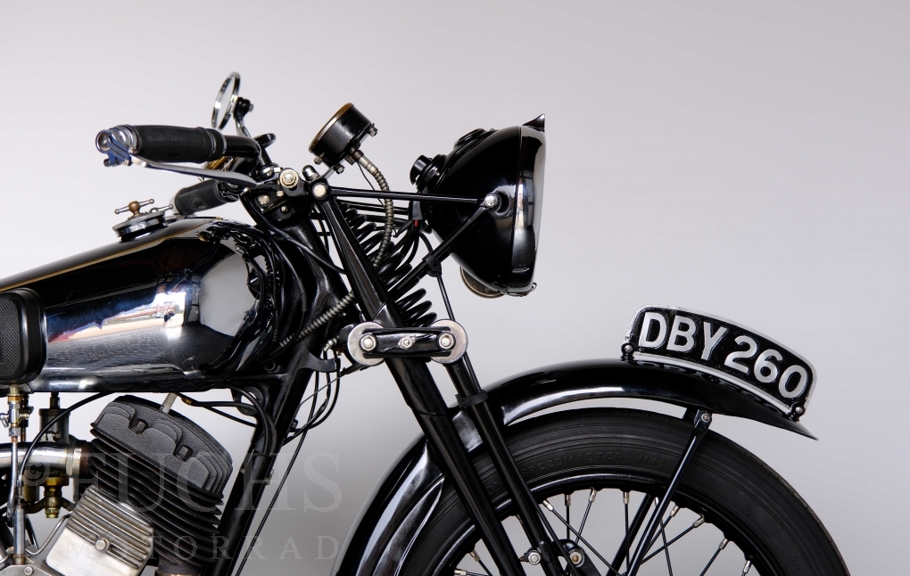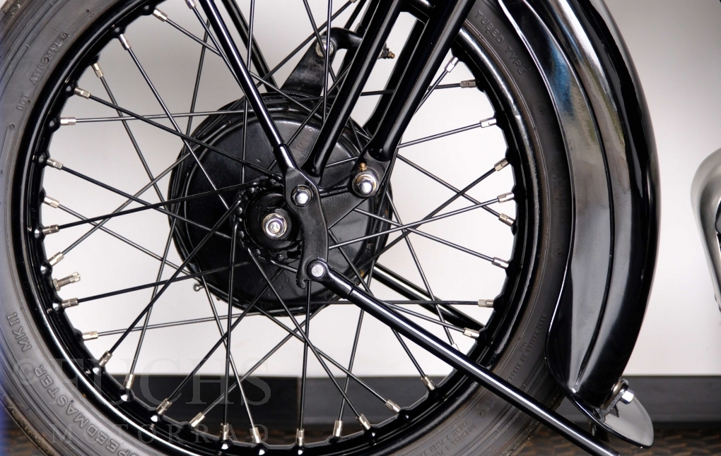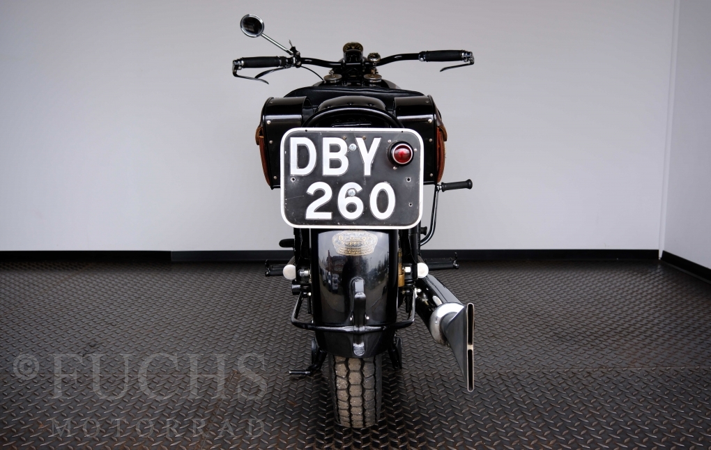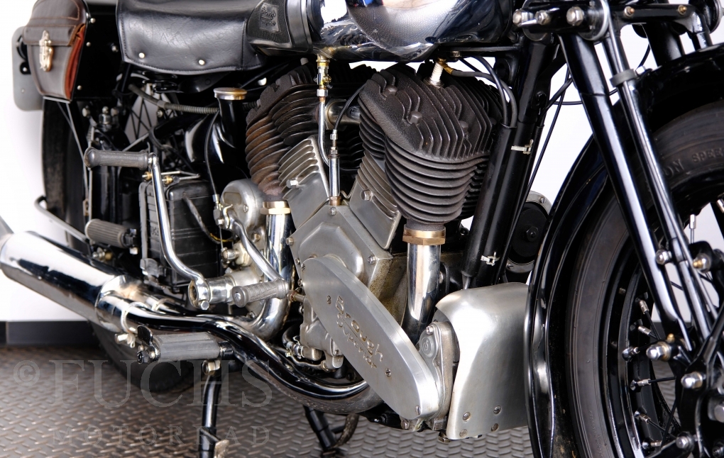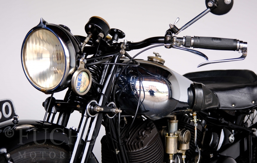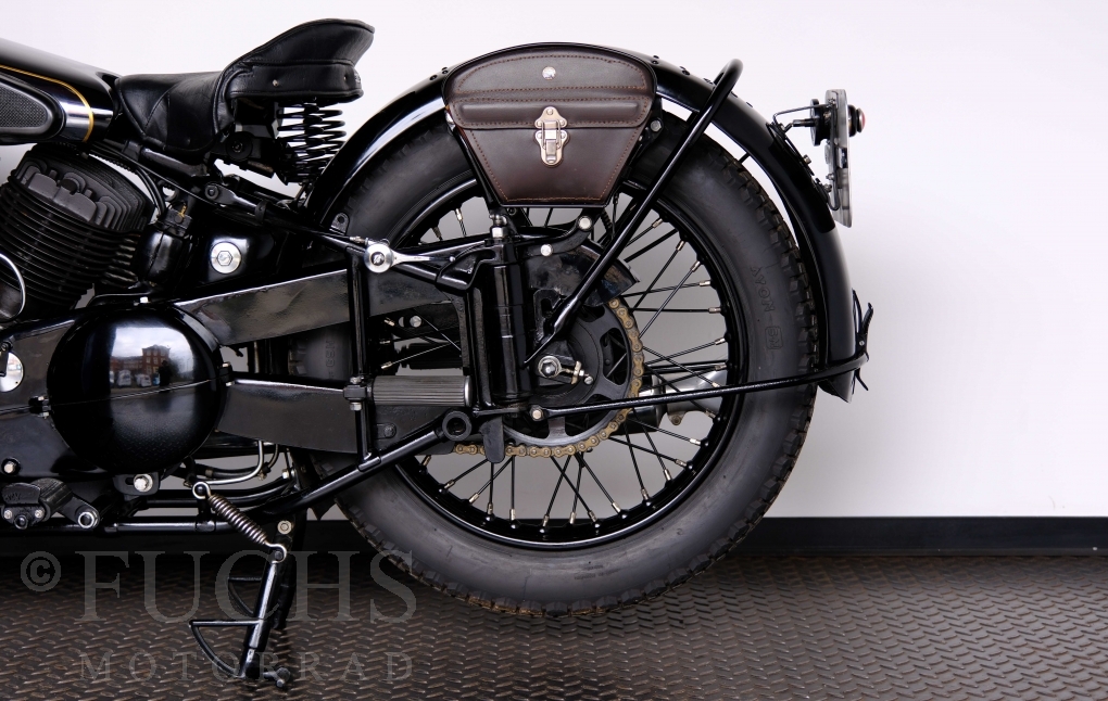 Im Jahr 1938 hat Brough Superior die Entwicklung des plunger frame abgeschlossen und unsere 11-50 ist eine der ersten Fahrzeuge, die mit diesem Federungssystem ausgeliefert wurden. Maxmimal 10 Brough 11-50 wurde jemals mit der plunger suspension gebaut. Die erstklassige Qualität dieser Brough wird durch eine vollständige Restaurierung von Fahrwerk und Motor ergänzt. Ein Blick in die works record card bestätigt, dass wir von matching numbers sprechen können. Das erstklassige Sammlerstück wurden in den vergangenen Jahren auf verschiedenen Veranstaltung bewundert und prämiert. Die Brough Superior wird von uns fahrfertig geliefert. Deutsche Fahrzeugpapiere liegen vorl.