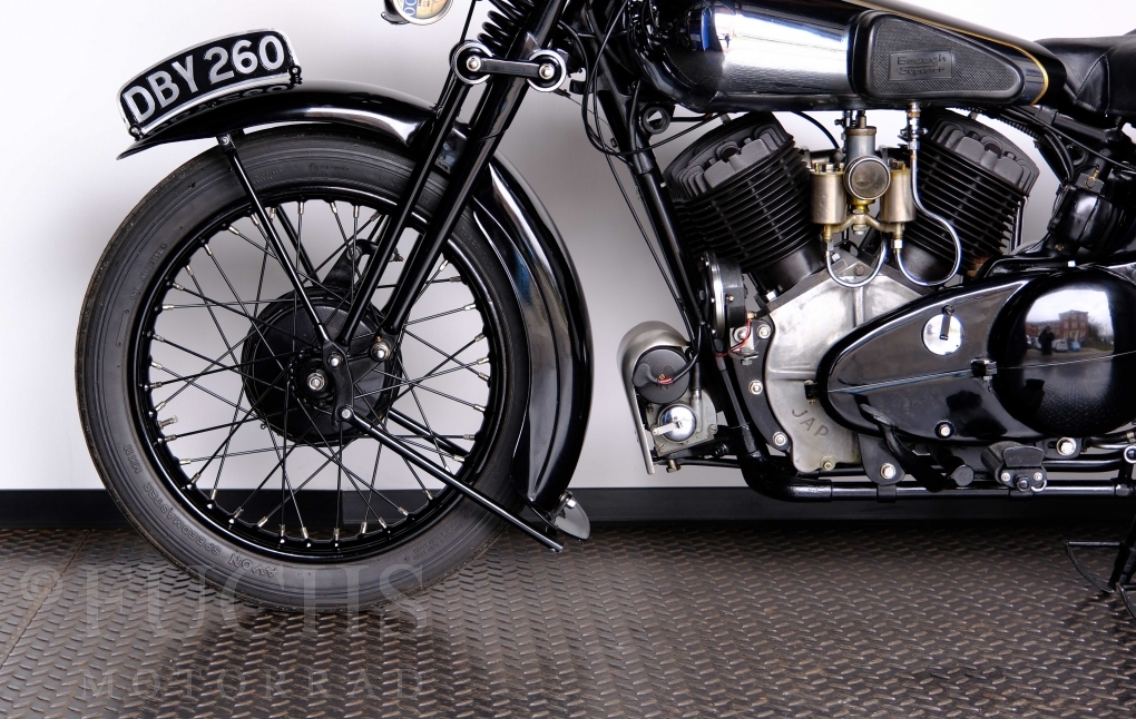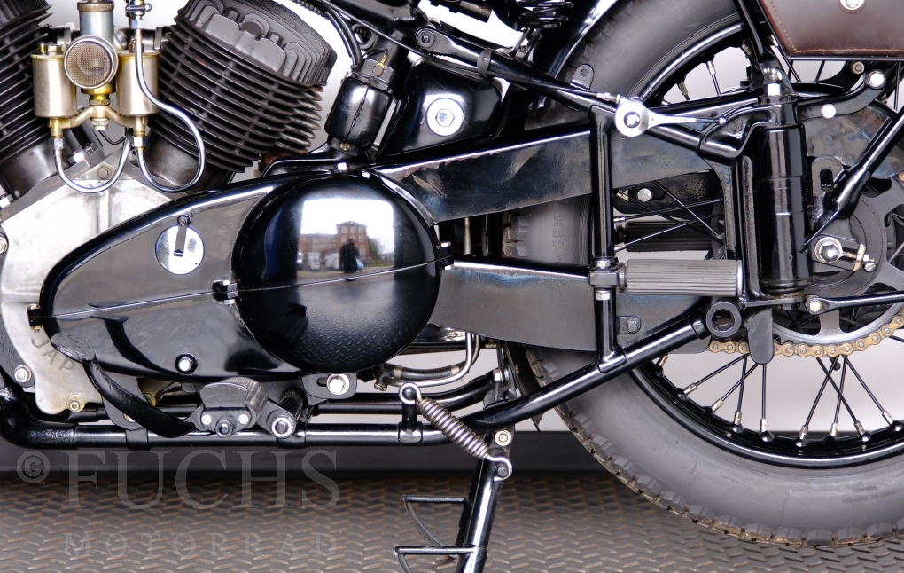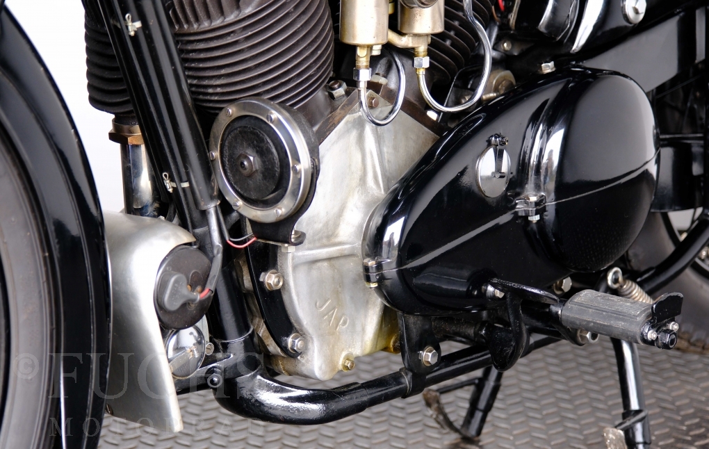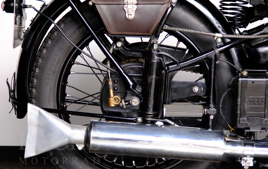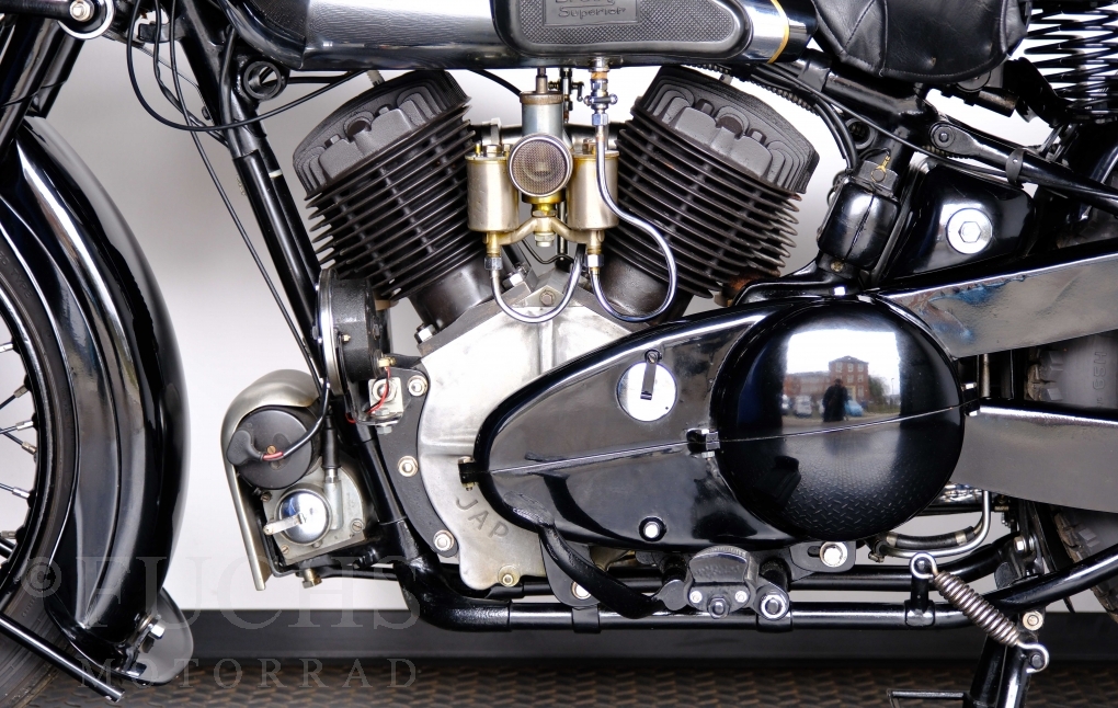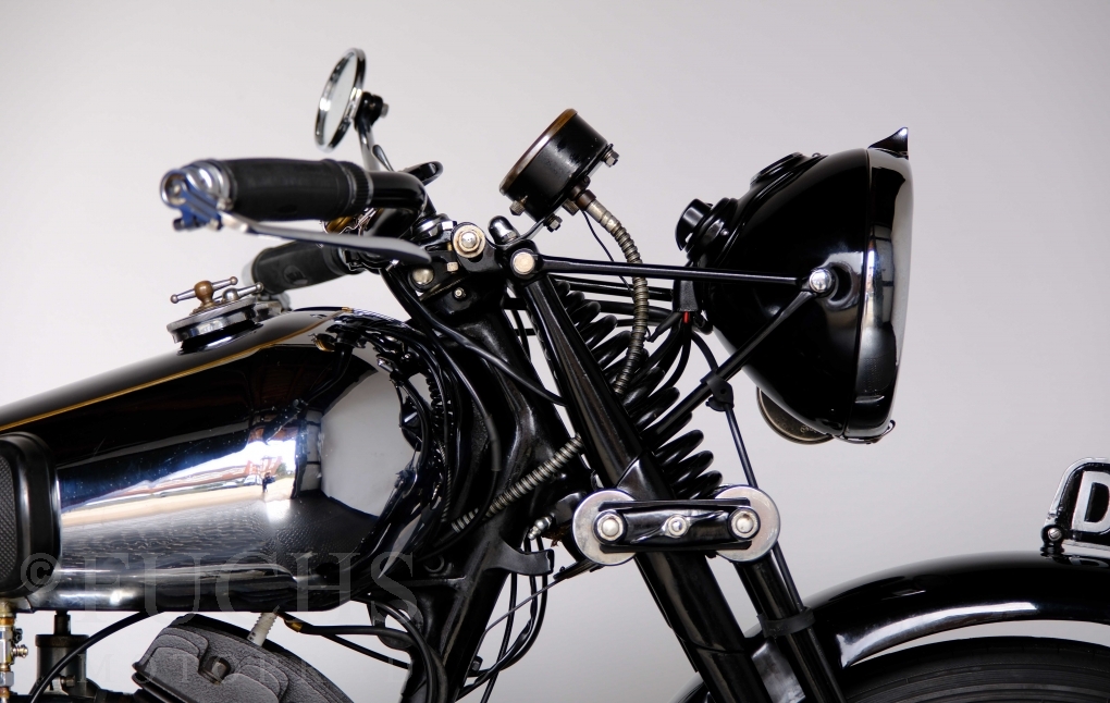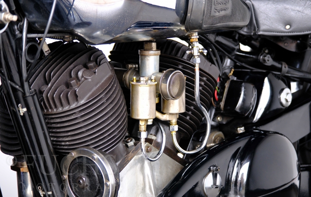 Im Jahr 1938 hat Brough Superior die Entwicklung des plunger frame abgeschlossen und unsere 11-50 ist eine der ersten Fahrzeuge, die mit diesem Federungssystem ausgeliefert wurden. Maxmimal 10 Brough 11-50 wurde jemals mit der plunger suspension gebaut. Die erstklassige Qualität dieser Brough wird durch eine vollständige Restaurierung von Fahrwerk und Motor ergänzt. Ein Blick in die works record card bestätigt, dass wir von matching numbers sprechen können. Das erstklassige Sammlerstück wurden in den vergangenen Jahren auf verschiedenen Veranstaltung bewundert und prämiert. Die Brough Superior wird von uns fahrfertig geliefert. Deutsche Fahrzeugpapiere liegen vorl.