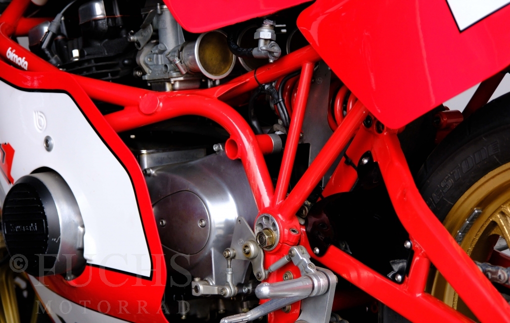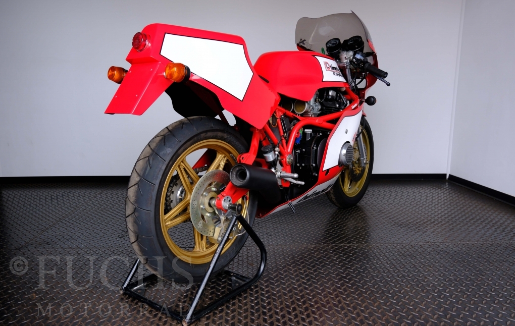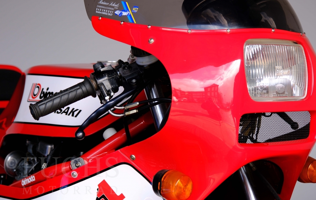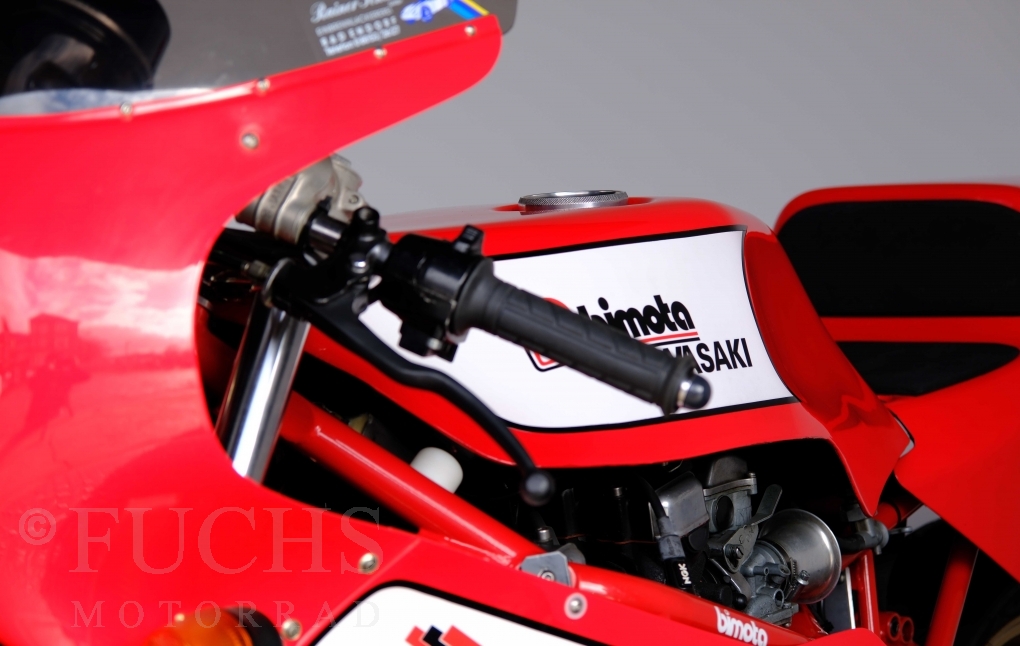 Die Bimota KB1 zählt schon seit Jahren zu den gesuchten Sammlerstücken, die Rimini produziert wurden. Zwischen 1978 und 1982 wurde die KB1 produziert. Nicht nur für die Fans der Kawasaki Z900 und Z1000 ist Bimota ein großer Wurf gelungen. Auch das Design der KB1 war damals und ist es noch heute schlicht und einfach attraktiv. Unsere KB1 können wir in einem sehr schönen originalen Zustand präsentieren. Die Maschine ist im April mit einem aktuellen Service versehen worden.
