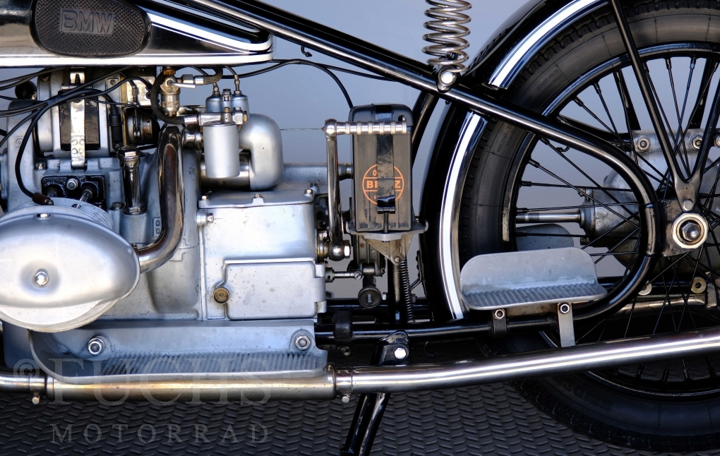Diese R 63 haben wir aus einem Museum erhalten. Die BMW stammt aus dem Jahr 1929. Herzstück der R 63 ist der M60SI-Motor. Auch diese Vorkriegs-BMW verfügte bereits über eine Druckumlaufschmierung. Die Konkurrenz setzte zu dieser Zeit meist noch auf eine Verlustschmierung, die vom Fahrer geregelt werden musste, da das Öl entweder ausgeschieden oder verbrannt wurde.